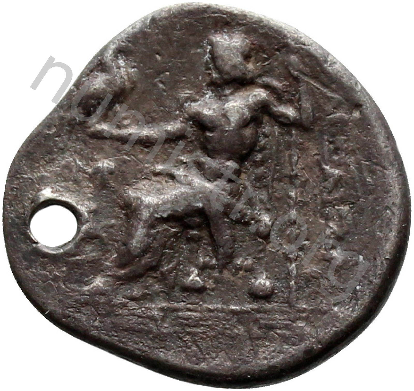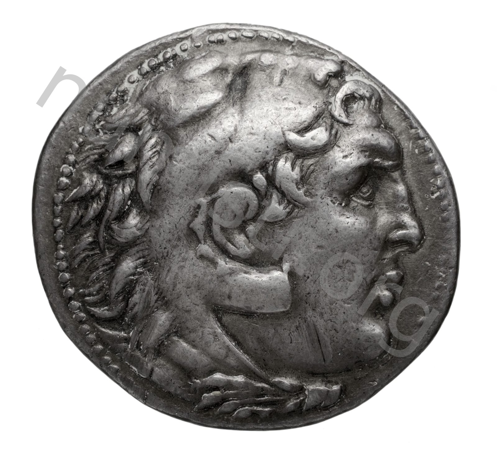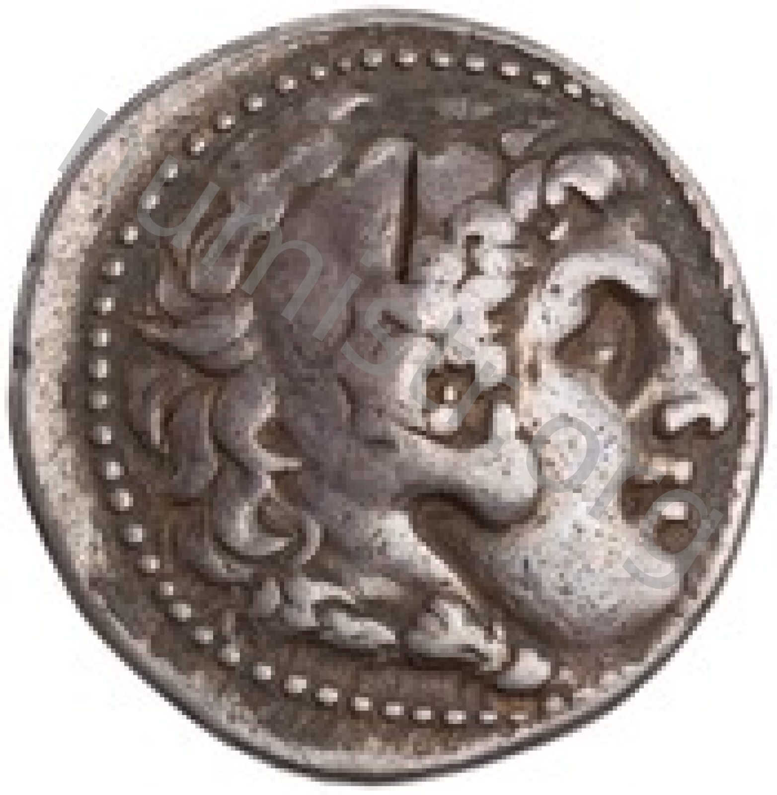 Head of beardless Heracles right wearing lion skin headdress -[en]