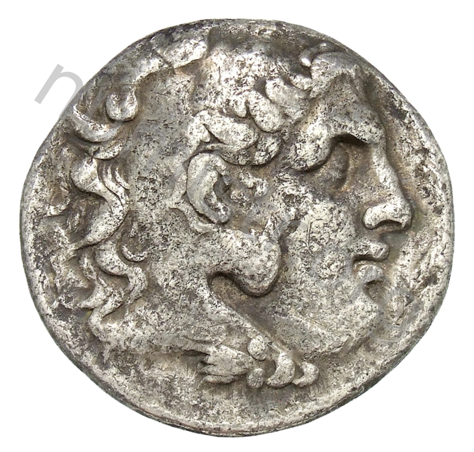 Head of beardless Heracles right wearing lion skin headdress -[en]