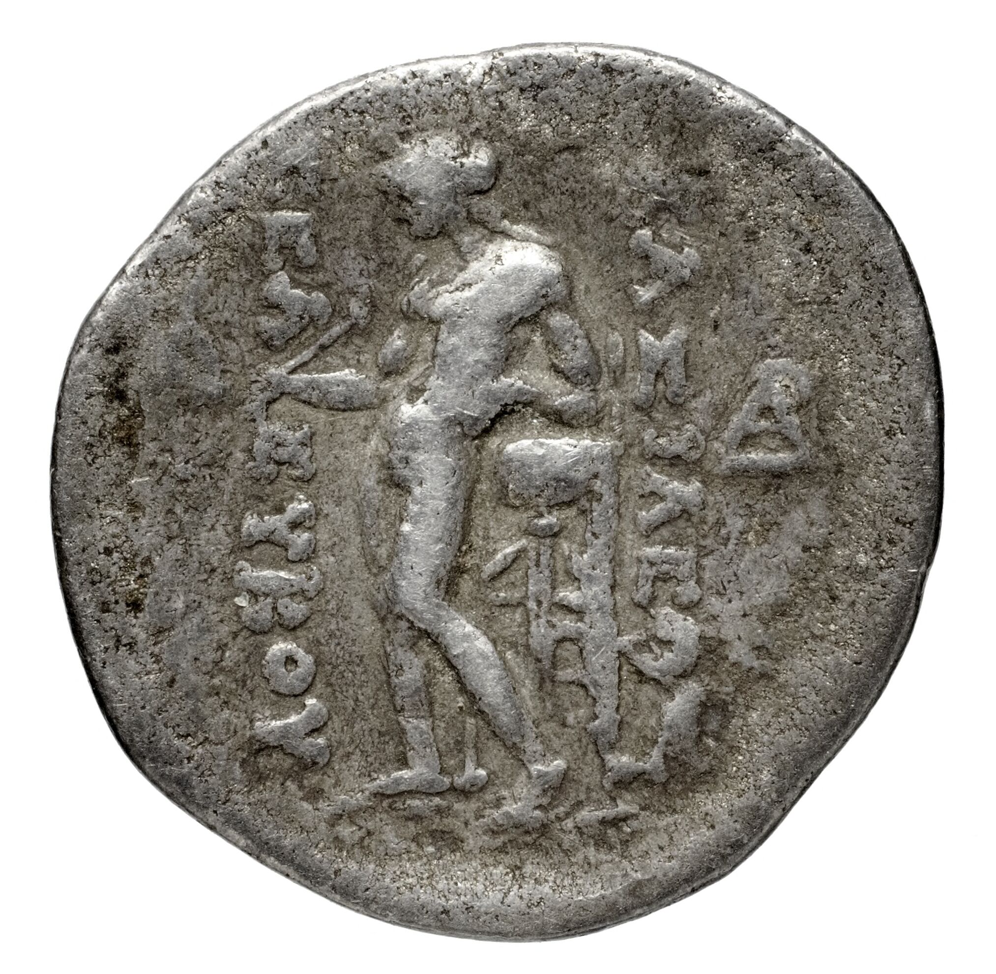 Apollo standing left testing arrow and resting elbow on tall tripod -[en]