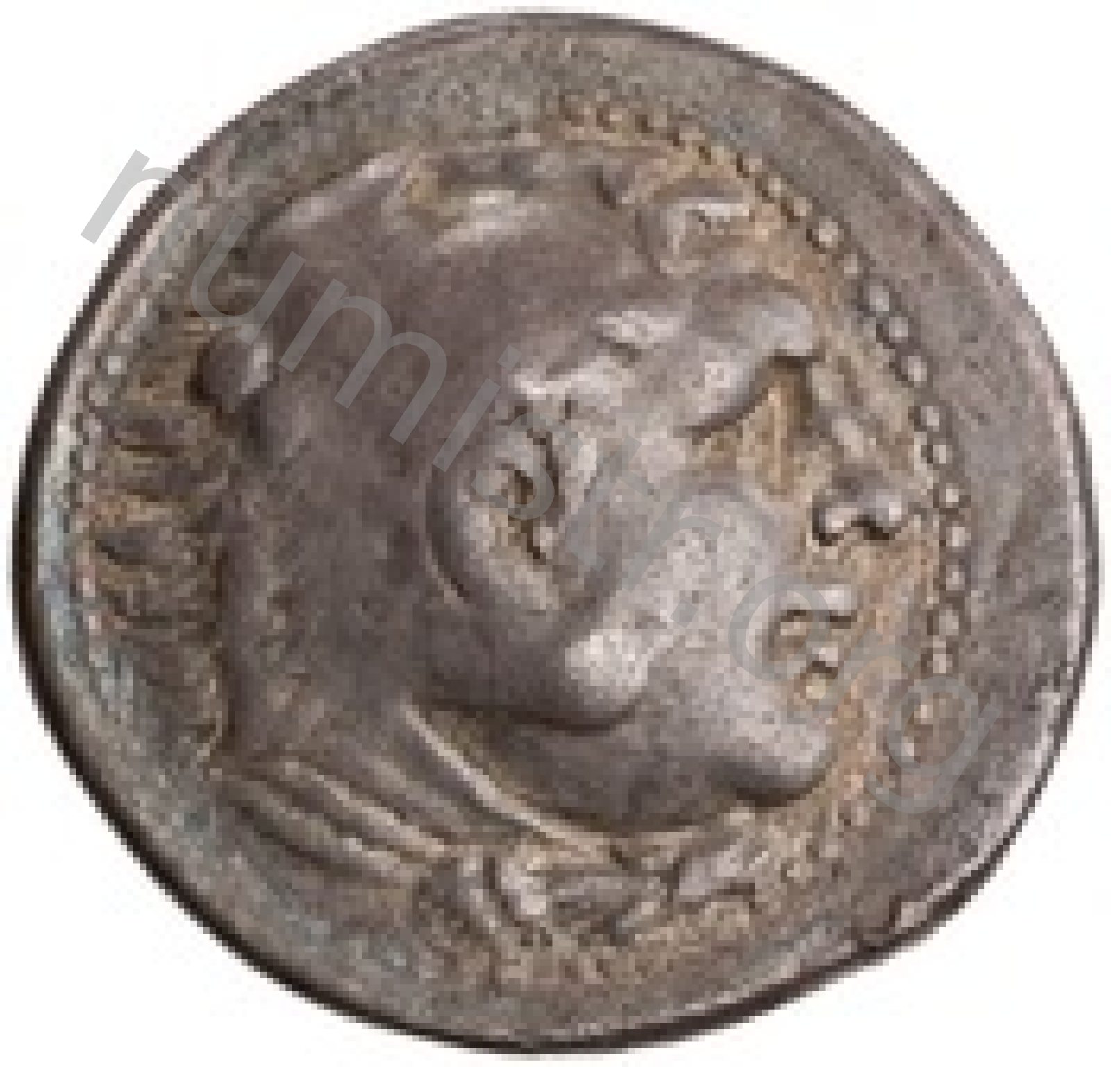 Head of beardless Heracles right wearing lion skin headdress -[en]