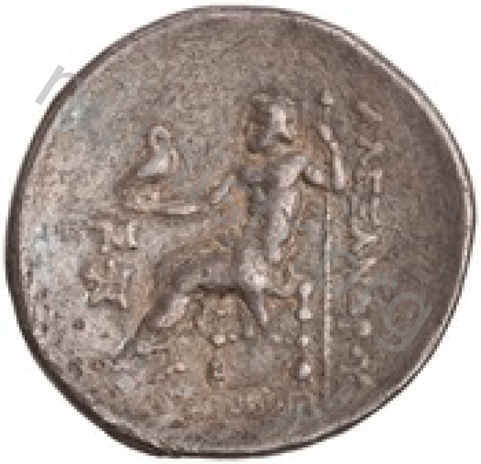 Zeus tabure-tahtta oturuyor sol elinde kartal sağ elinde asa var.