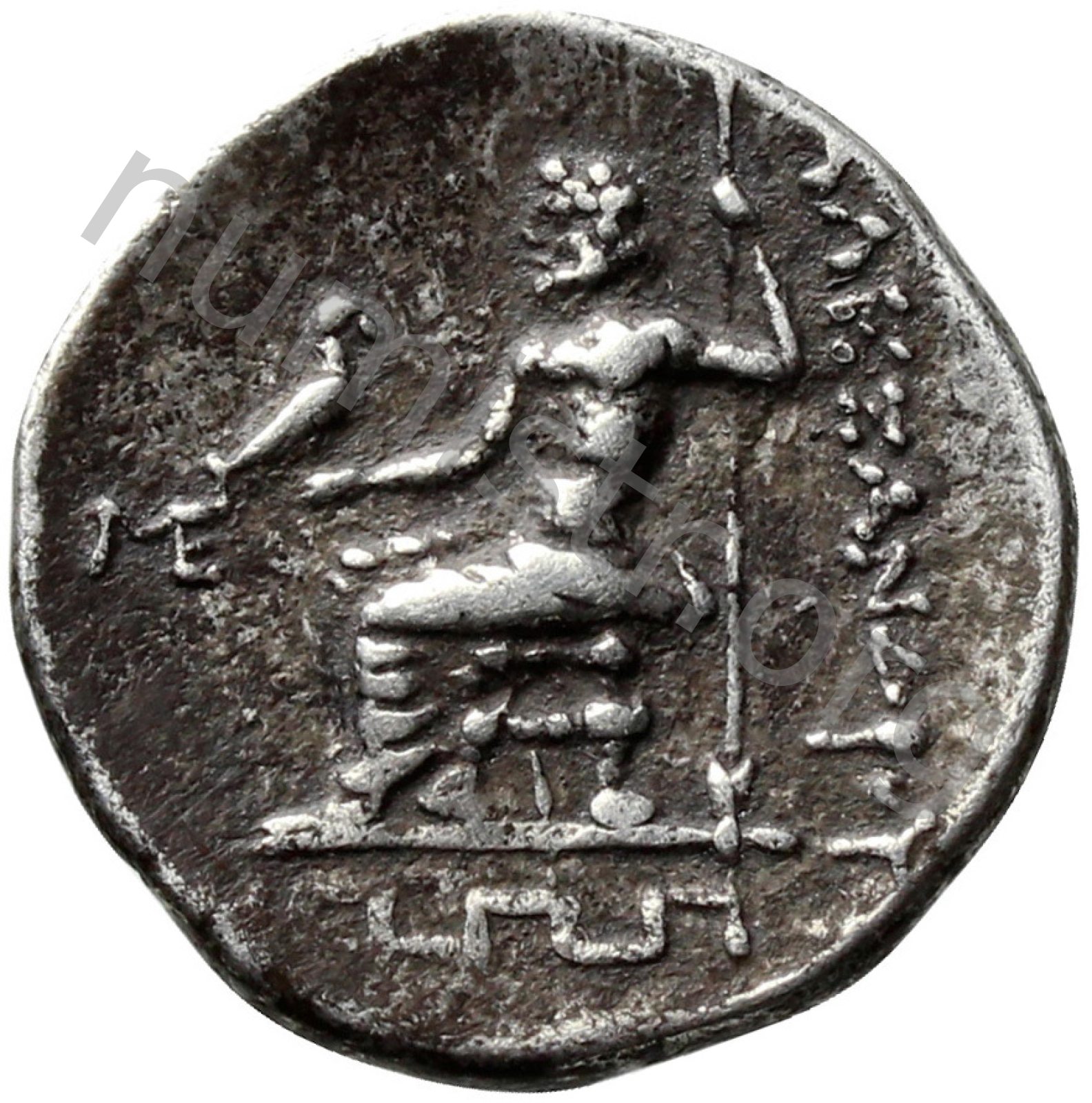 Zeus tabure-tahtta oturuyor sol elinde kartal sağ elinde asa var.