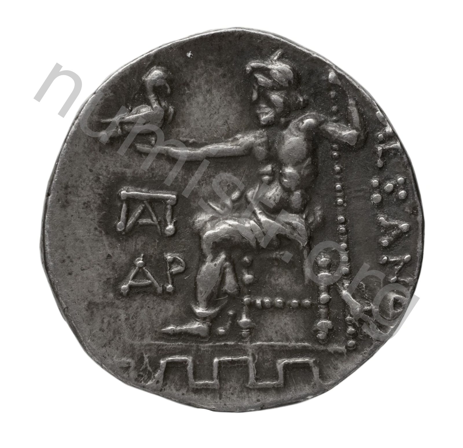 Zeus tabure-tahtta oturuyor sol elinde kartal sağ elinde asa var.