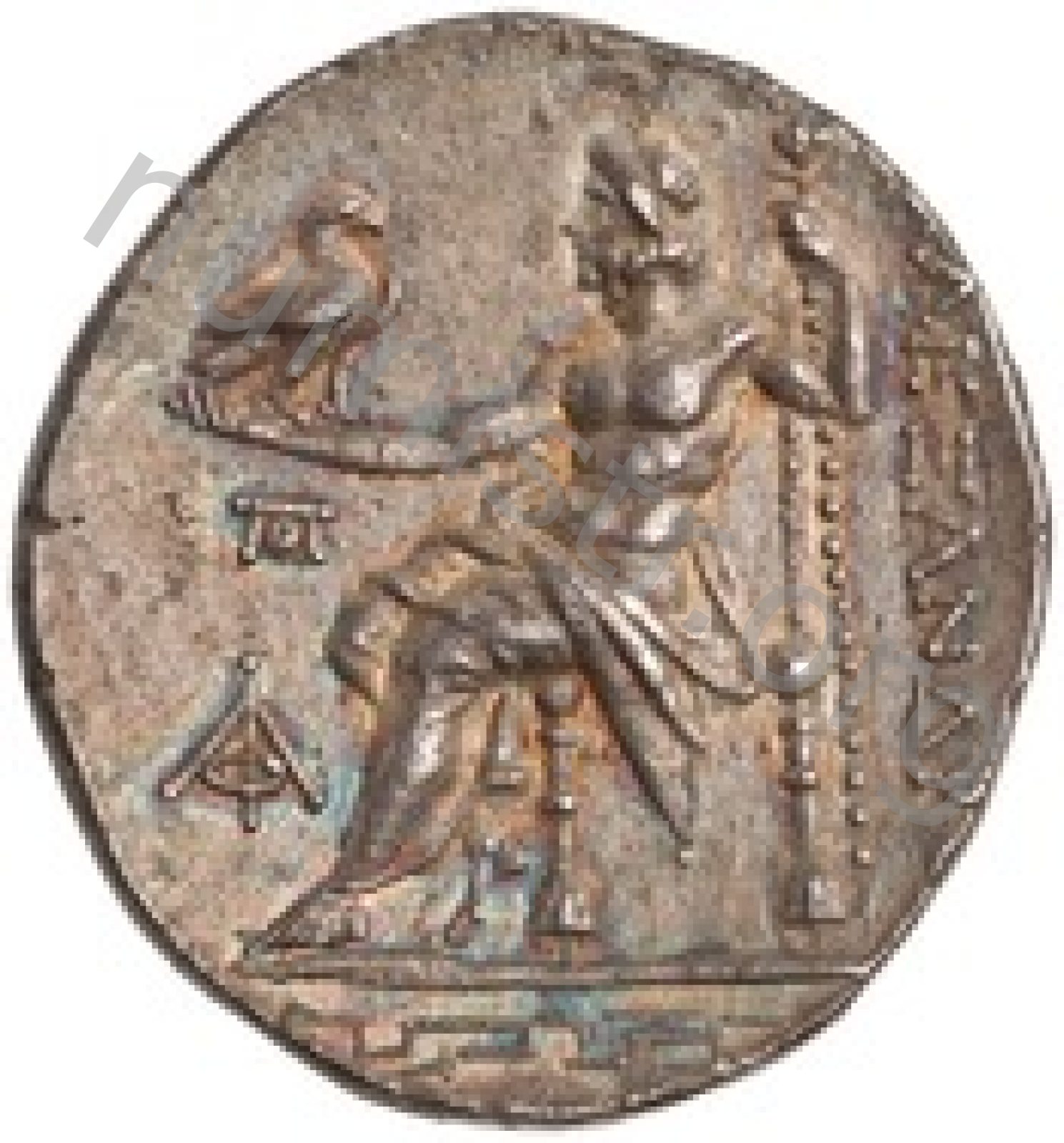 Zeus tabure-tahtta oturuyor sol elinde kartal sağ elinde asa var.