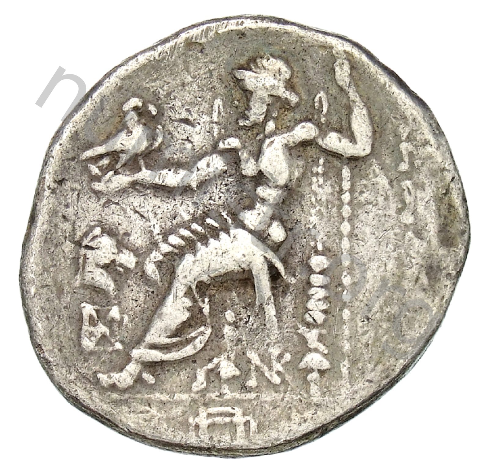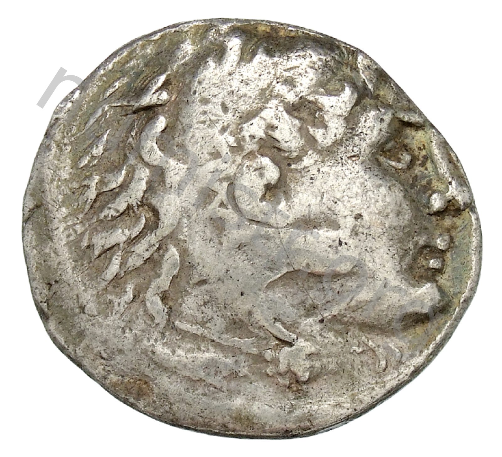 Head of beardless Heracles right wearing lion skin headdress -[en]