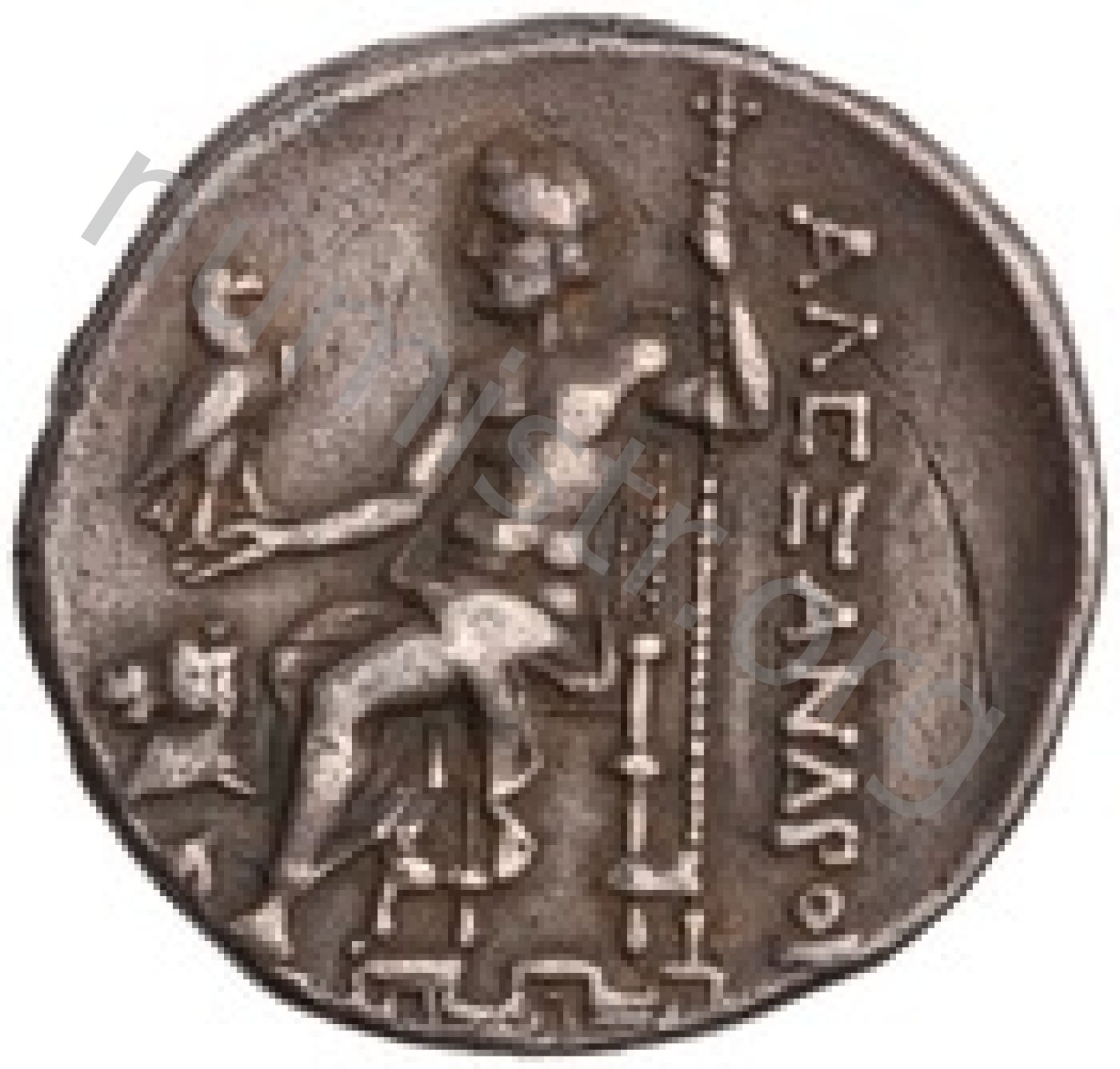 Zeus seated on stool-throne left eagle on outstretched right hand sceptre in left hand -[en]