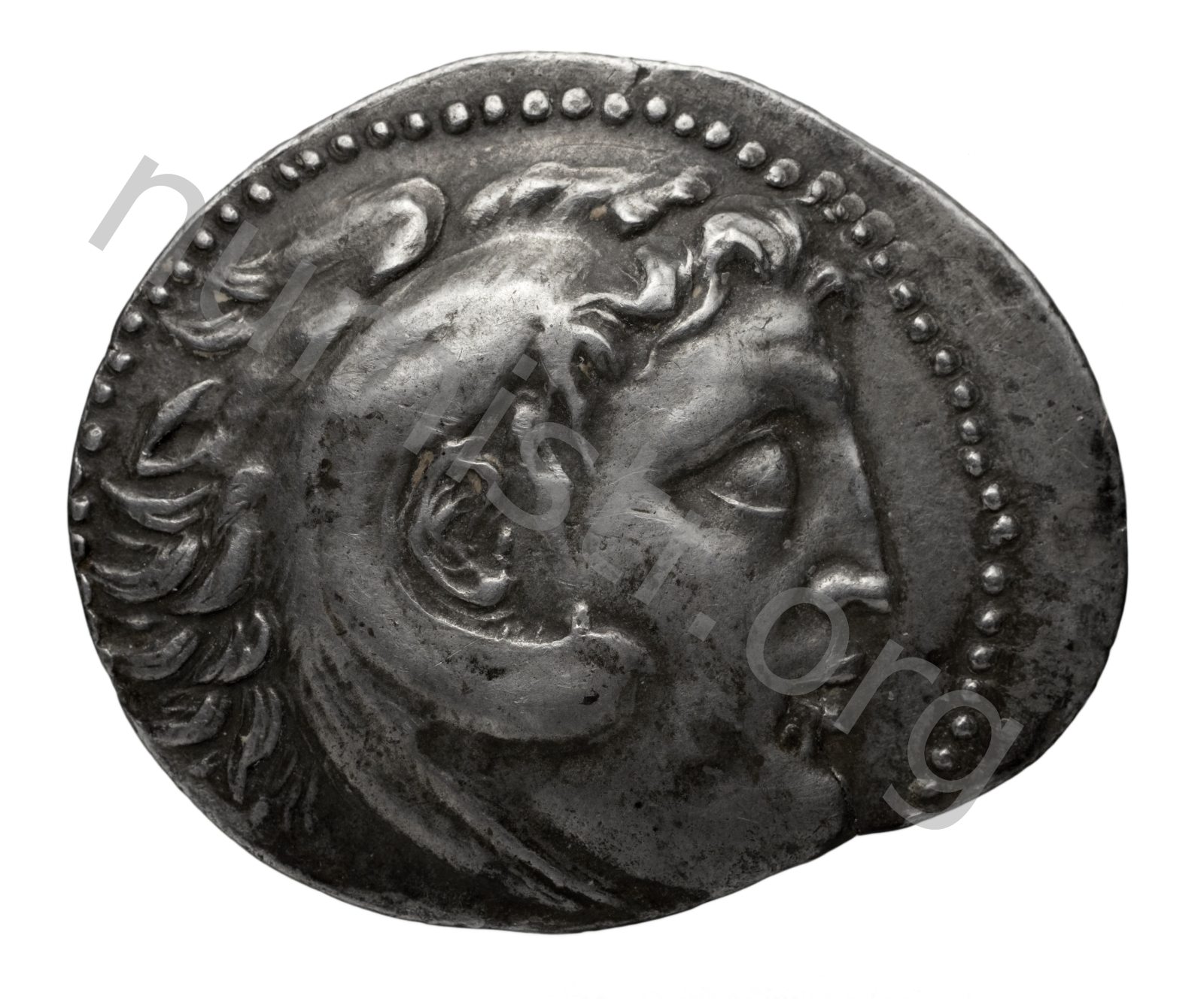 Head of beardless Heracles right wearing lion skin headdress -[en]