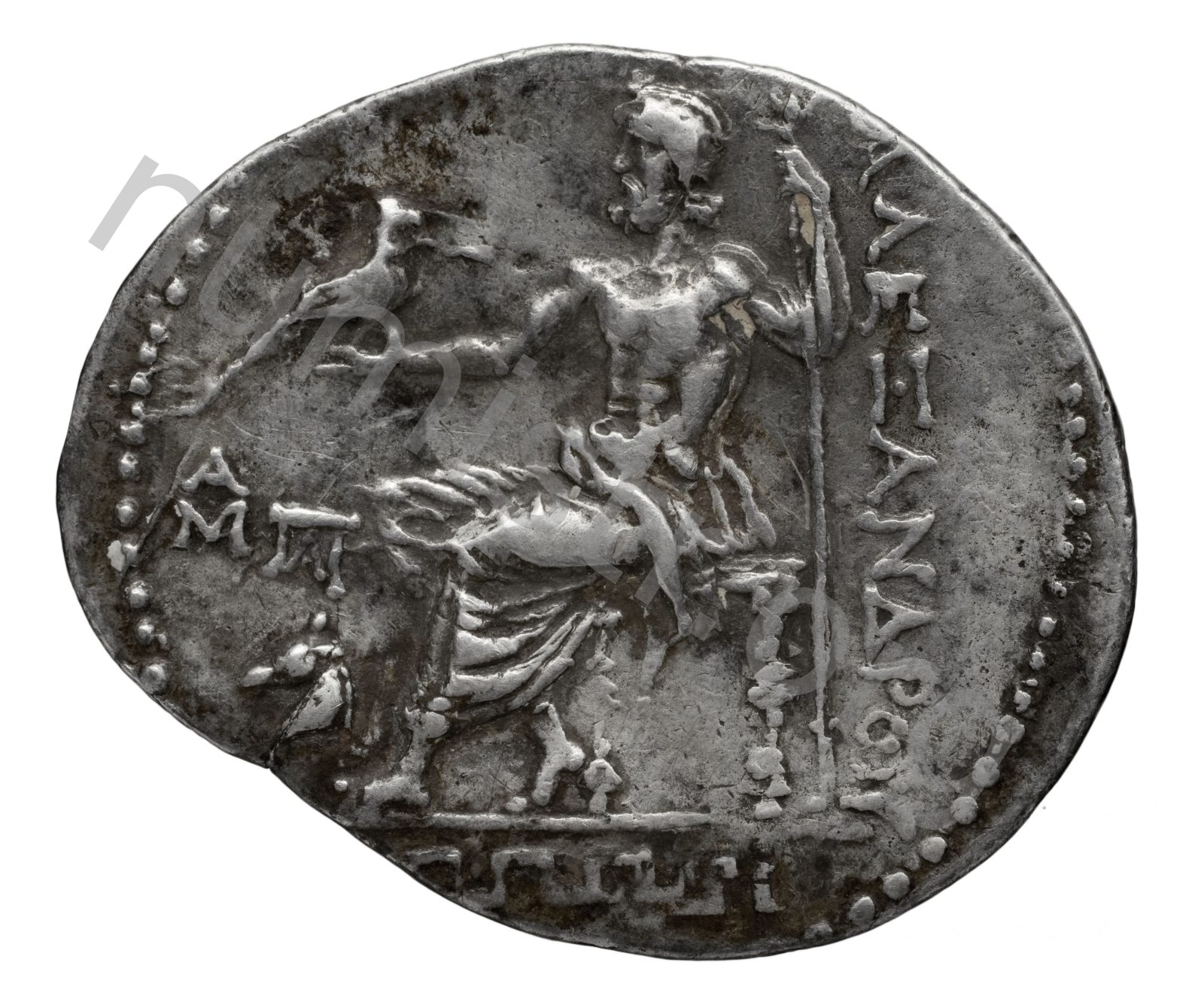 Zeus tabure-tahtta oturuyor sol elinde kartal sağ elinde asa var.