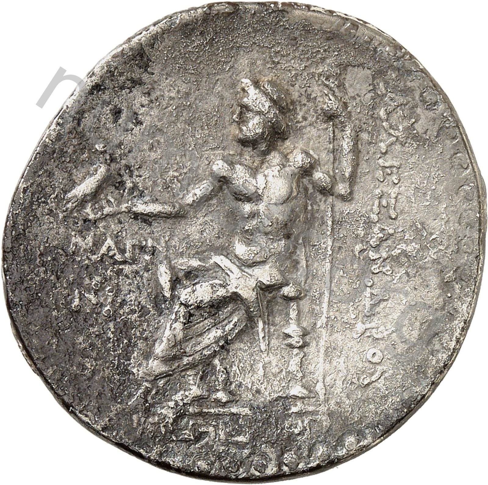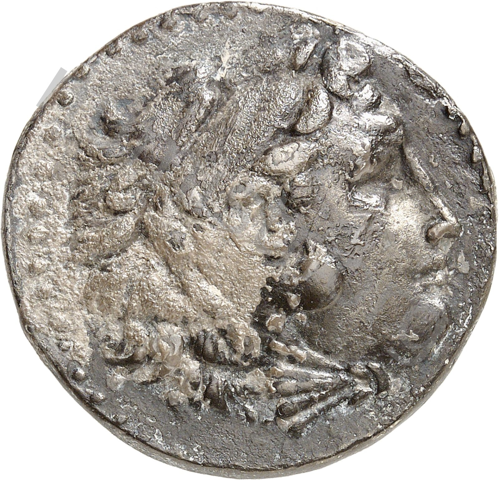 Head of beardless Heracles right wearing lion skin headdress -[en]