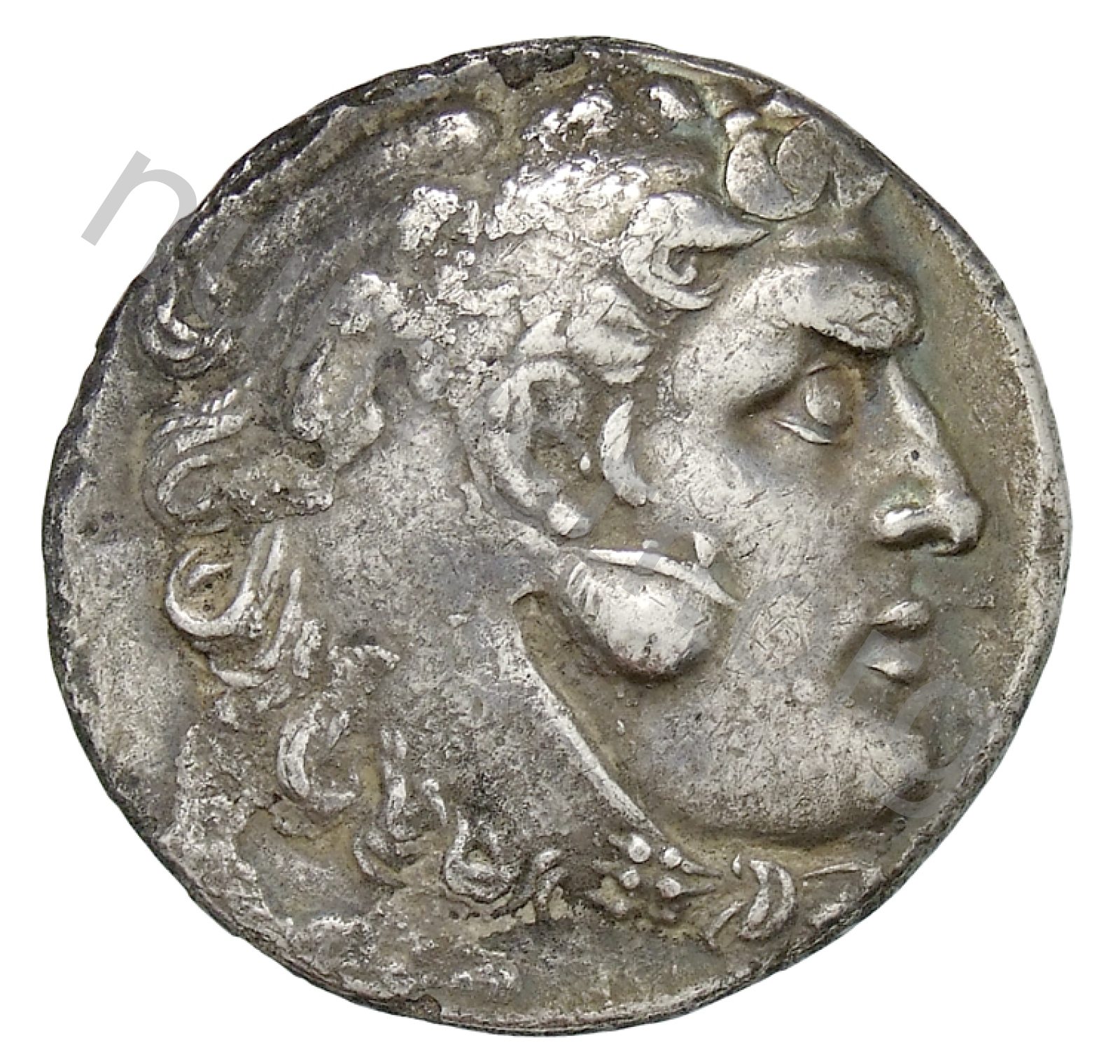 Head of beardless Heracles right wearing lion skin headdress -[en]