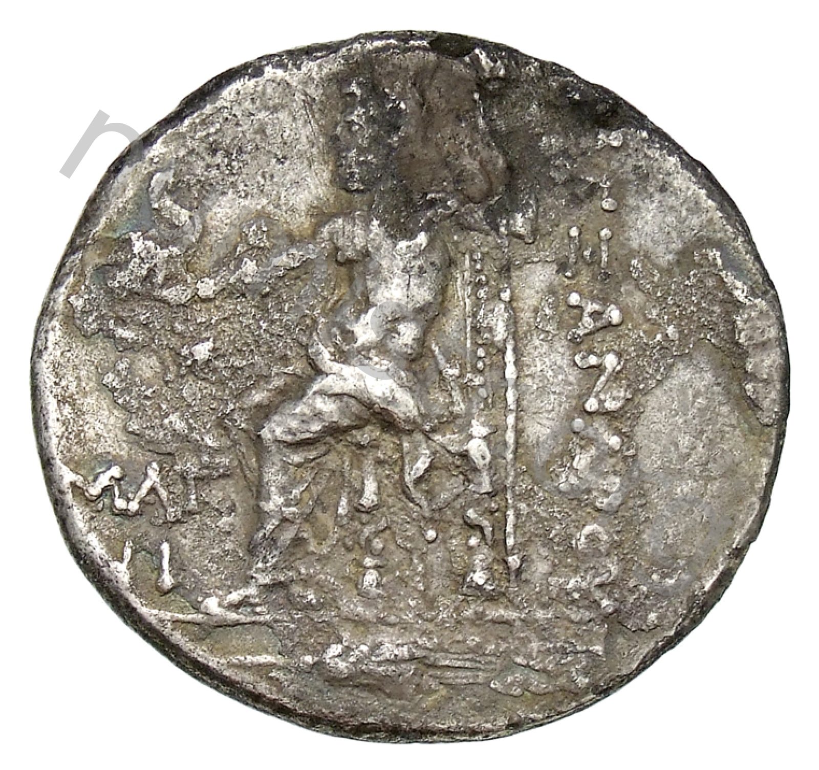 Zeus tabure-tahtta oturuyor sol elinde kartal sağ elinde asa var.