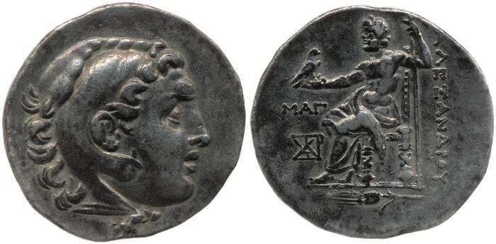 Head of beardless Heracles right wearing lion skin headdress -[en]
