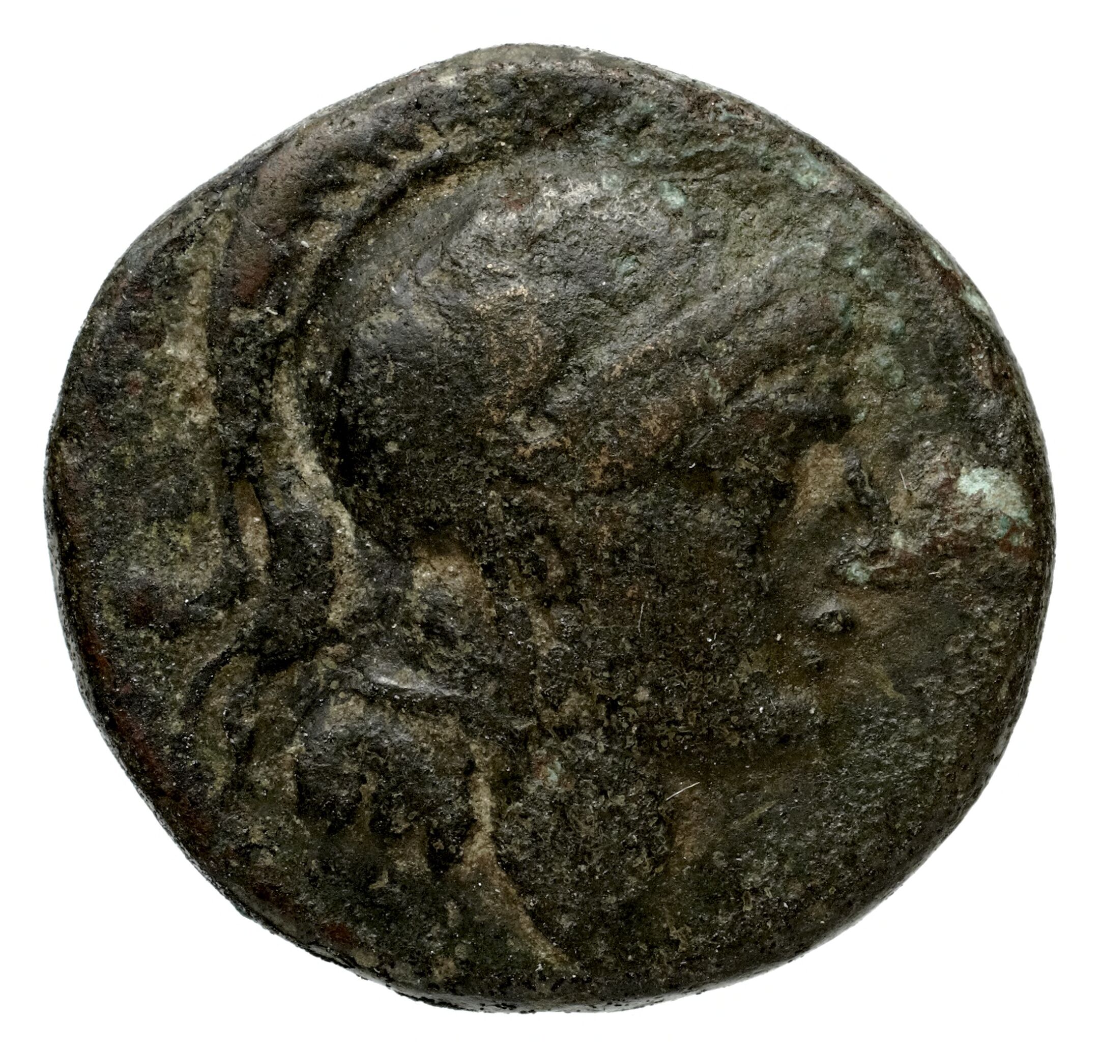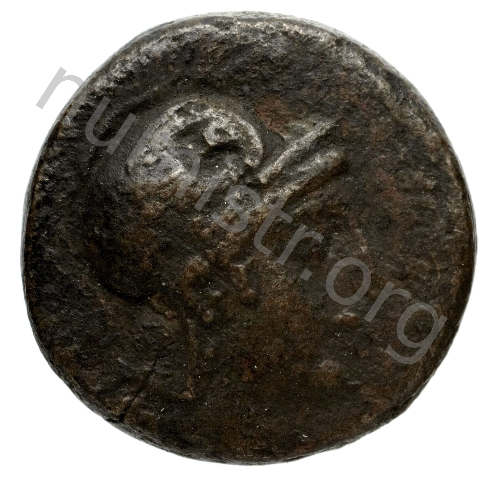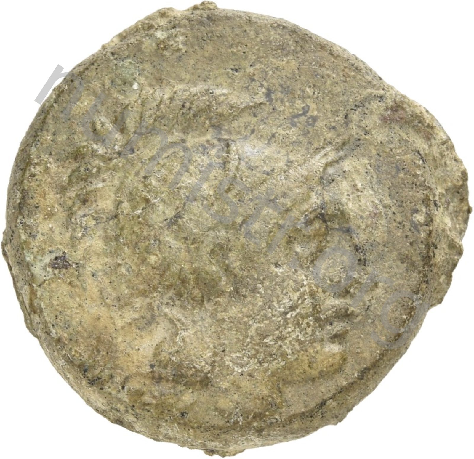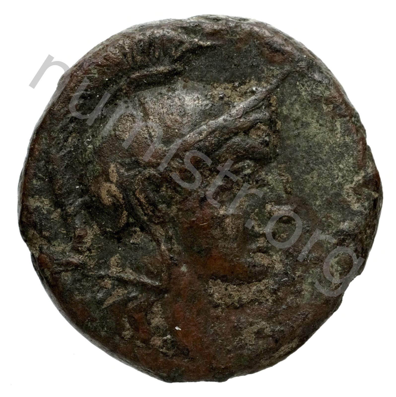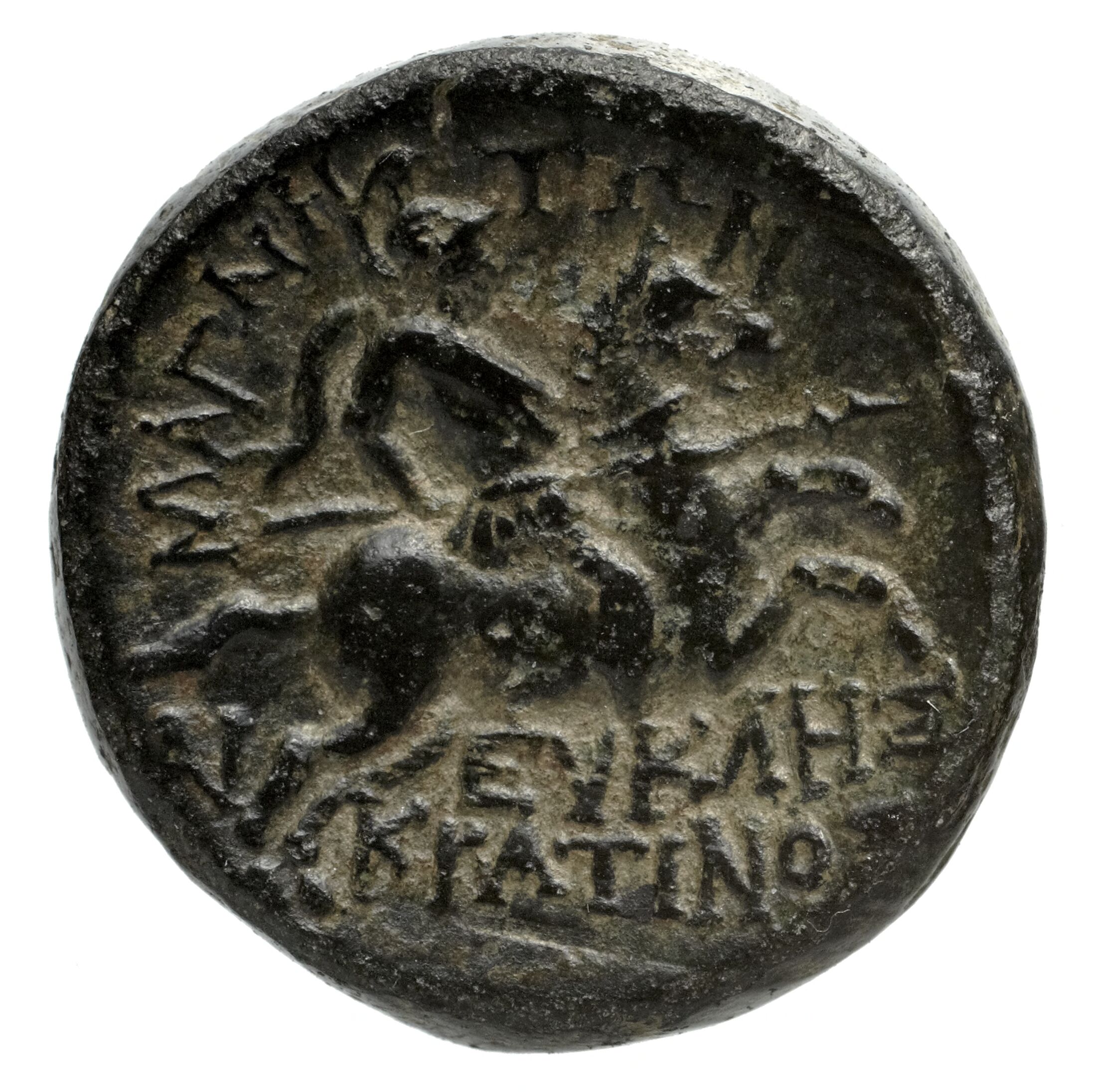 Horseman galloping wearing a helmet chlamys and breastplate holding a spear -[en]