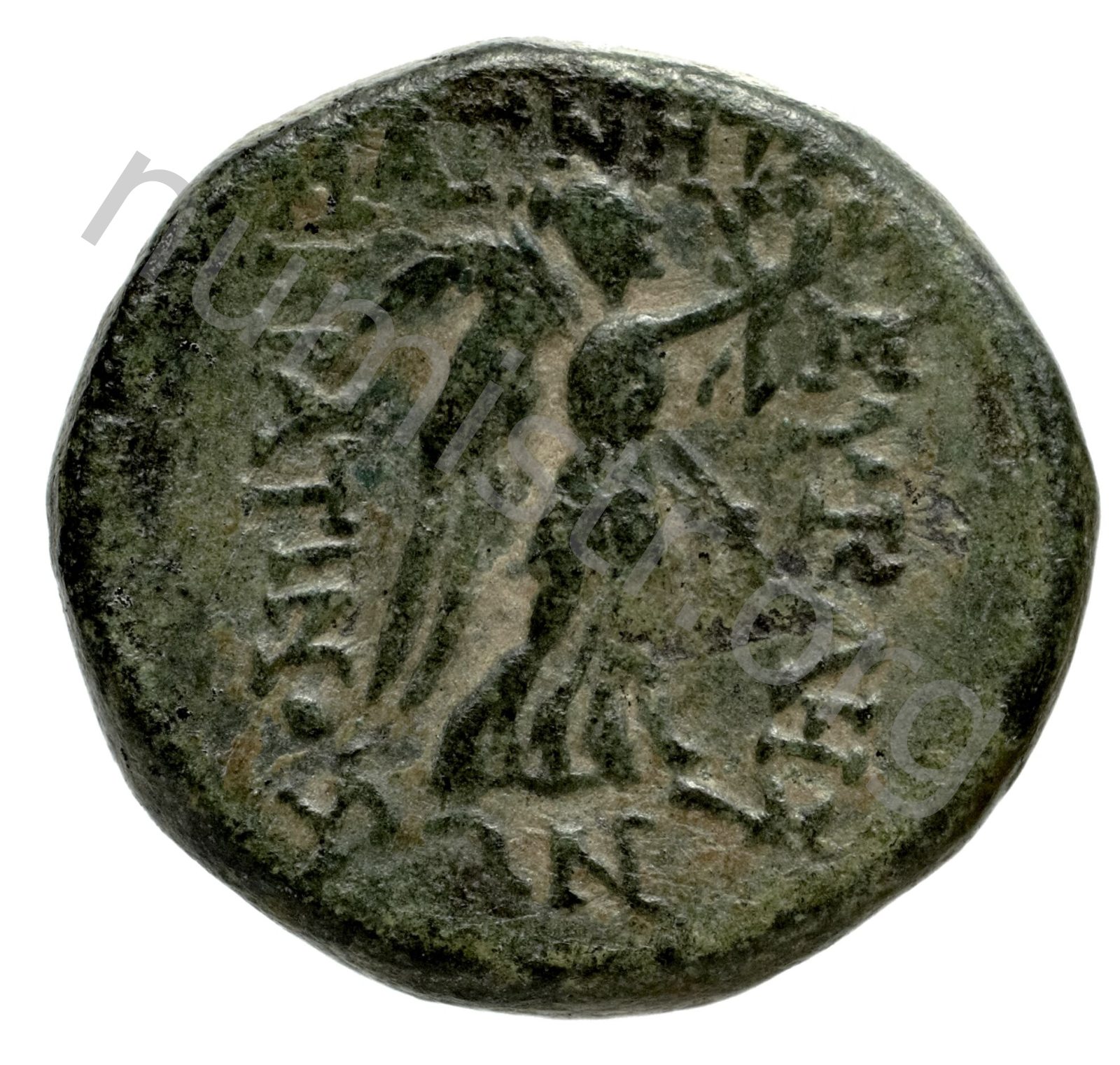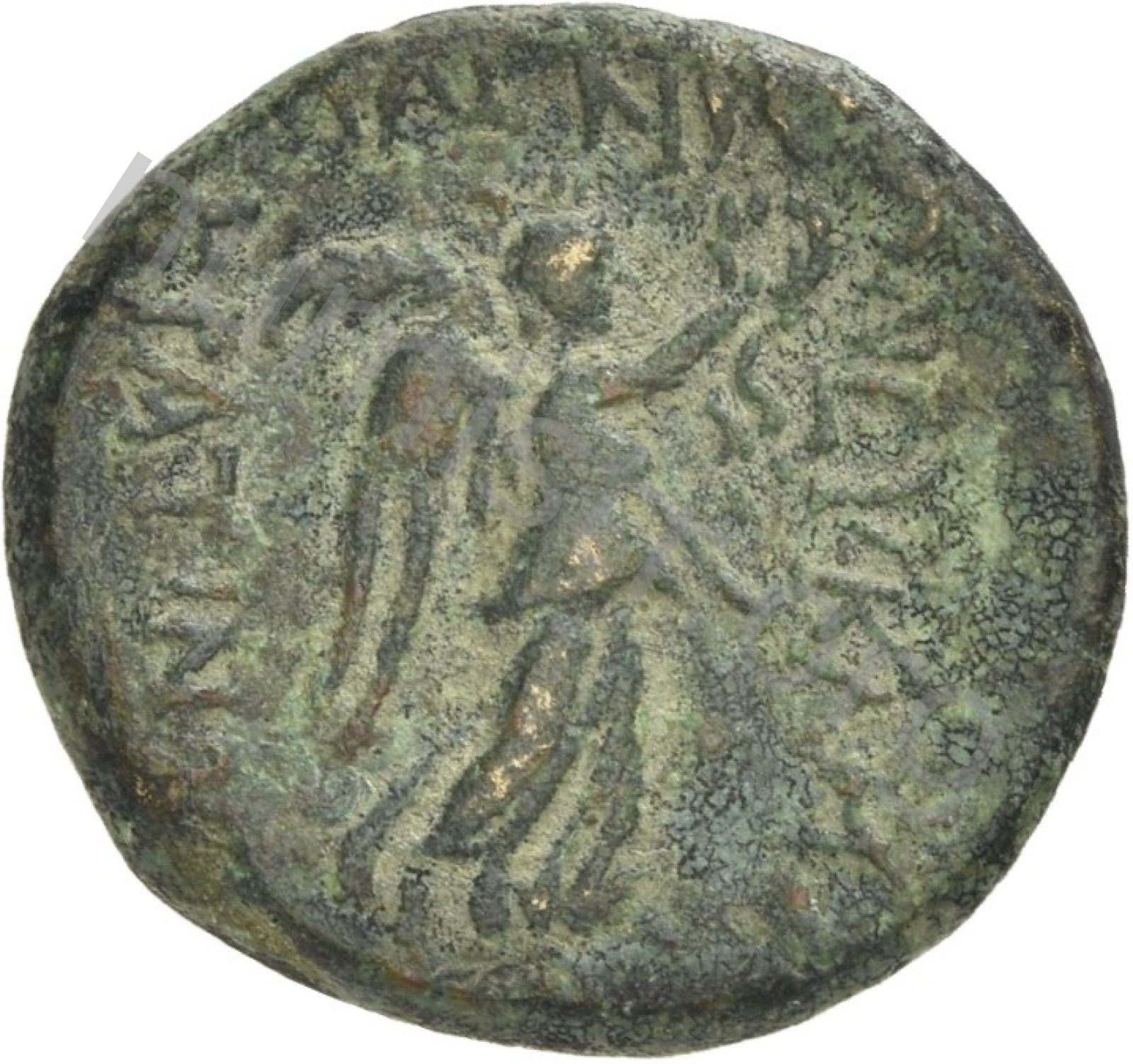 Nike advancing holding a ribboned wreath and a palm over her shoulder -[en]