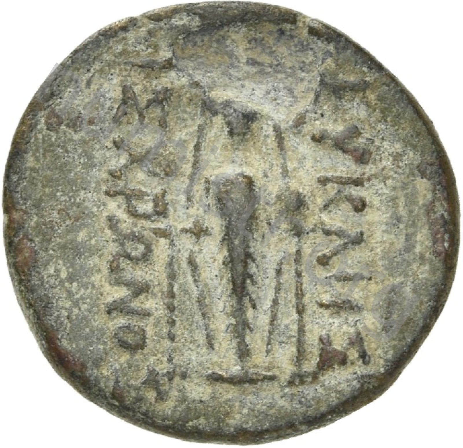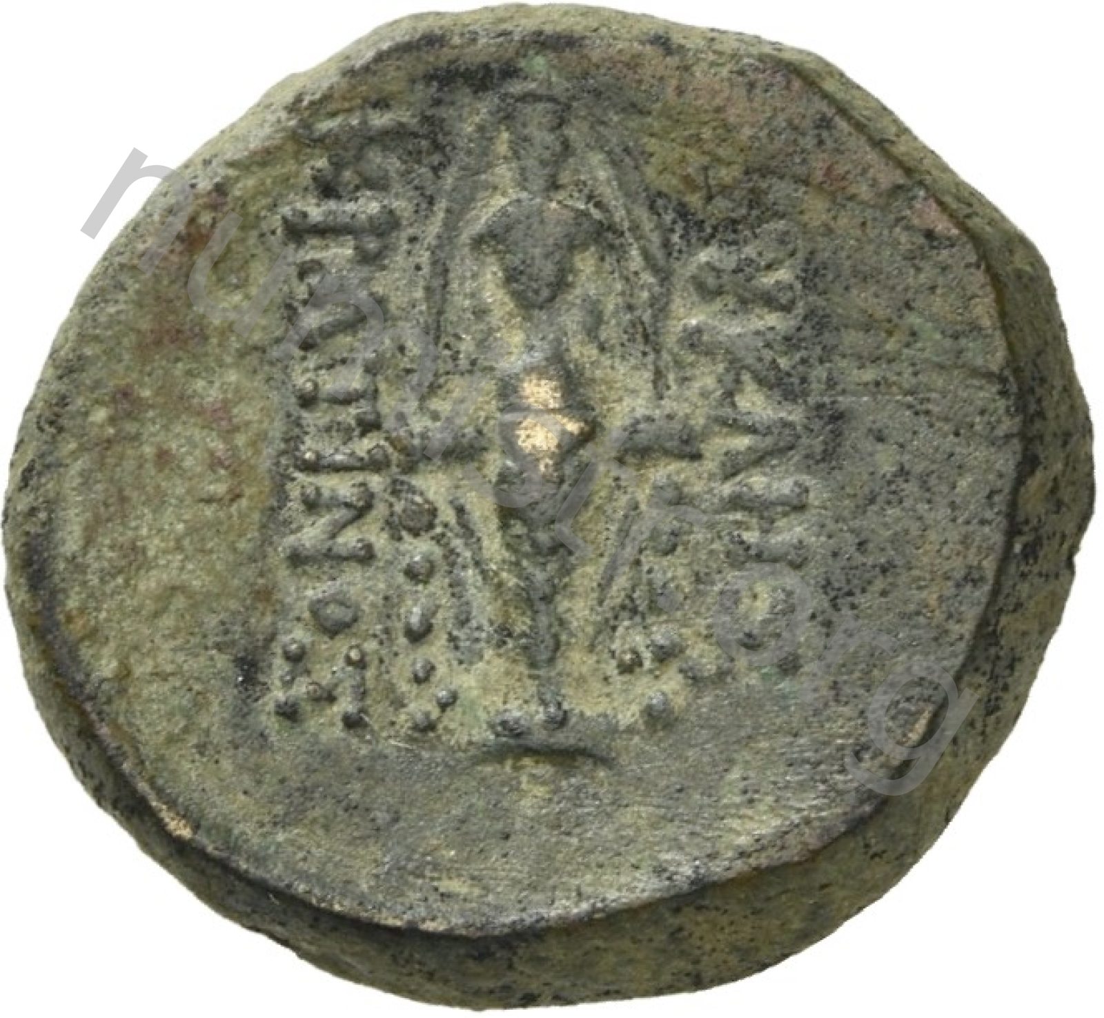 Cult-statue of Artemis Leukophryene facing wearing a long veil that she holds in her hands -[en]
