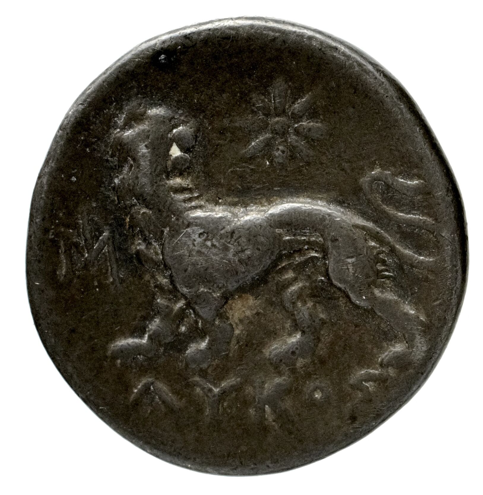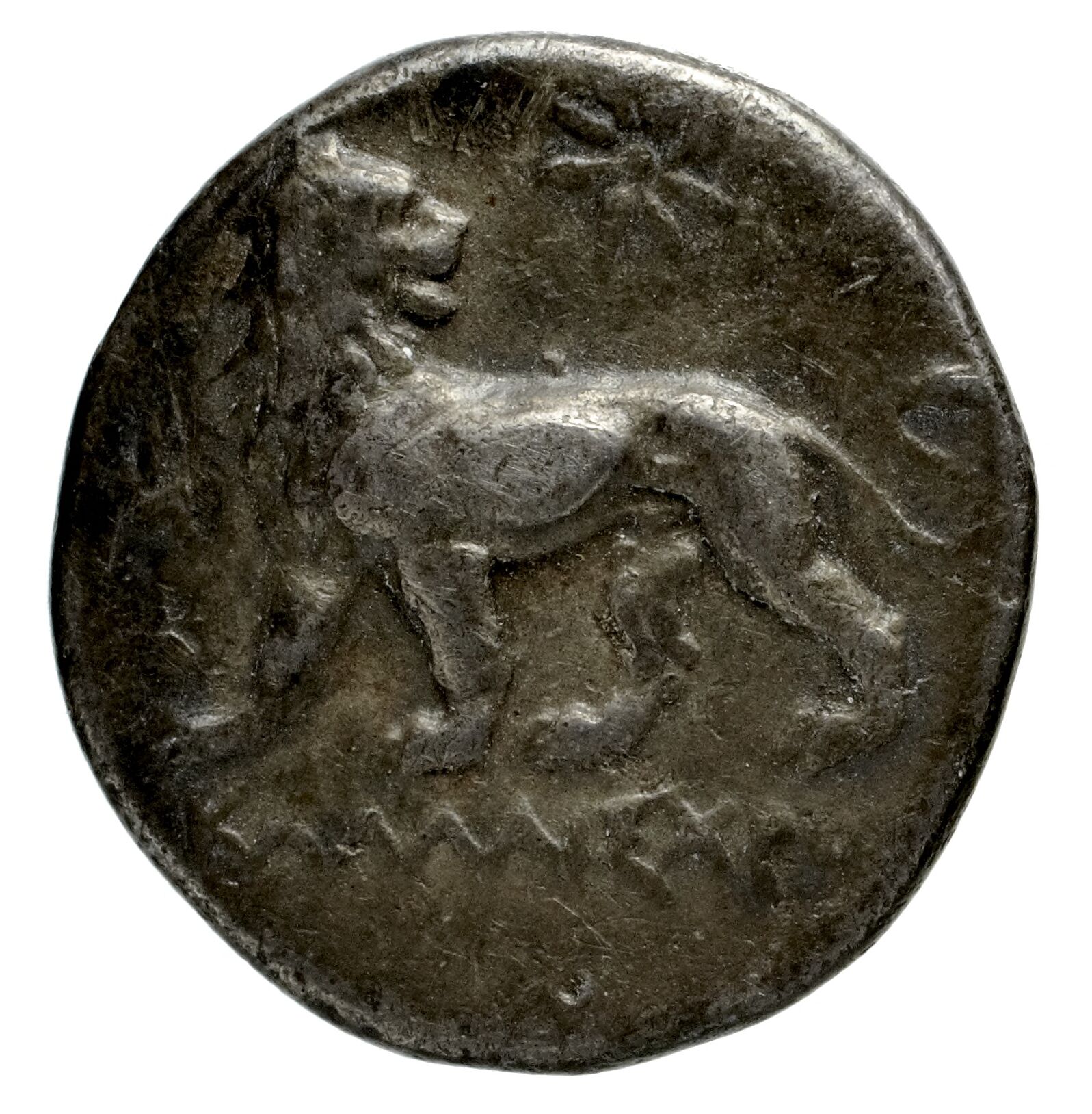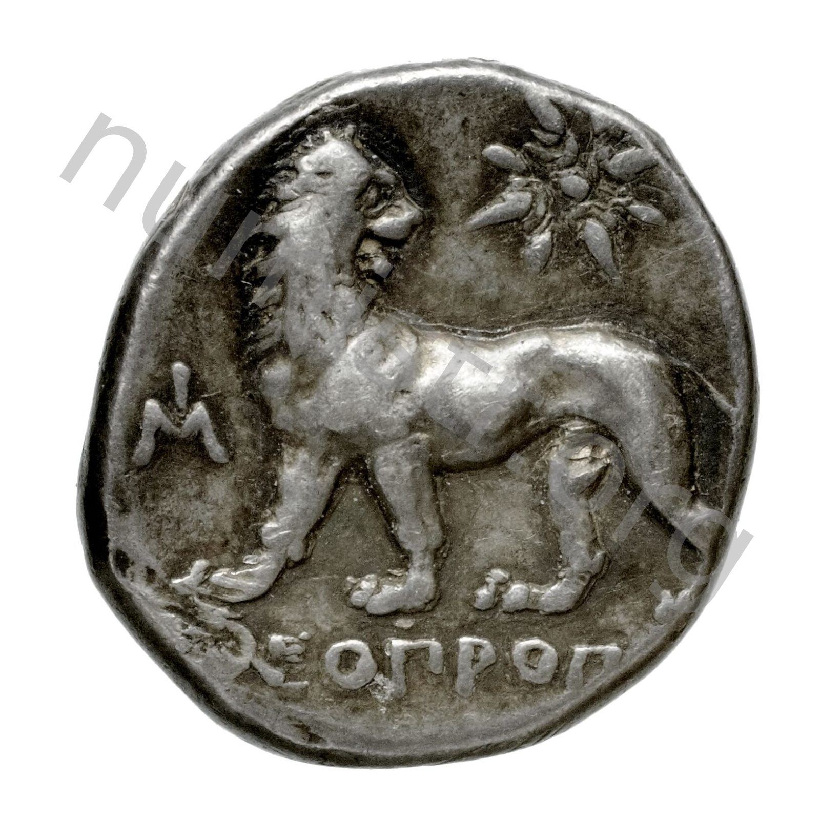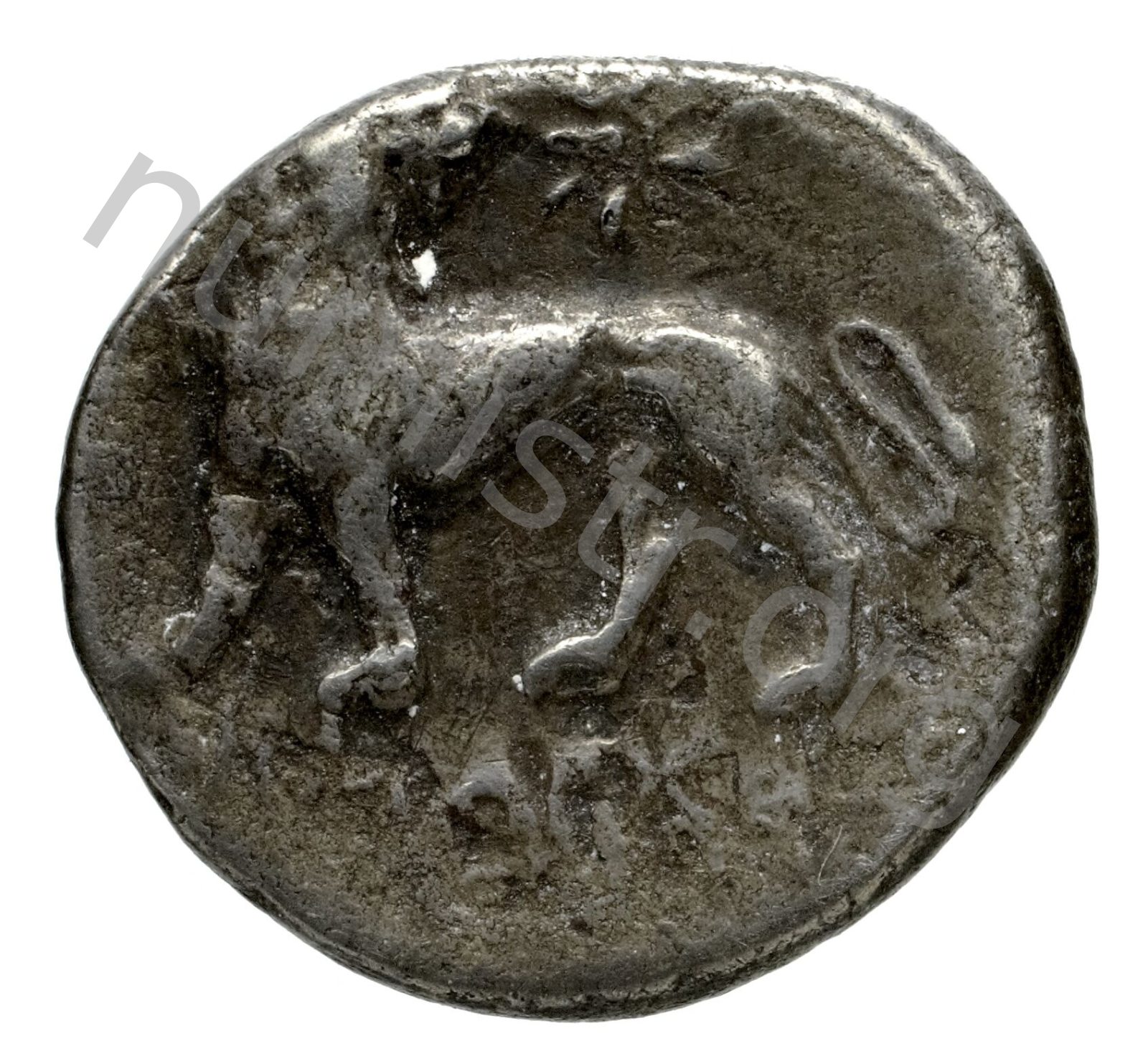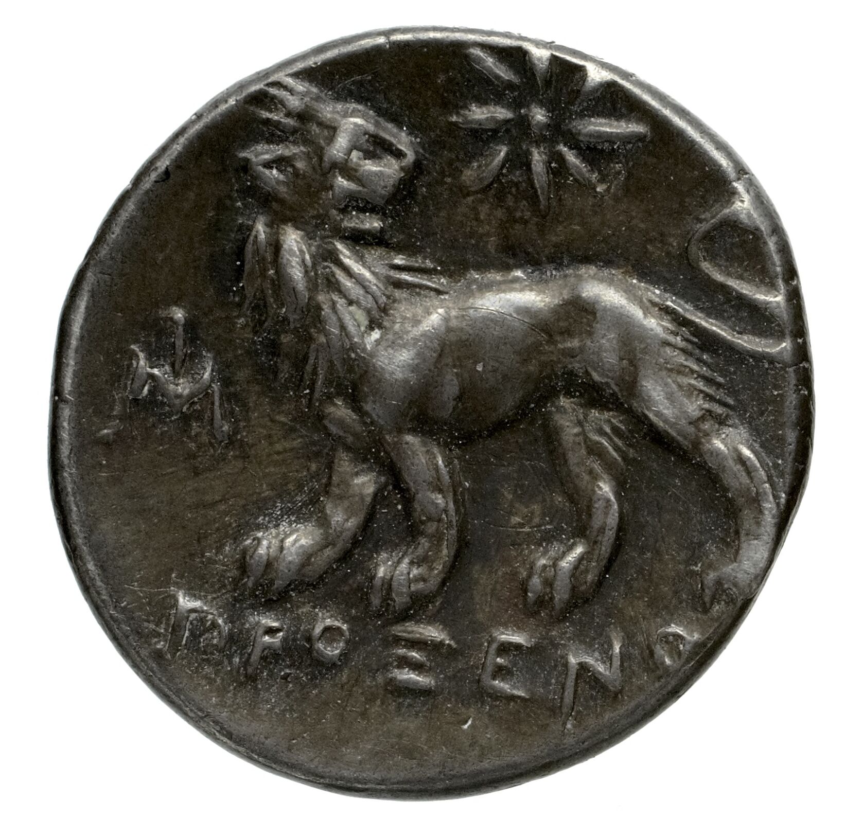 Lion turning his head; in the upper field star -[en]