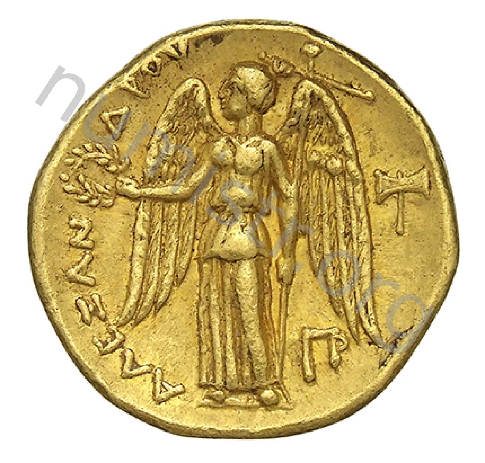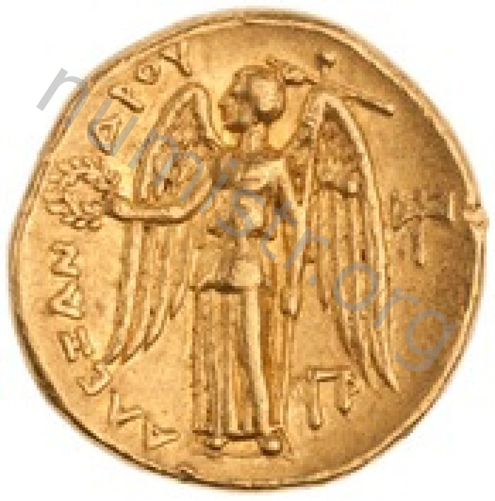 Nike standing left holding wreath in right hand and stylis in her left hand -[en]