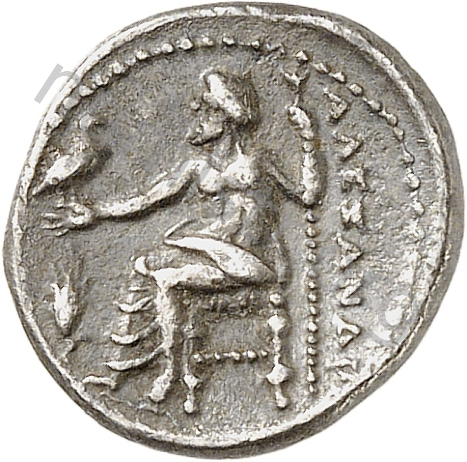 Zeus tabure-tahtta oturuyor sol elinde kartal sağ elinde asa var.