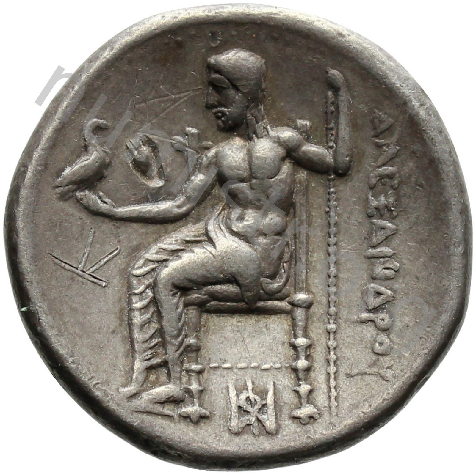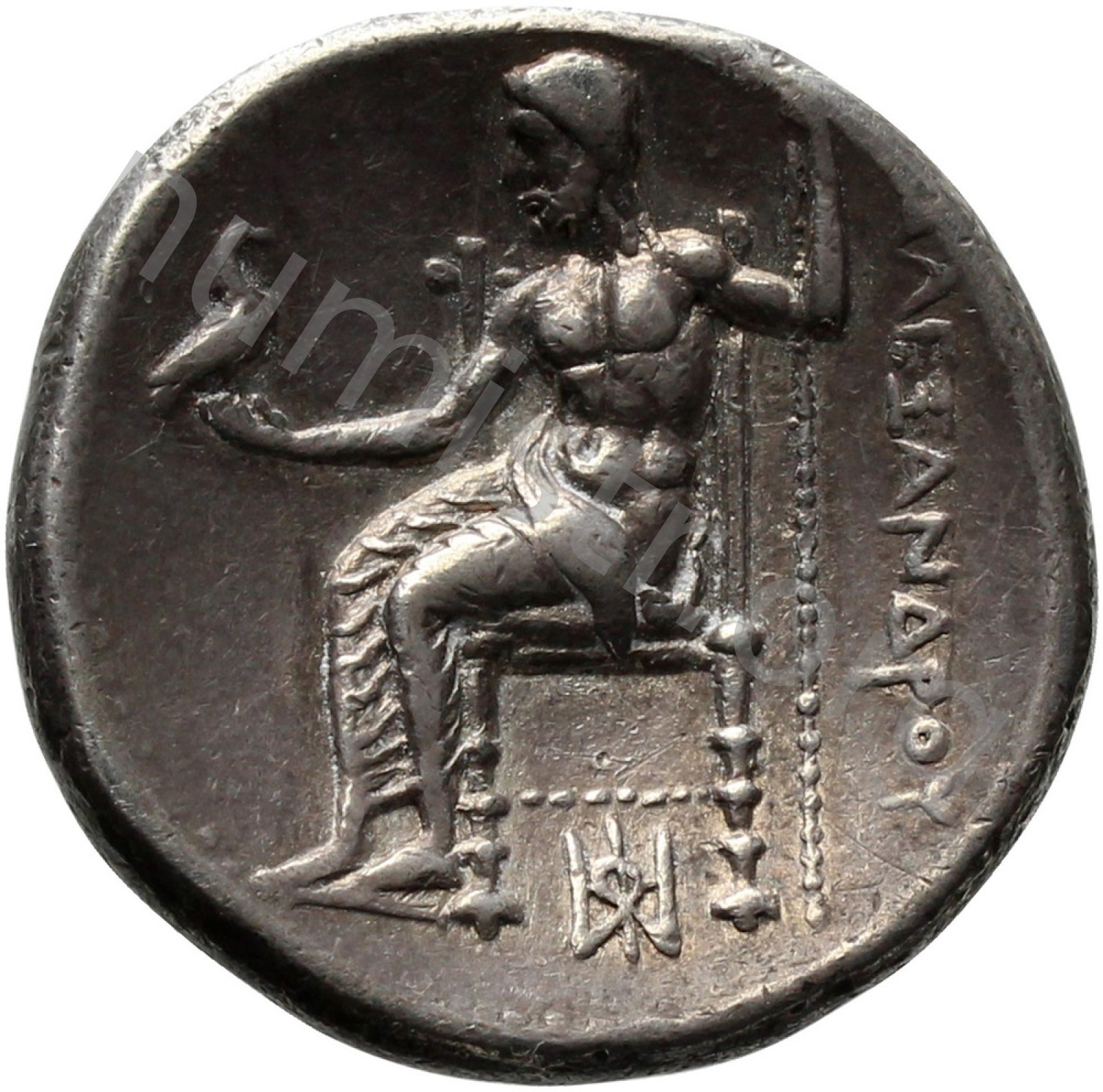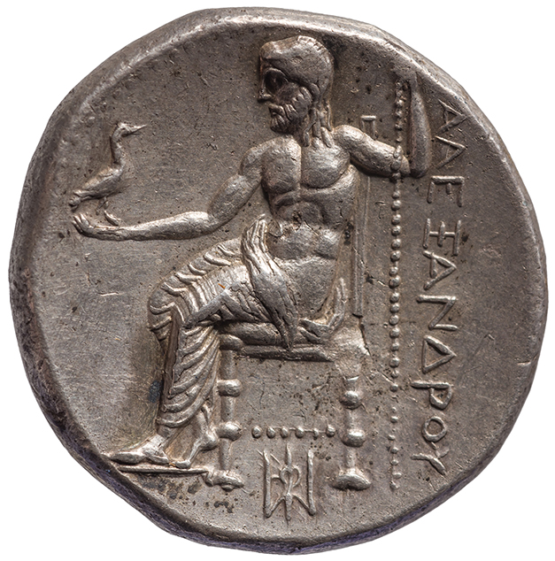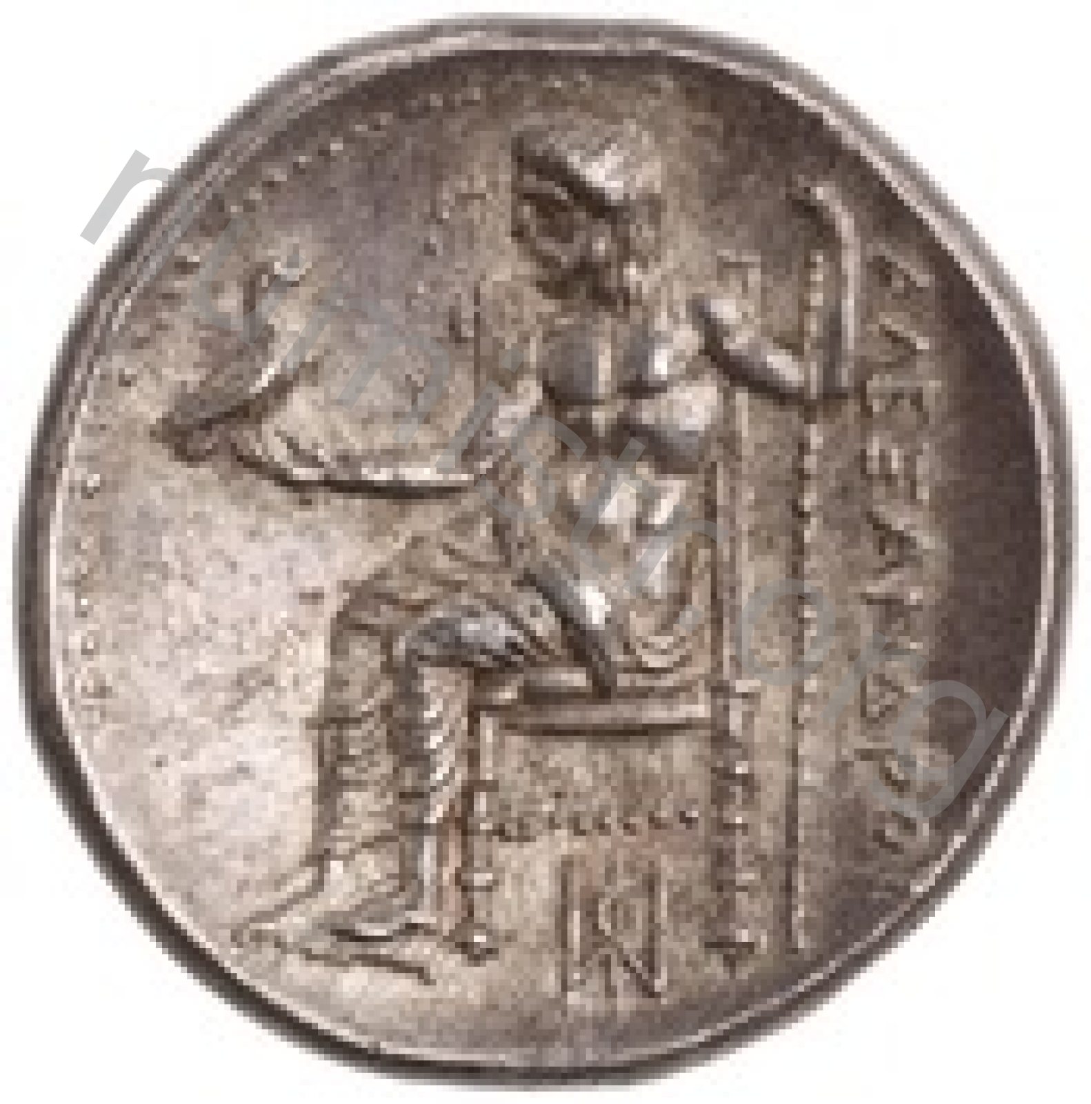 Zeus tabure-tahtta oturuyor sol elinde kartal sağ elinde asa var.