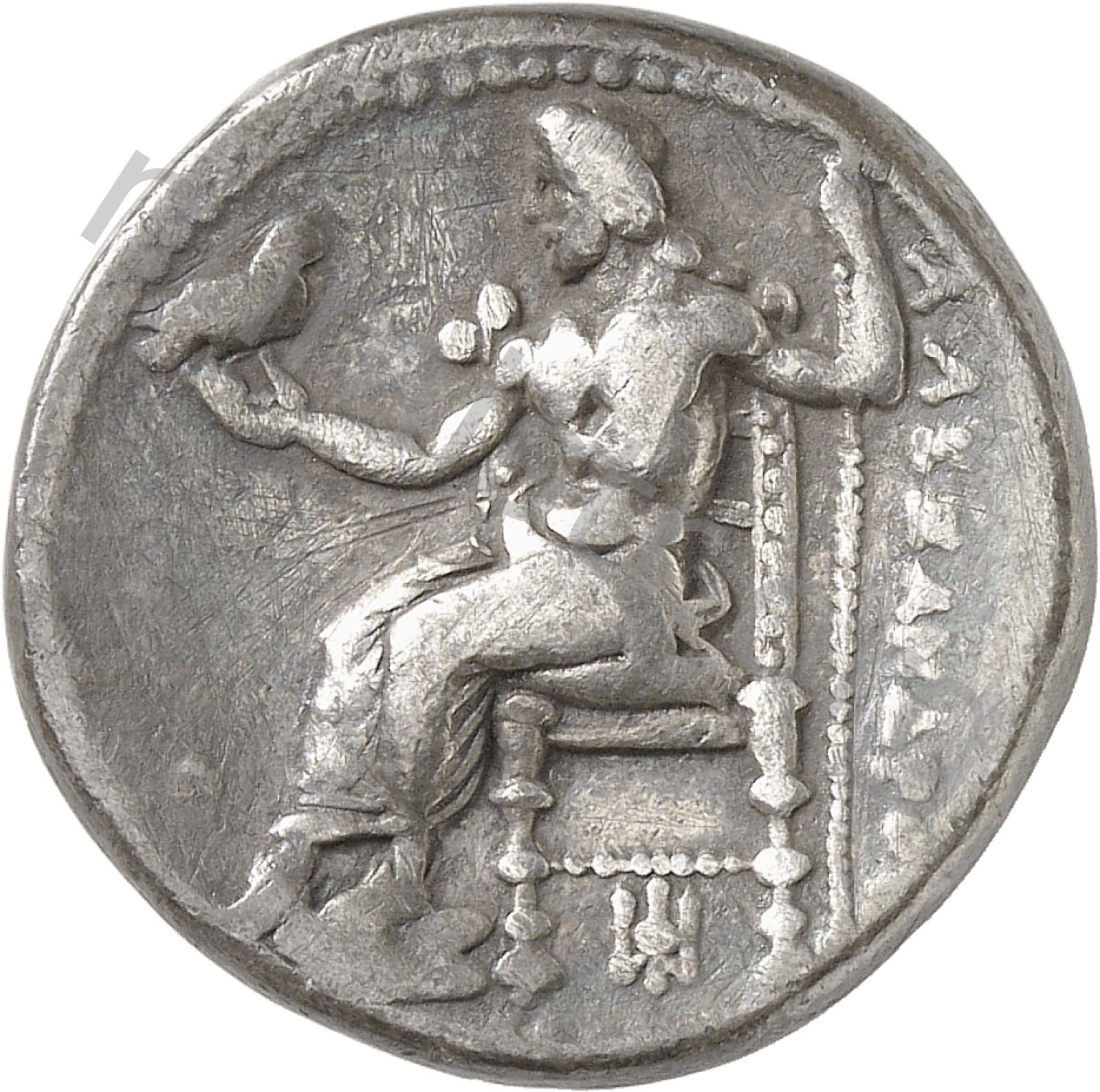 Zeus seated on stool-throne left eagle on outstretched right hand sceptre in left hand -[en]