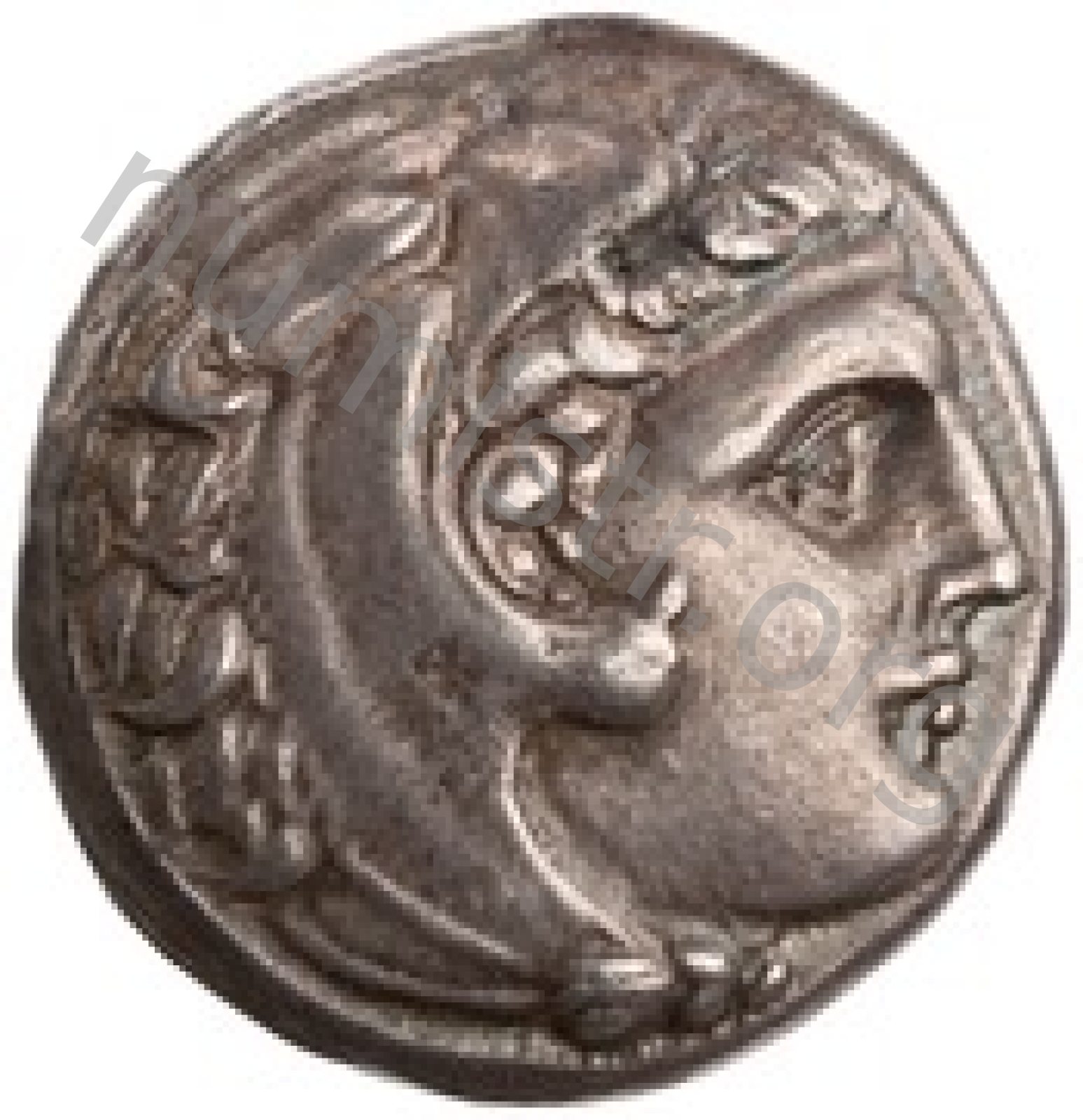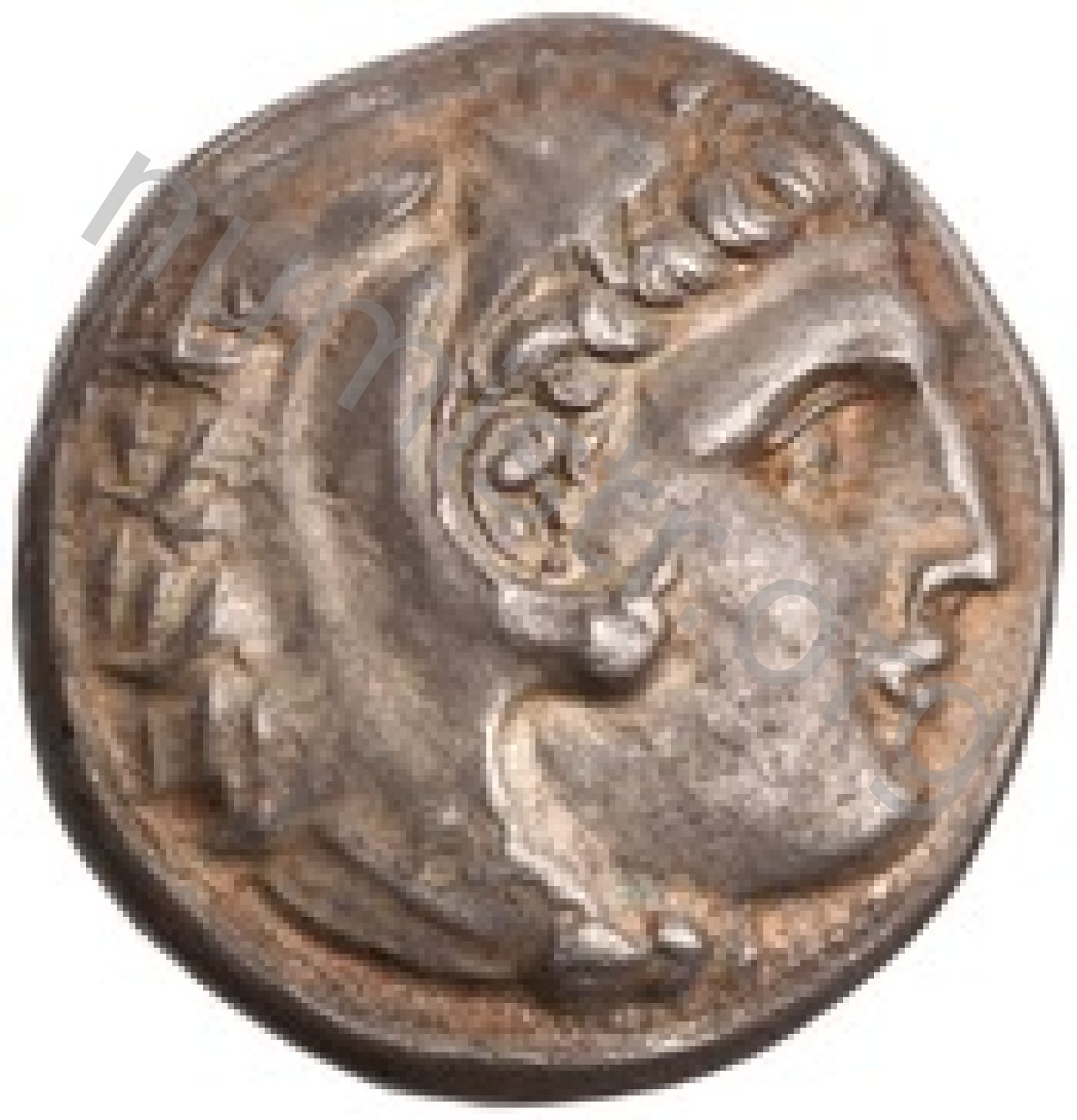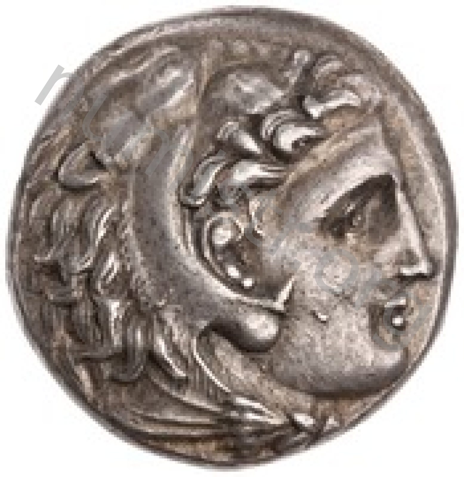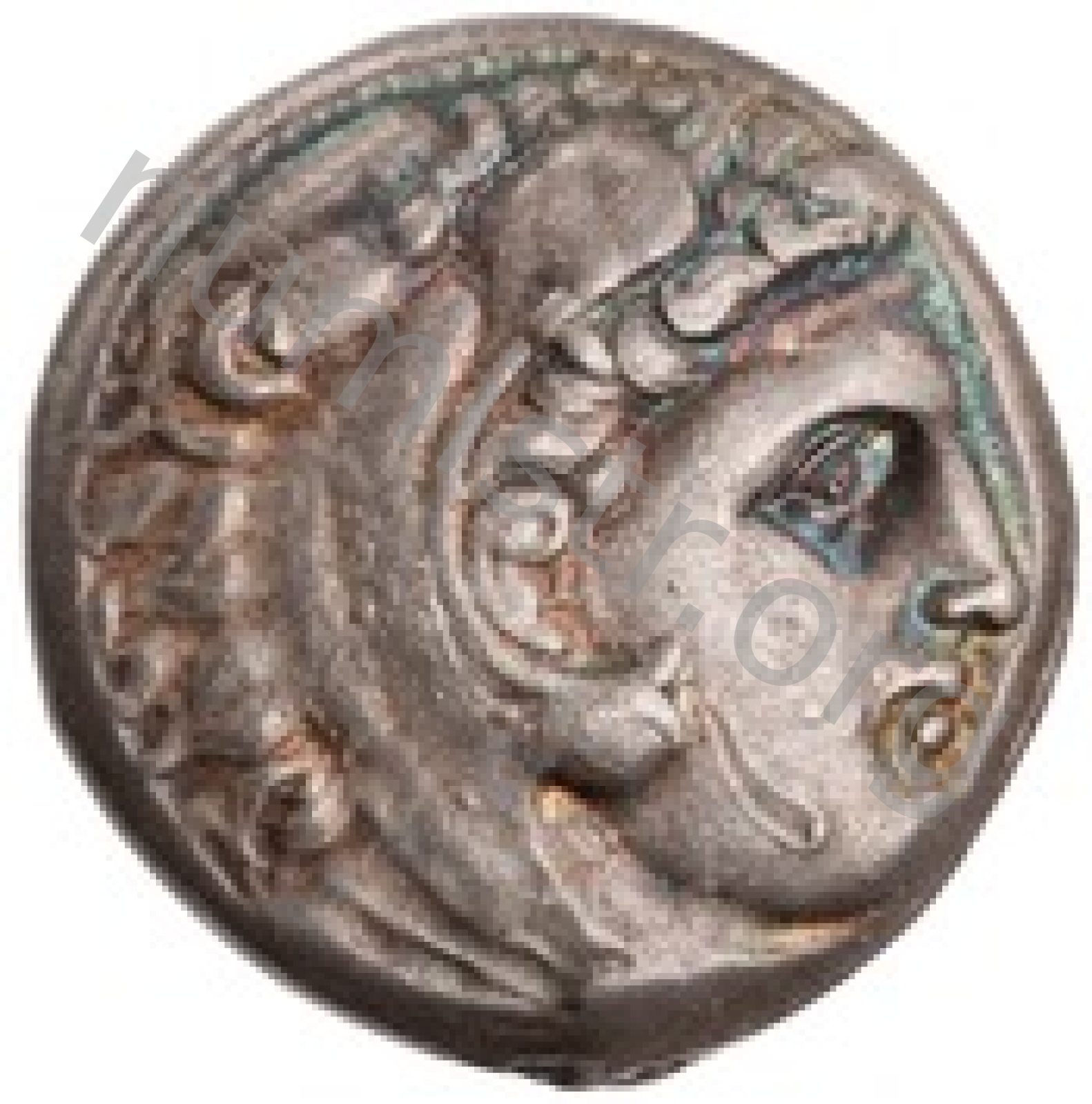 Head of beardless Heracles right wearing lion skin headdress -[en]