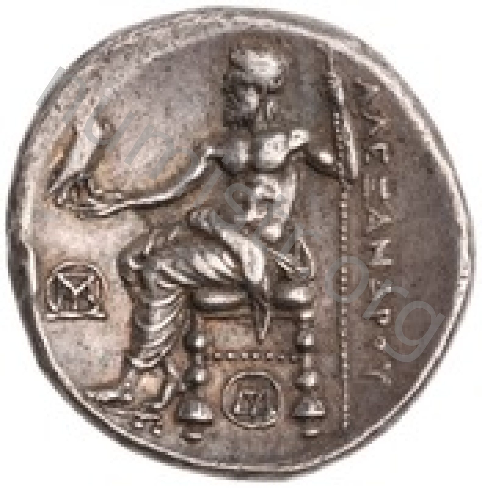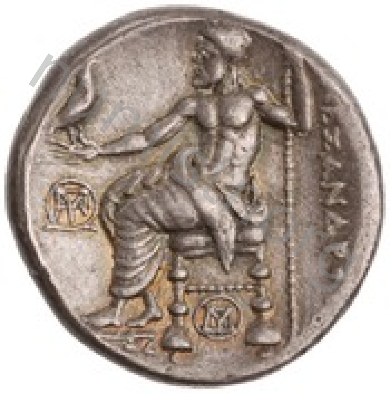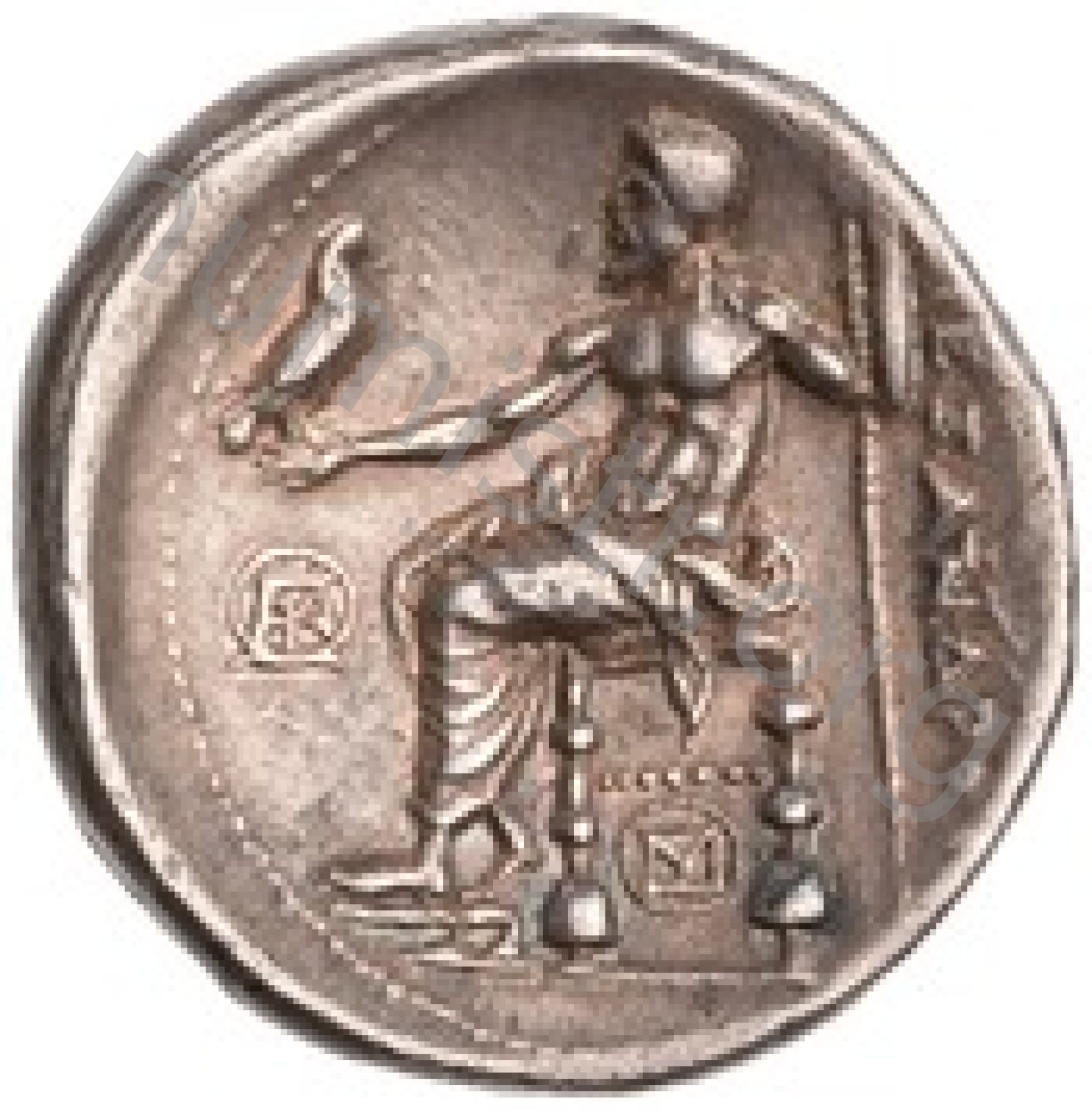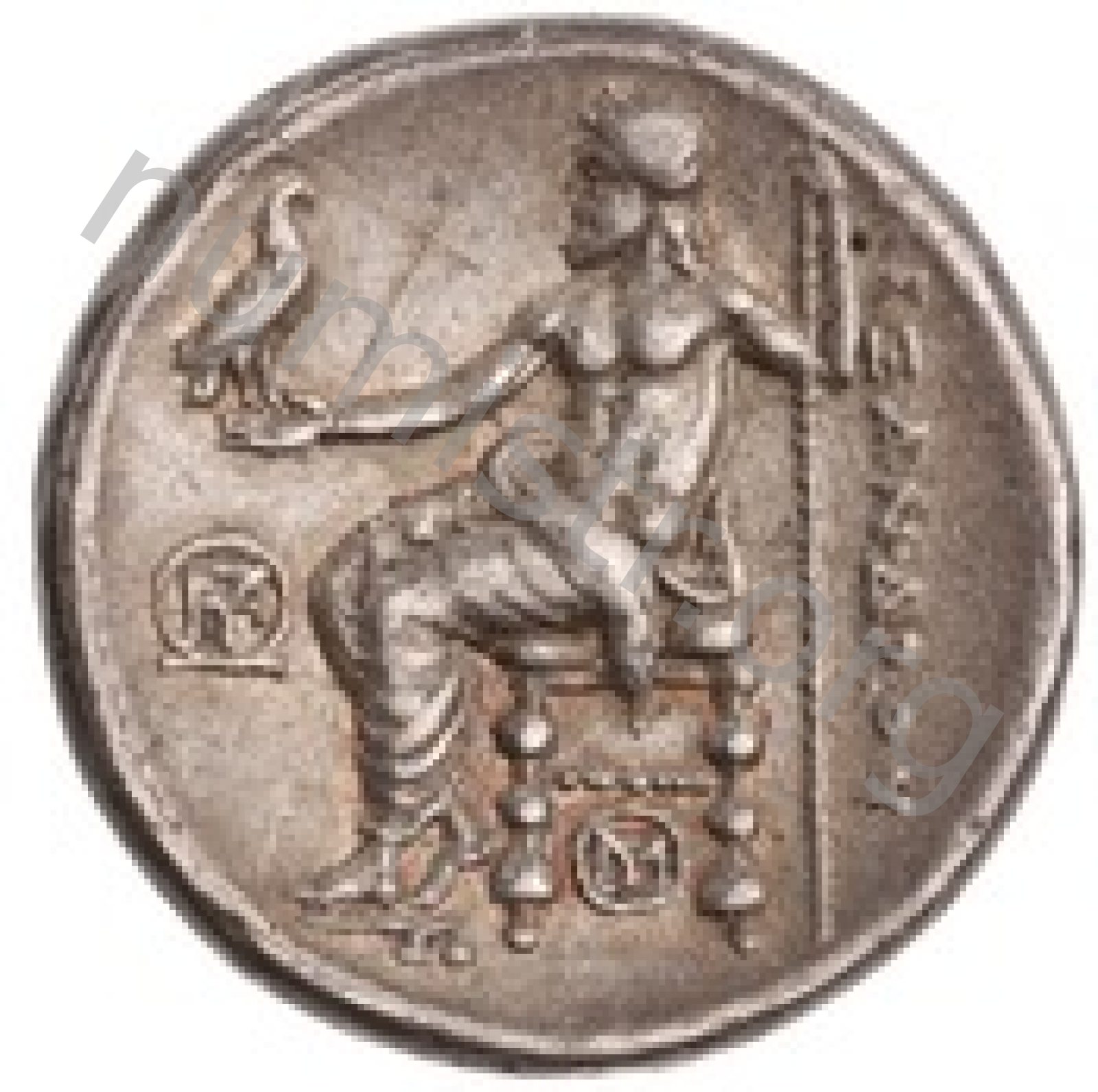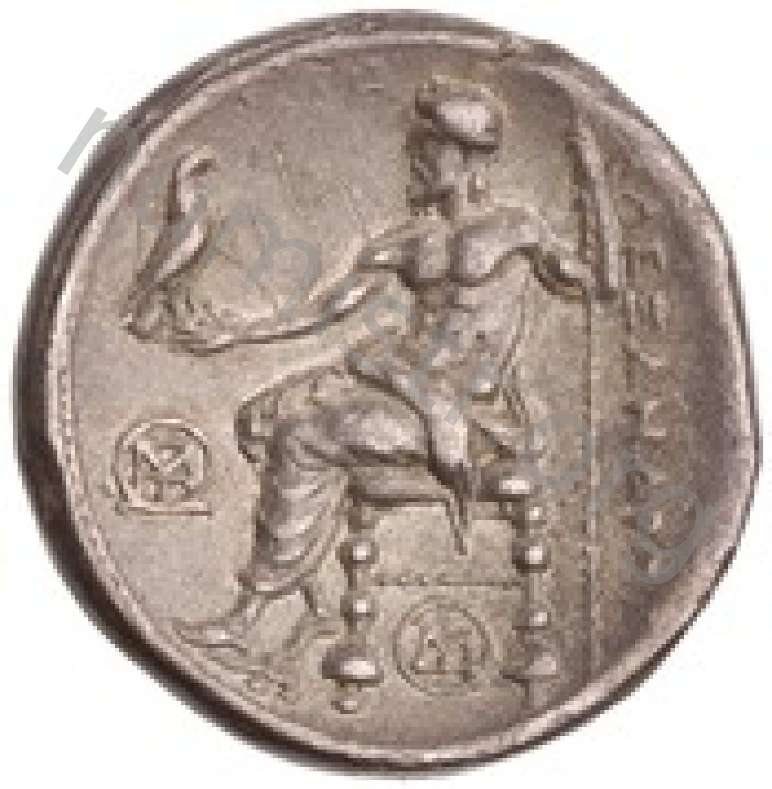 Zeus seated on stool-throne left eagle on outstretched right hand sceptre in left hand -[en]