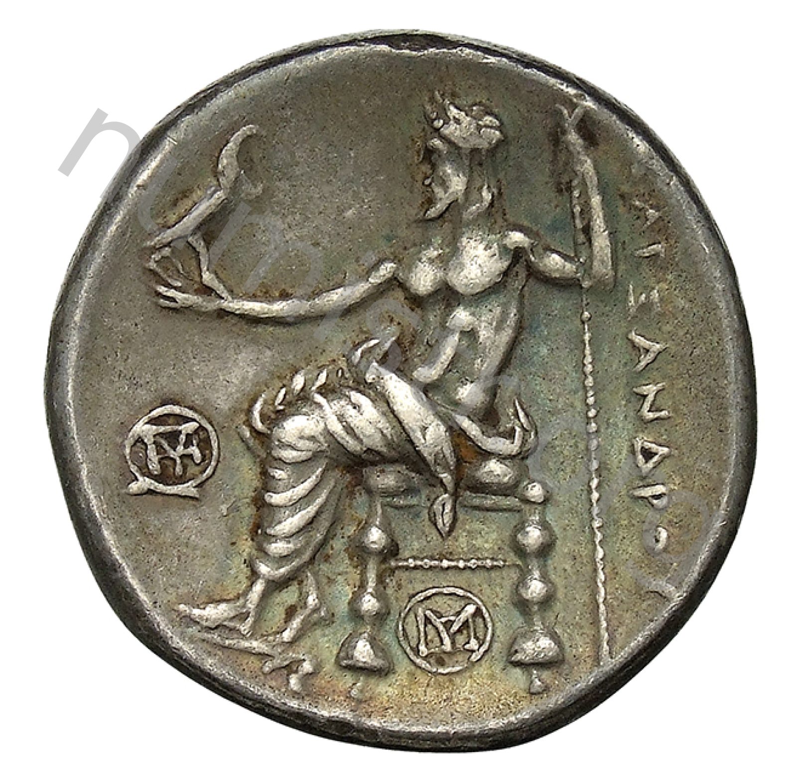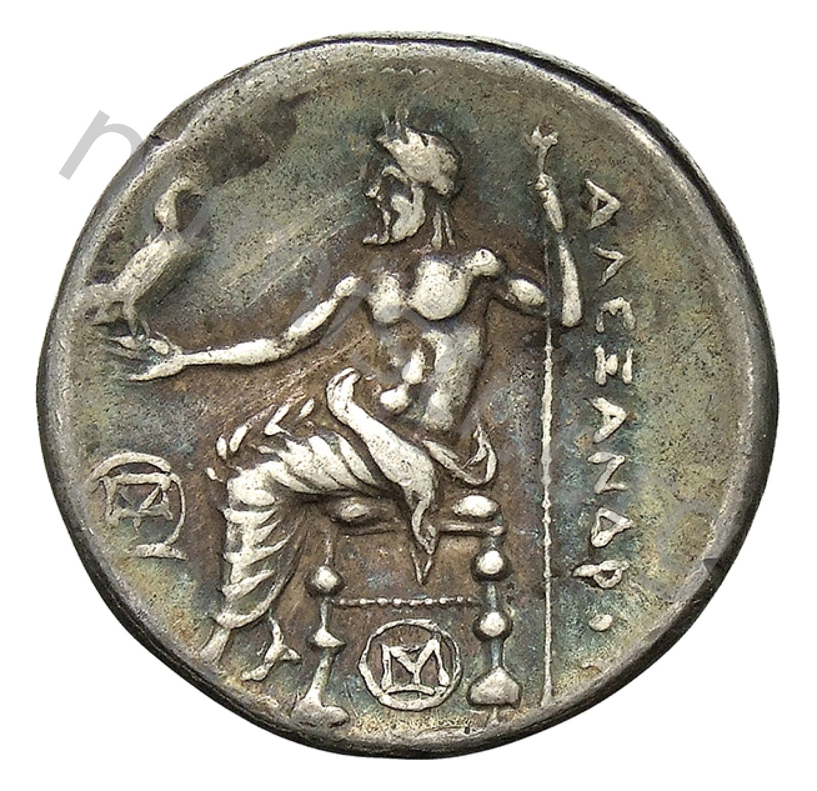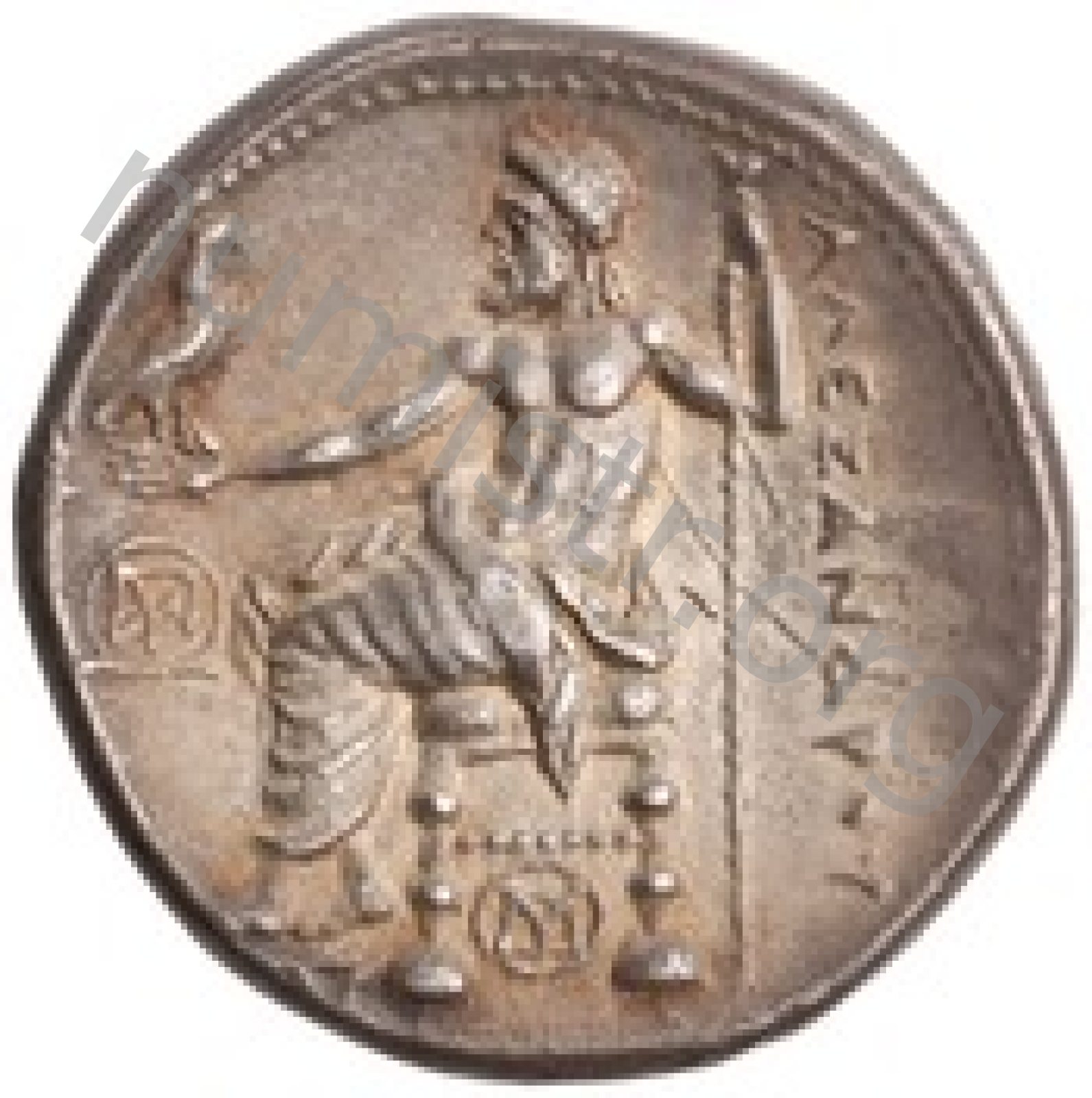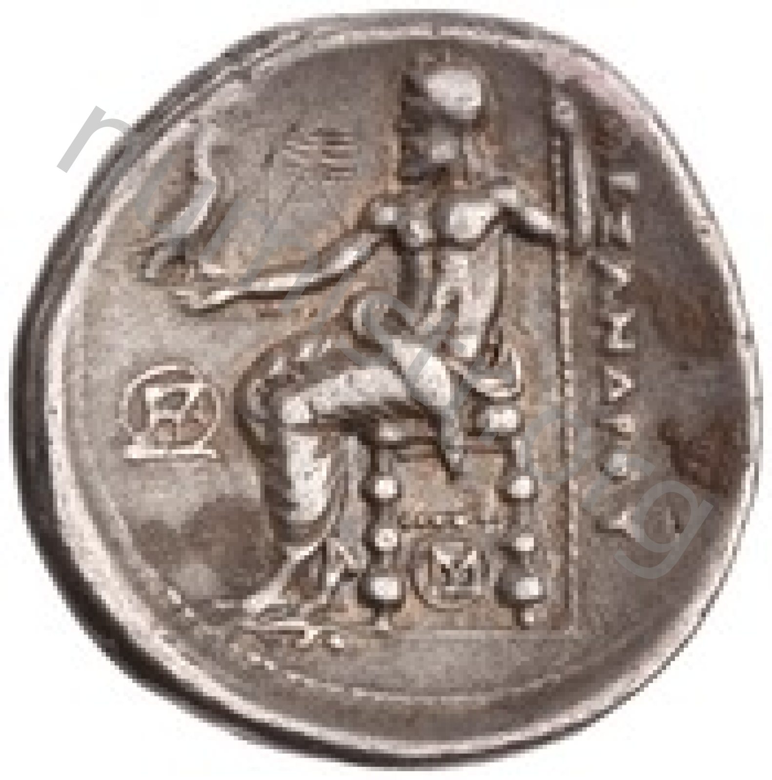 Zeus tabure-tahtta oturuyor sol elinde kartal sağ elinde asa var.
