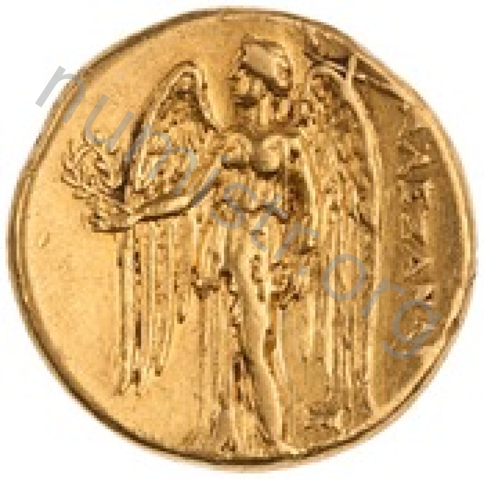 Nike standing left holding wreath in right hand and stylis in her left hand -[en]