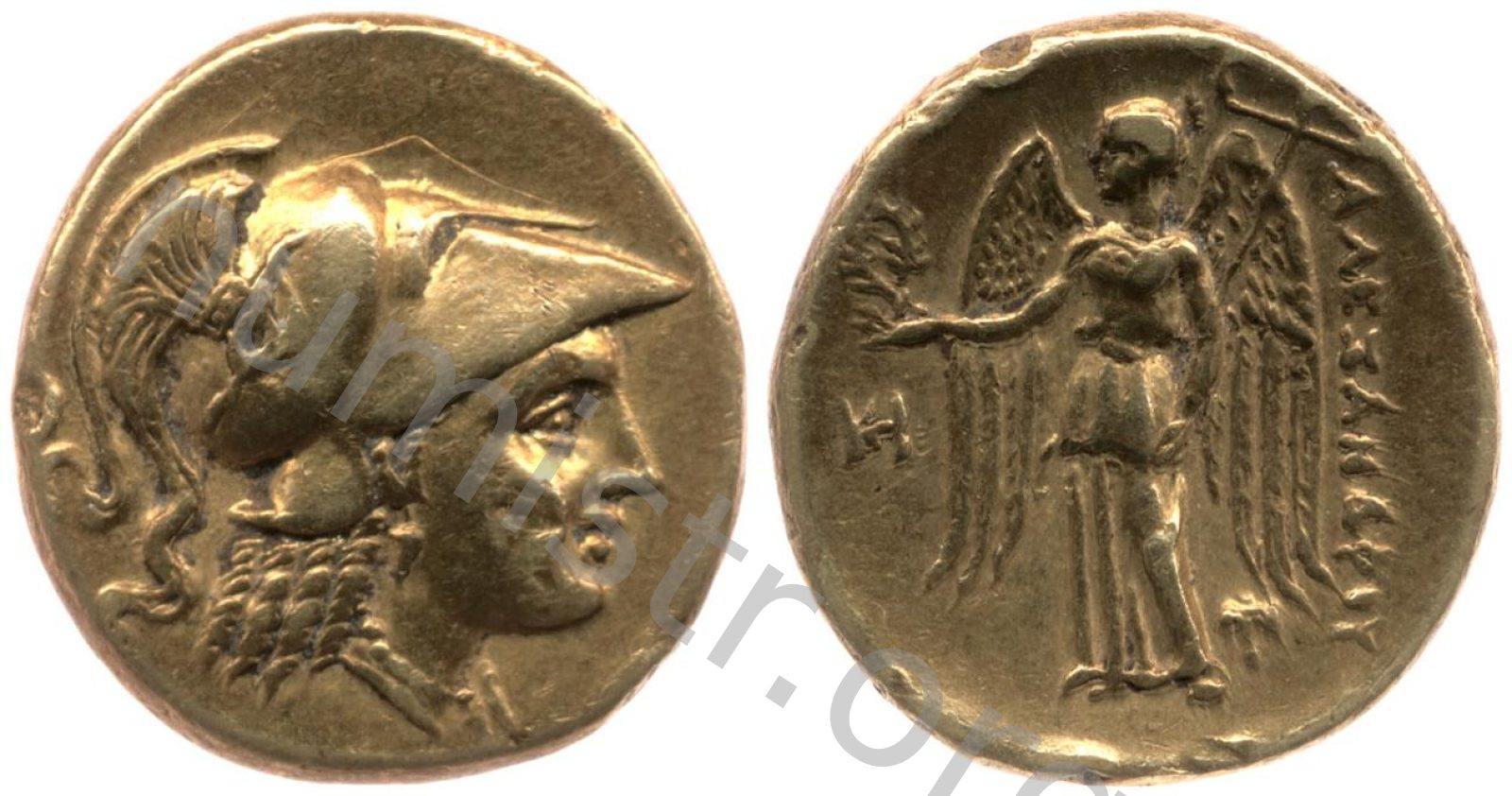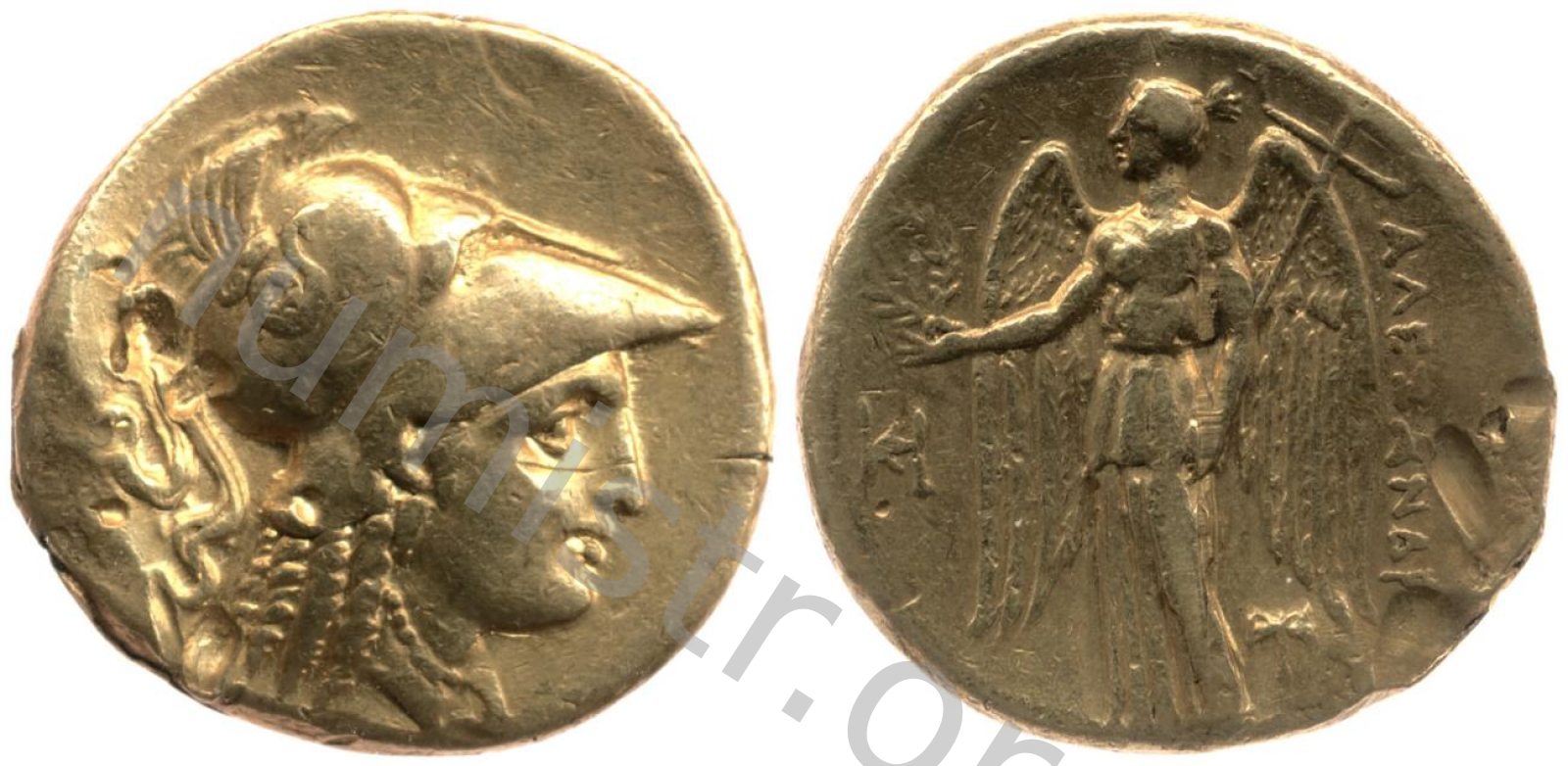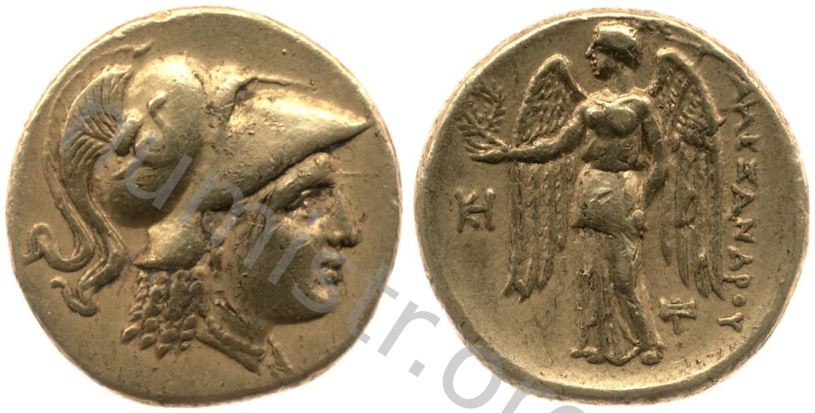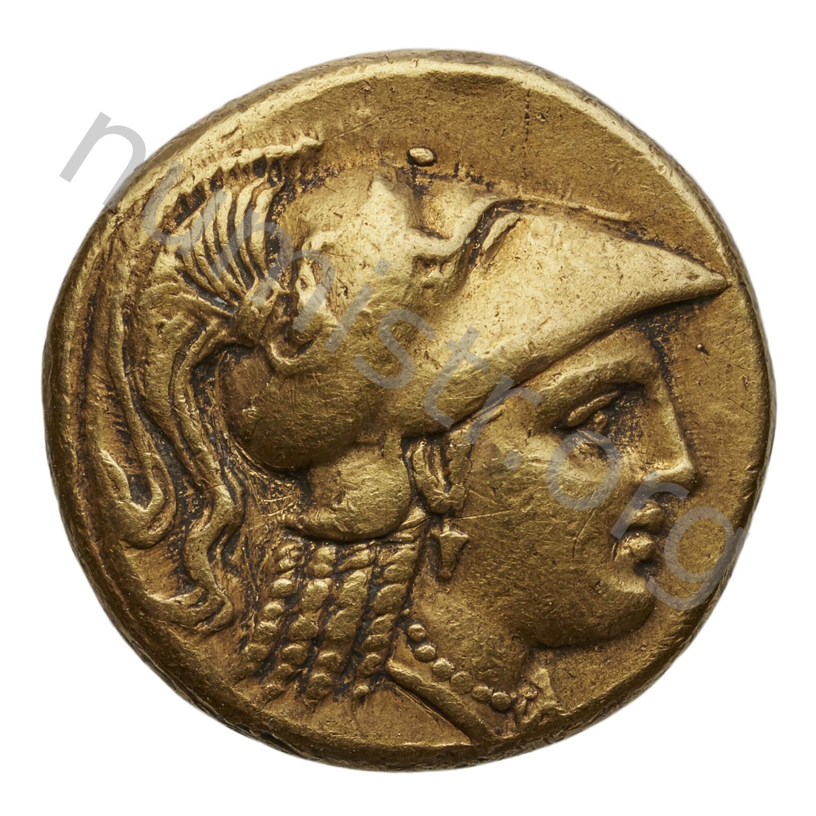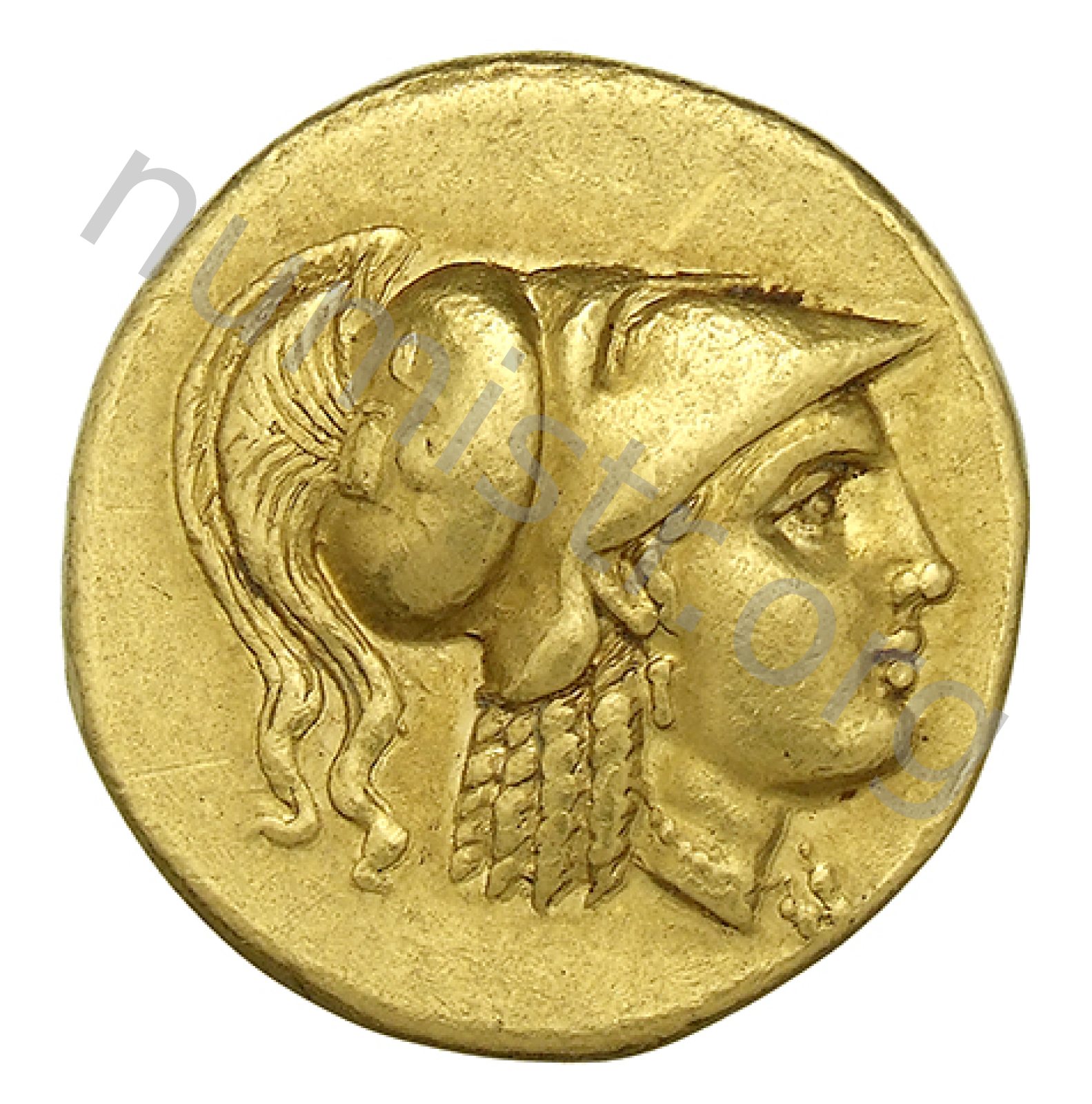 Head of Athena right wearing Corinthian helmet with crest -[en]