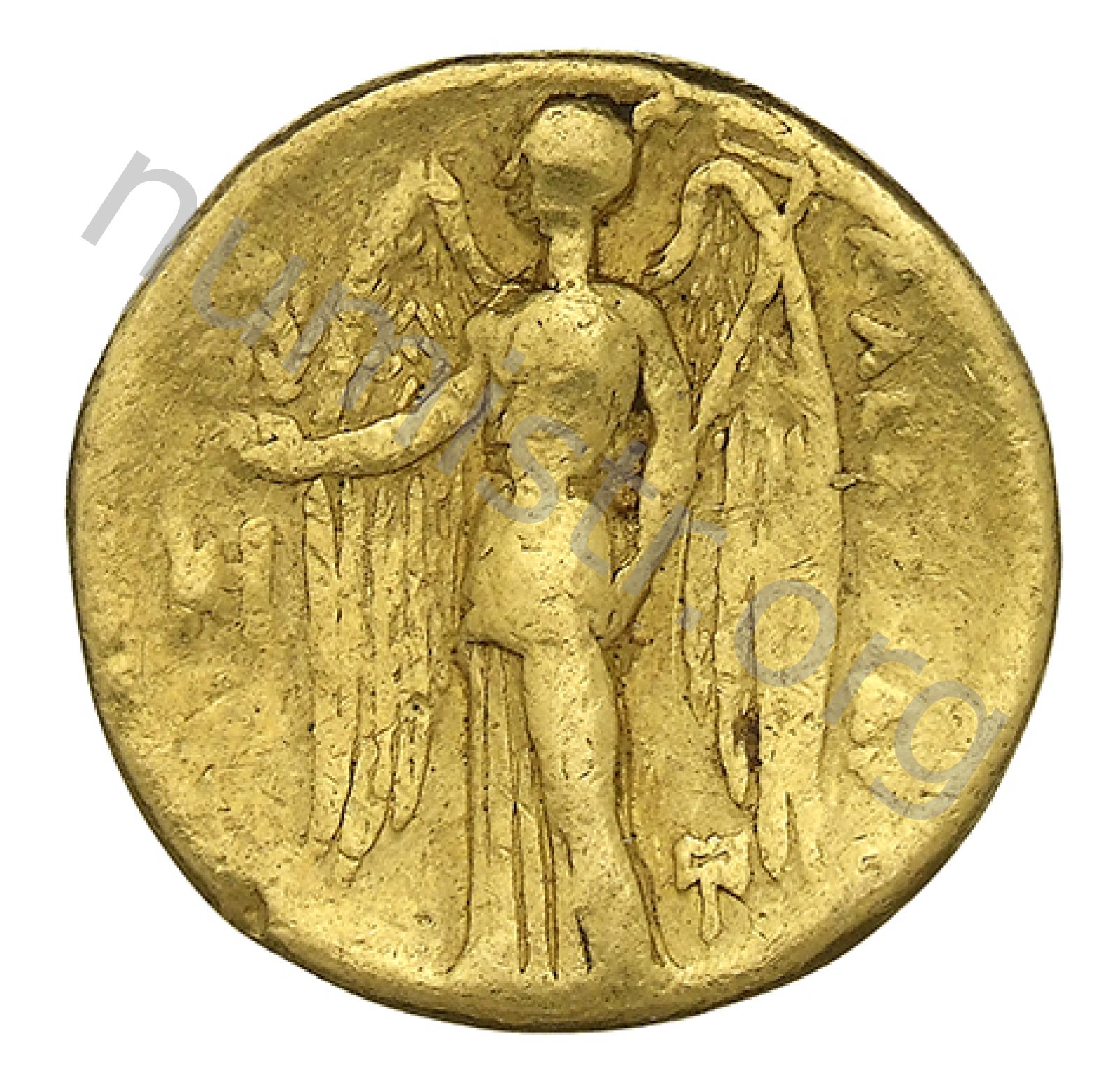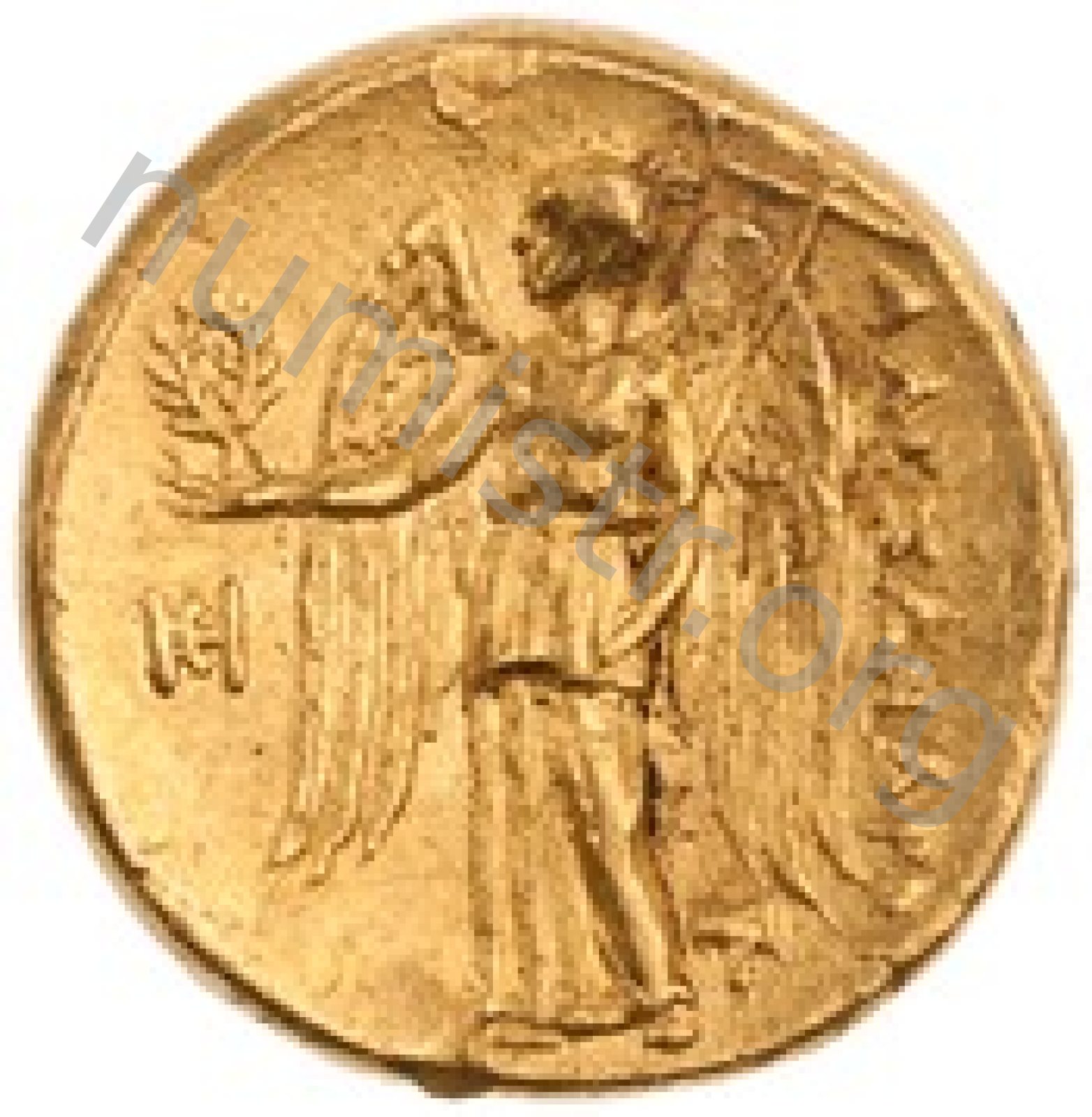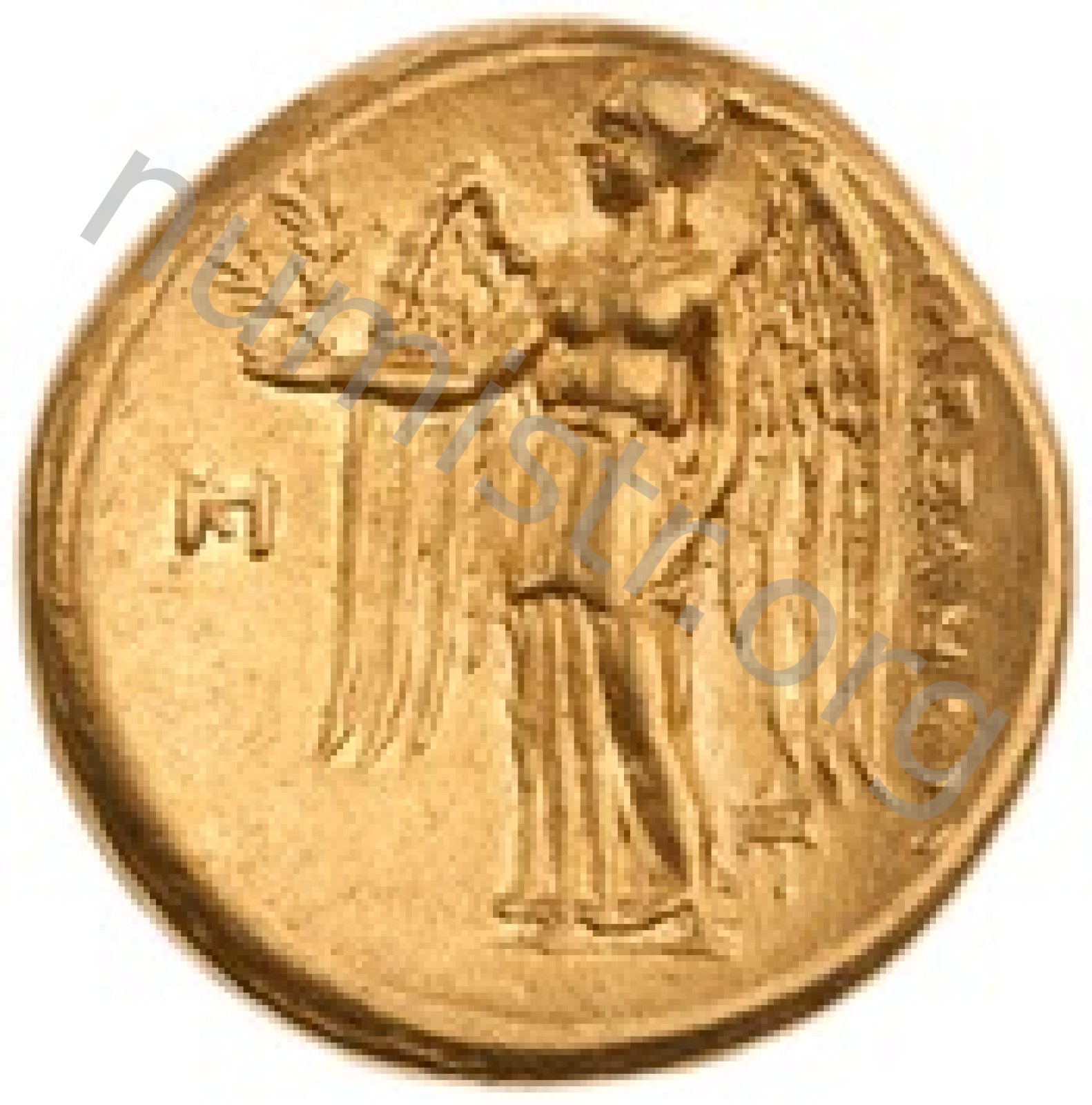Nike standing left holding wreath in right hand and stylis in her left hand -[en]