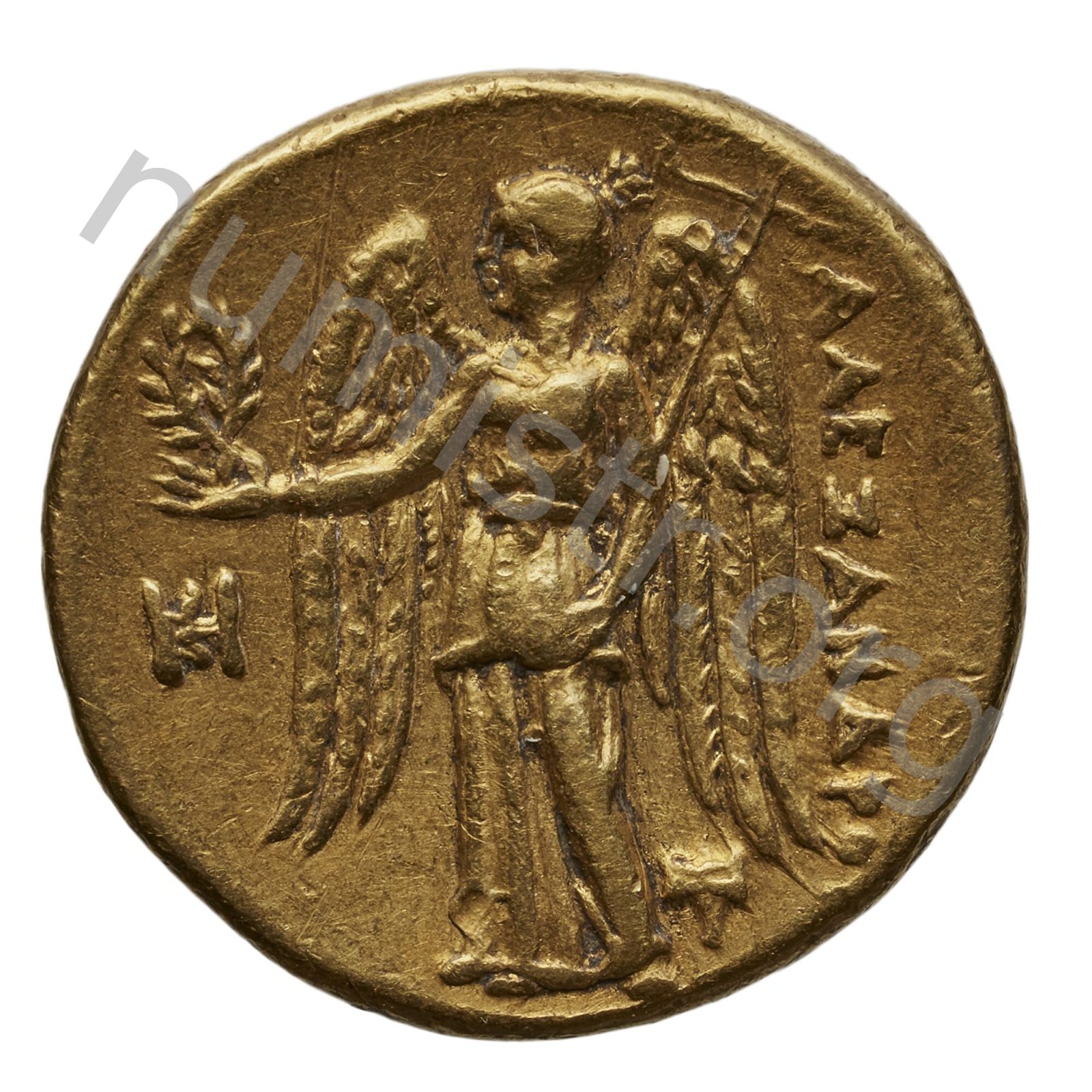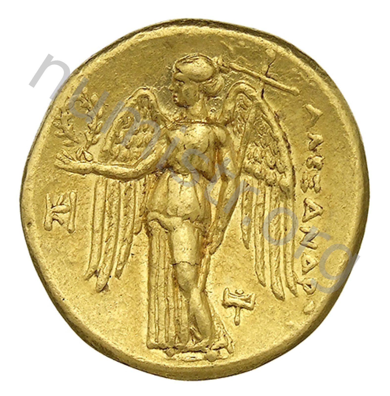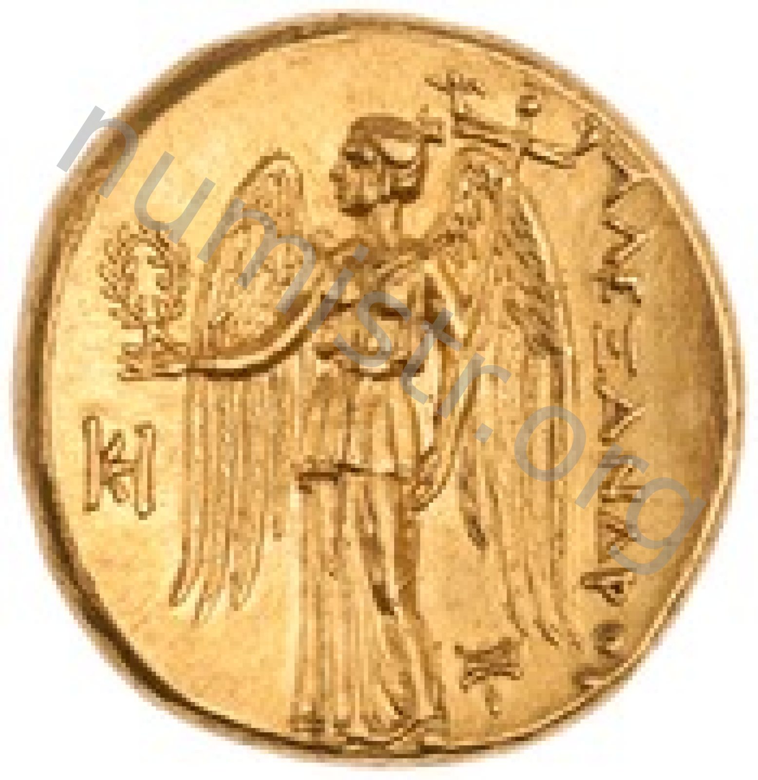 Nike standing left holding wreath in right hand and stylis in her left hand -[en]