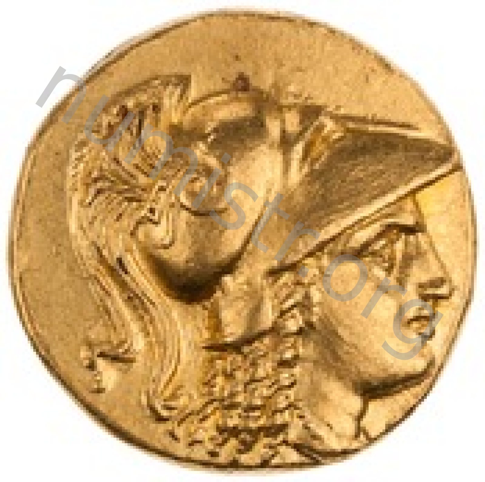 Head of Athena right wearing Corinthian helmet with crest -[en]