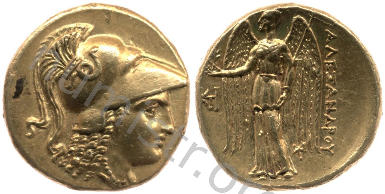 Sağda armalı Korint miğferi takan Athena başı
