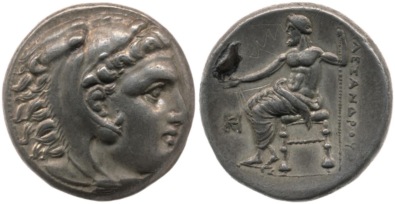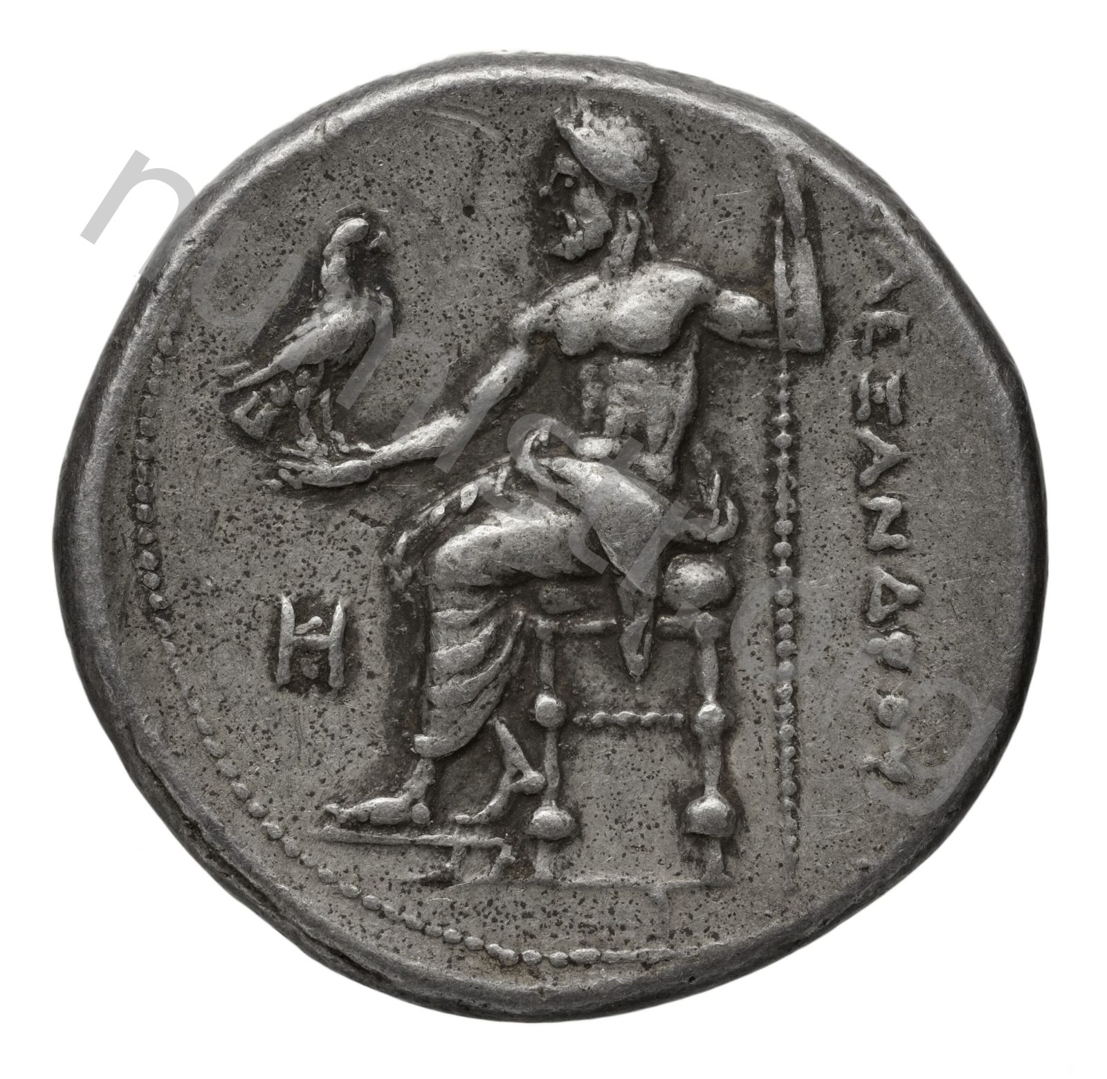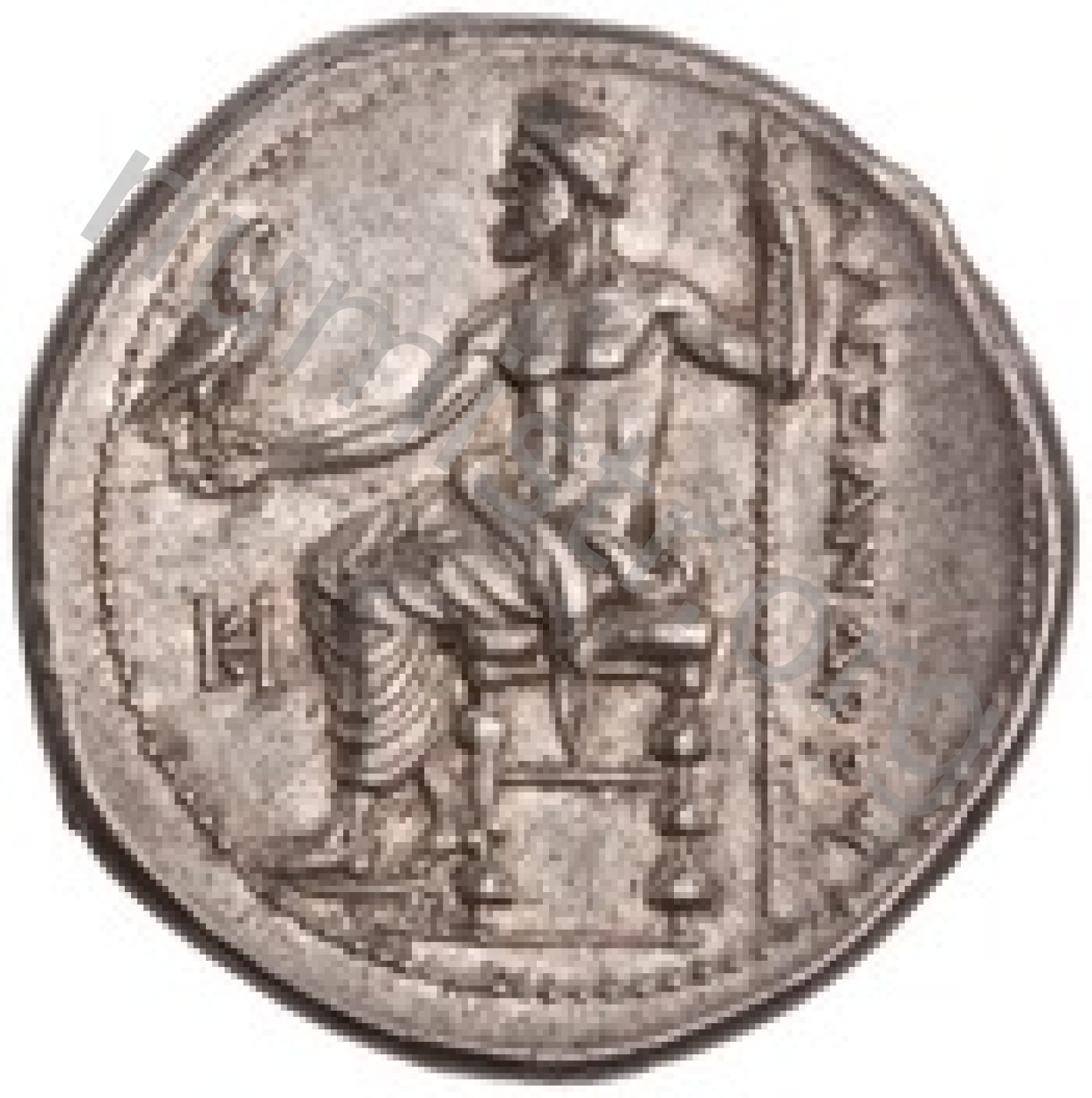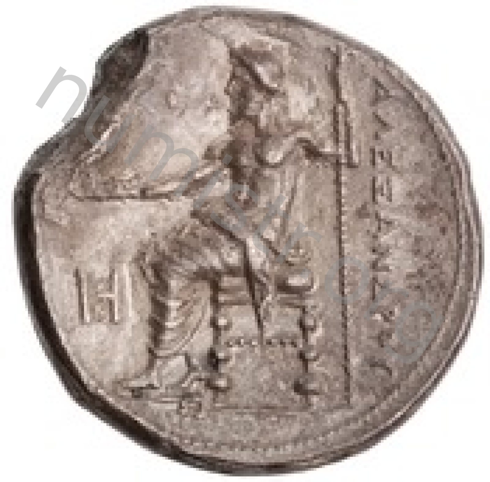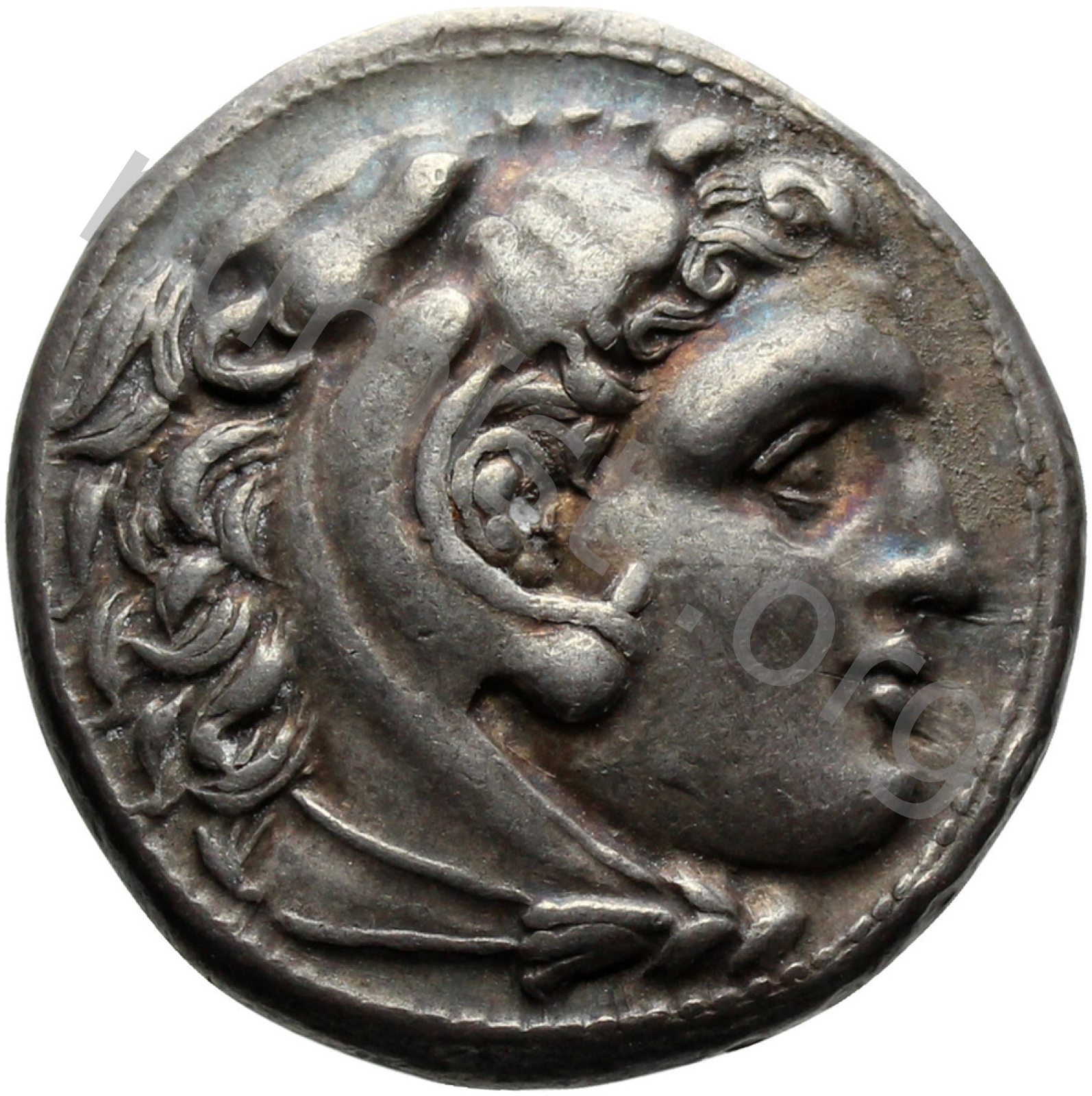 Head of beardless Heracles right wearing lion skin headdress -[en]
