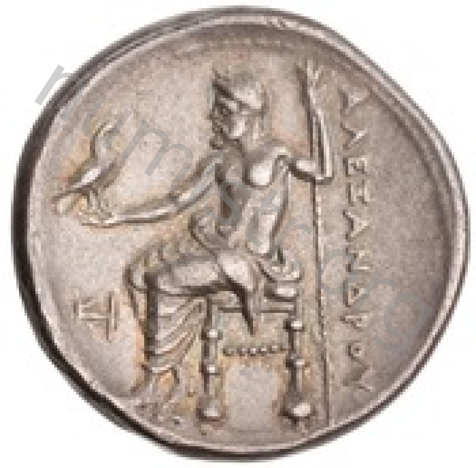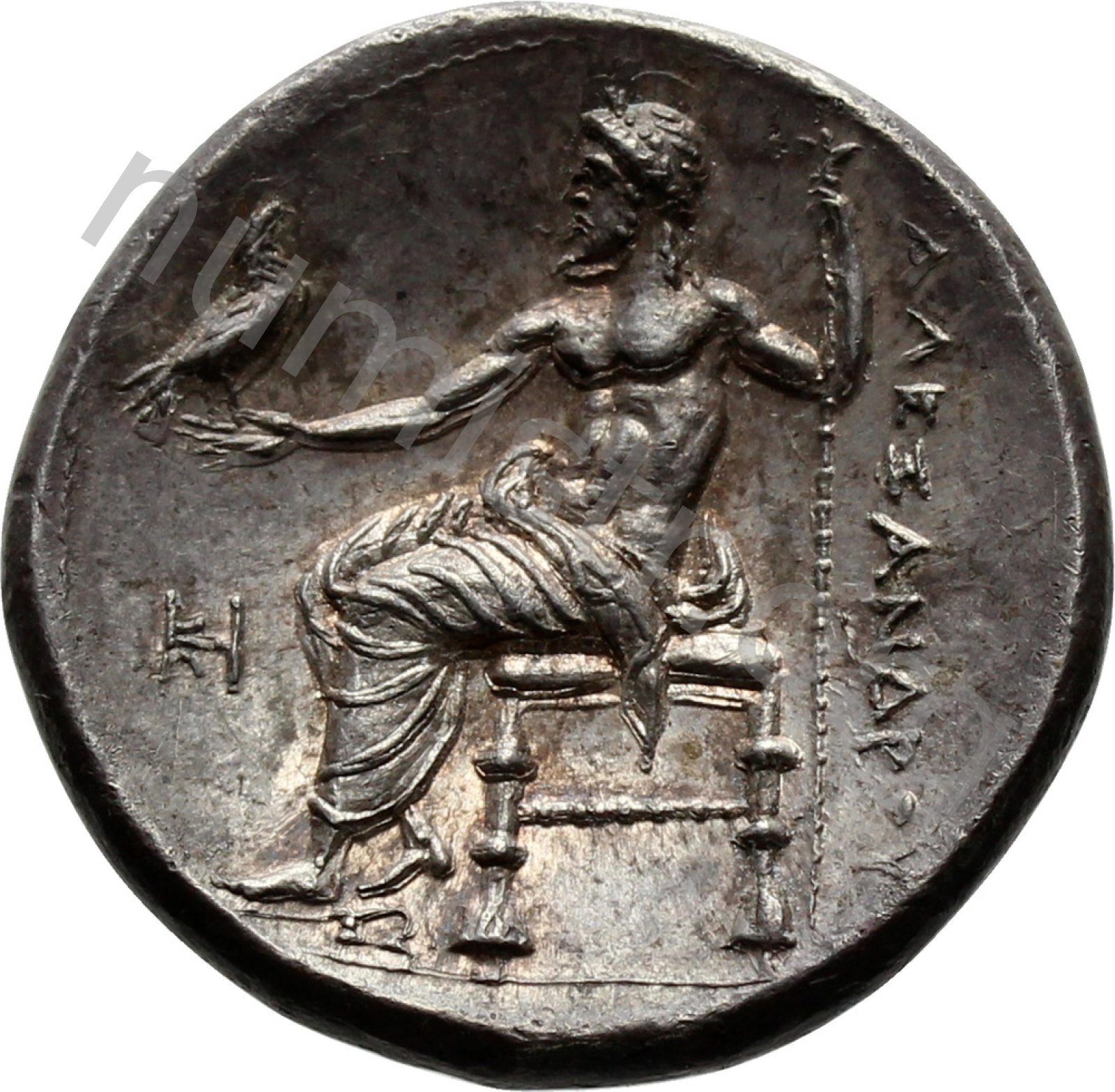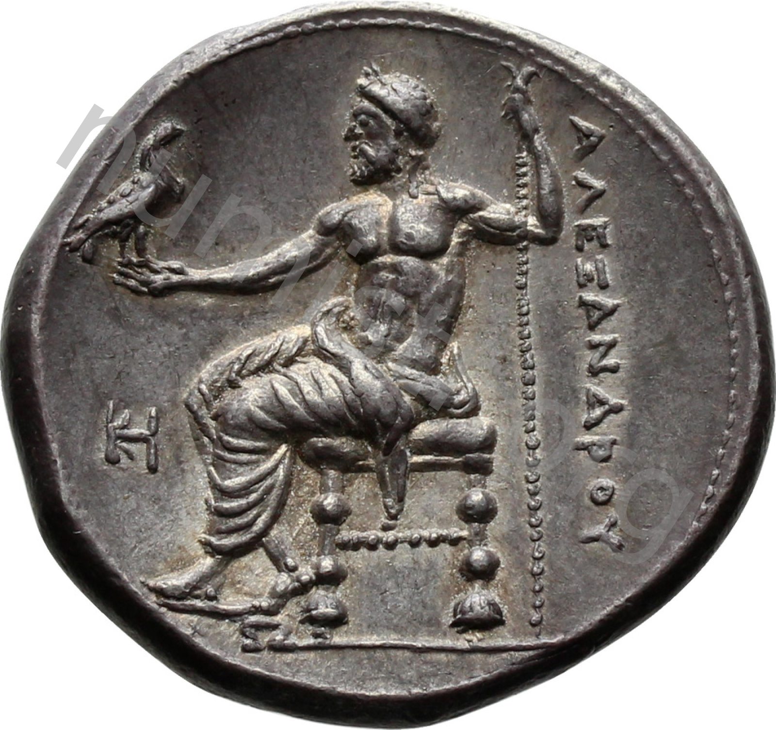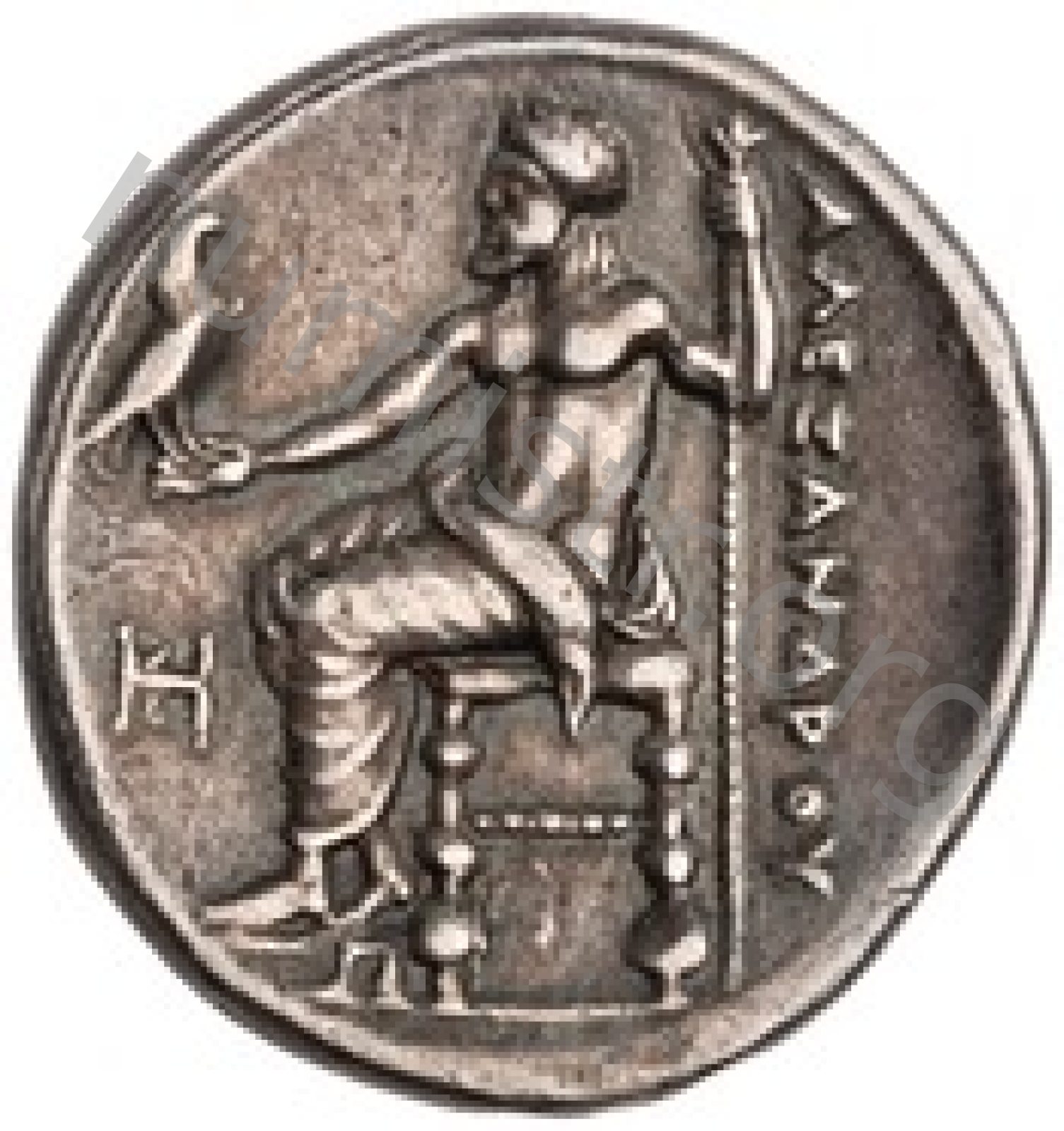 Zeus tabure-tahtta oturuyor sol elinde kartal sağ elinde asa var.