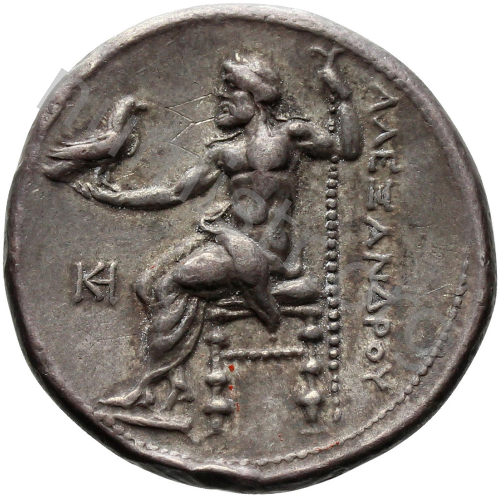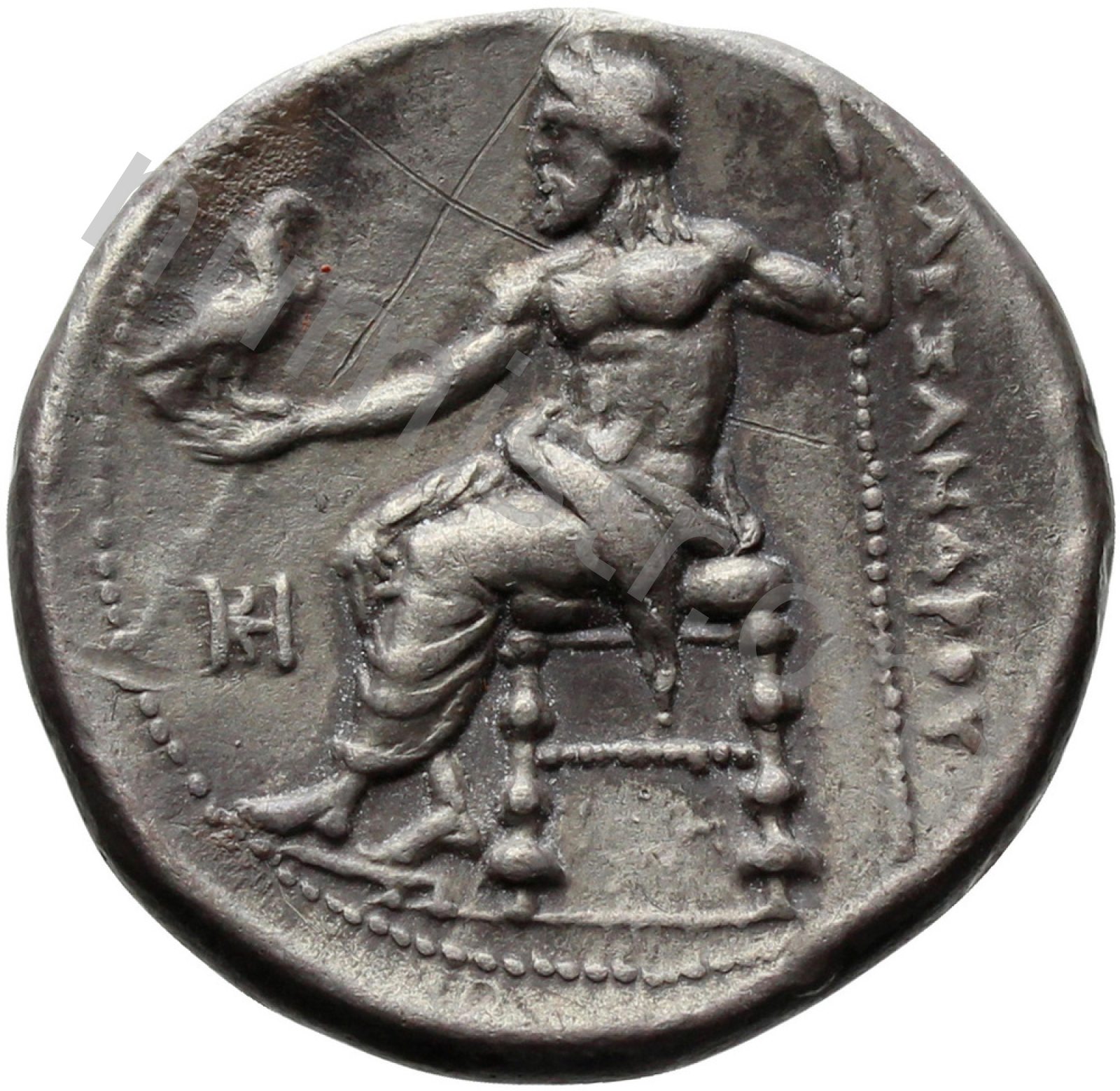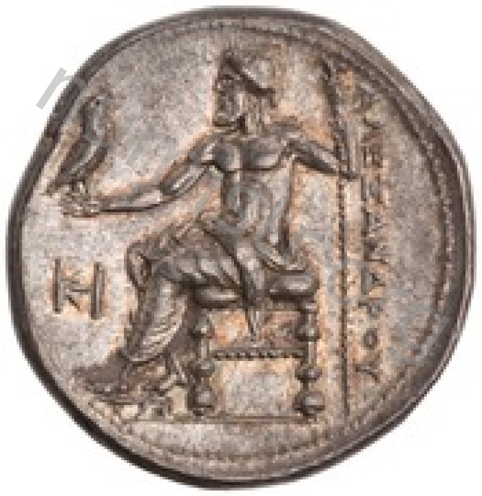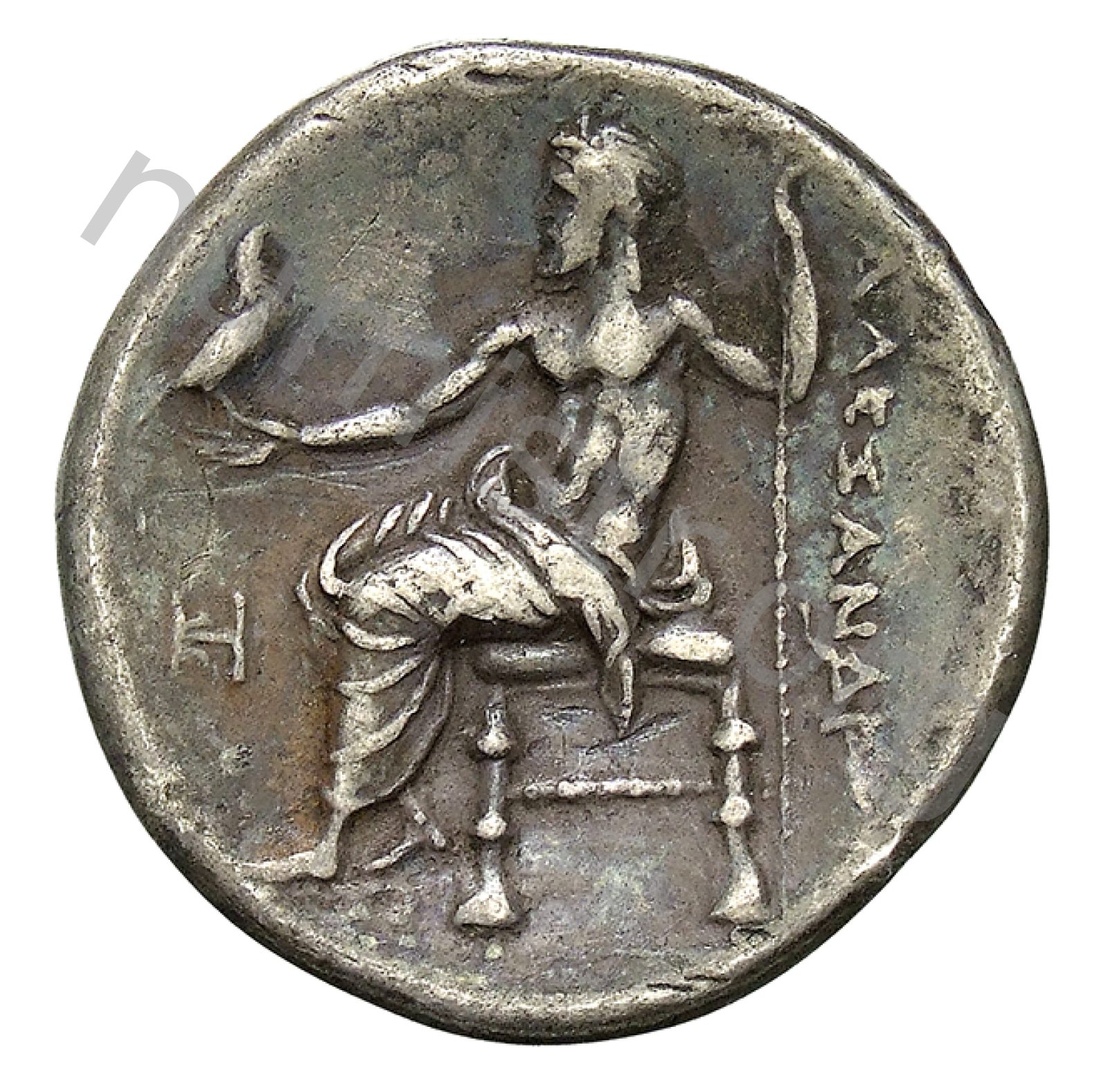 Zeus tabure-tahtta oturuyor sol elinde kartal sağ elinde asa var.