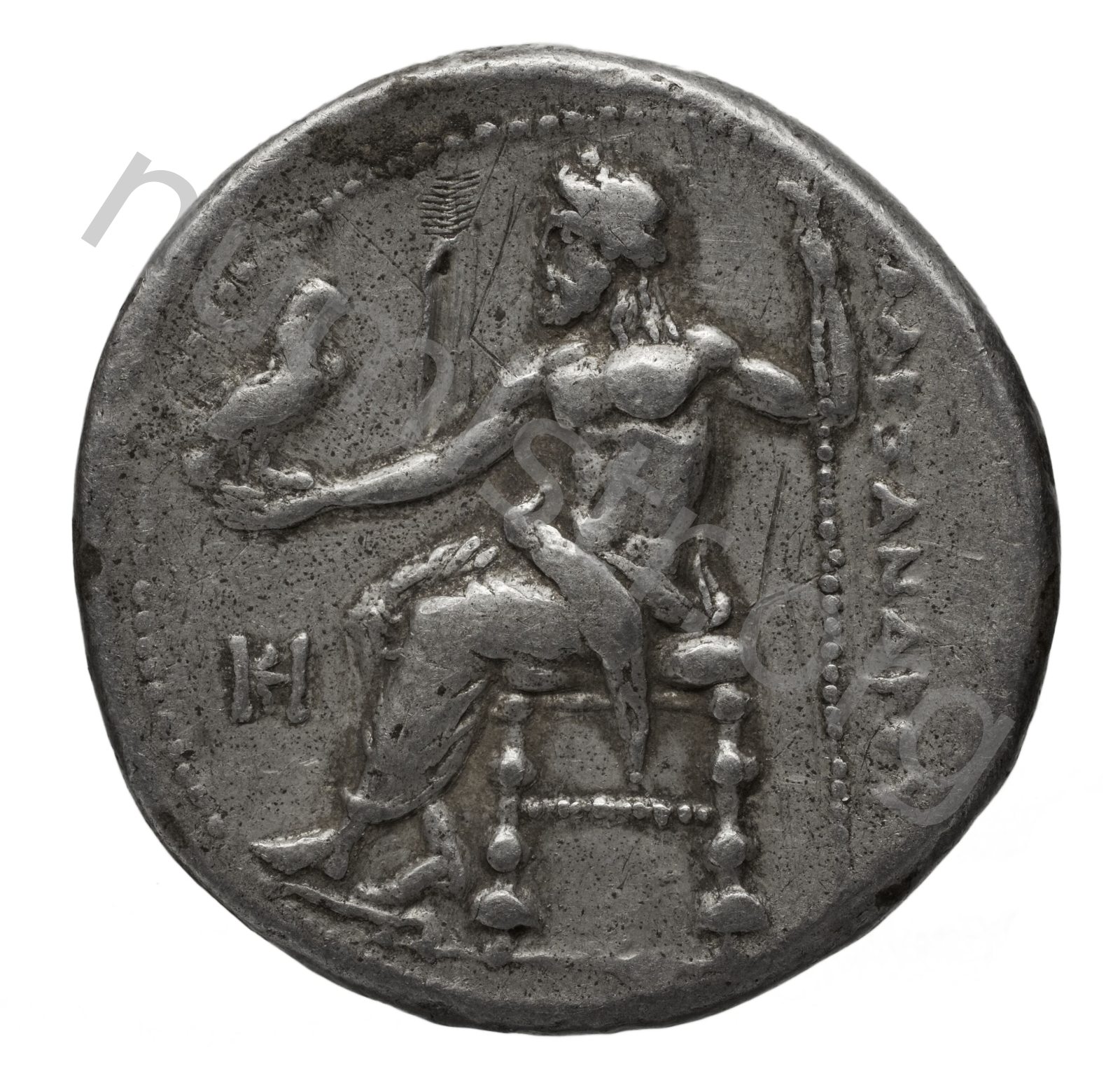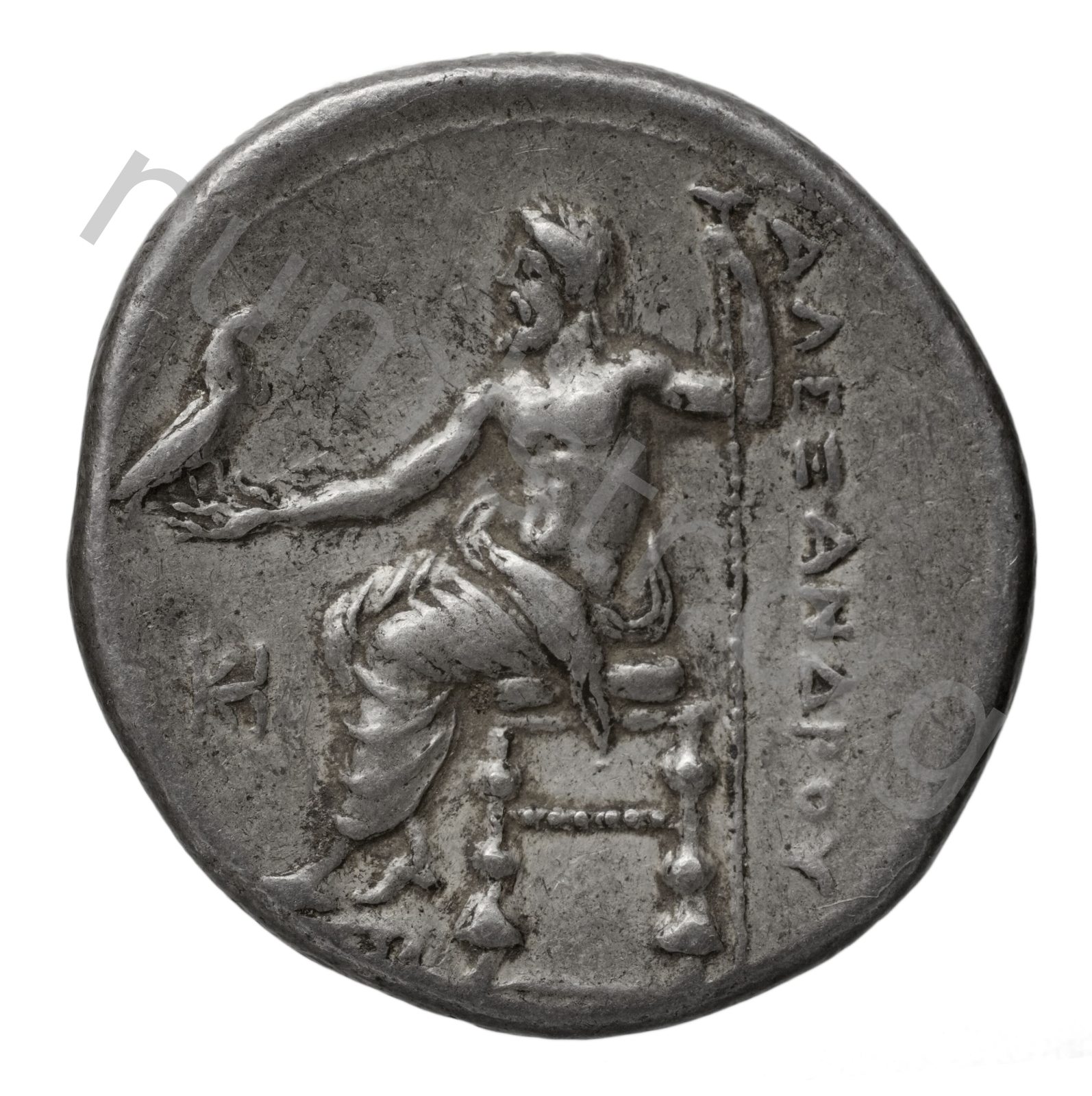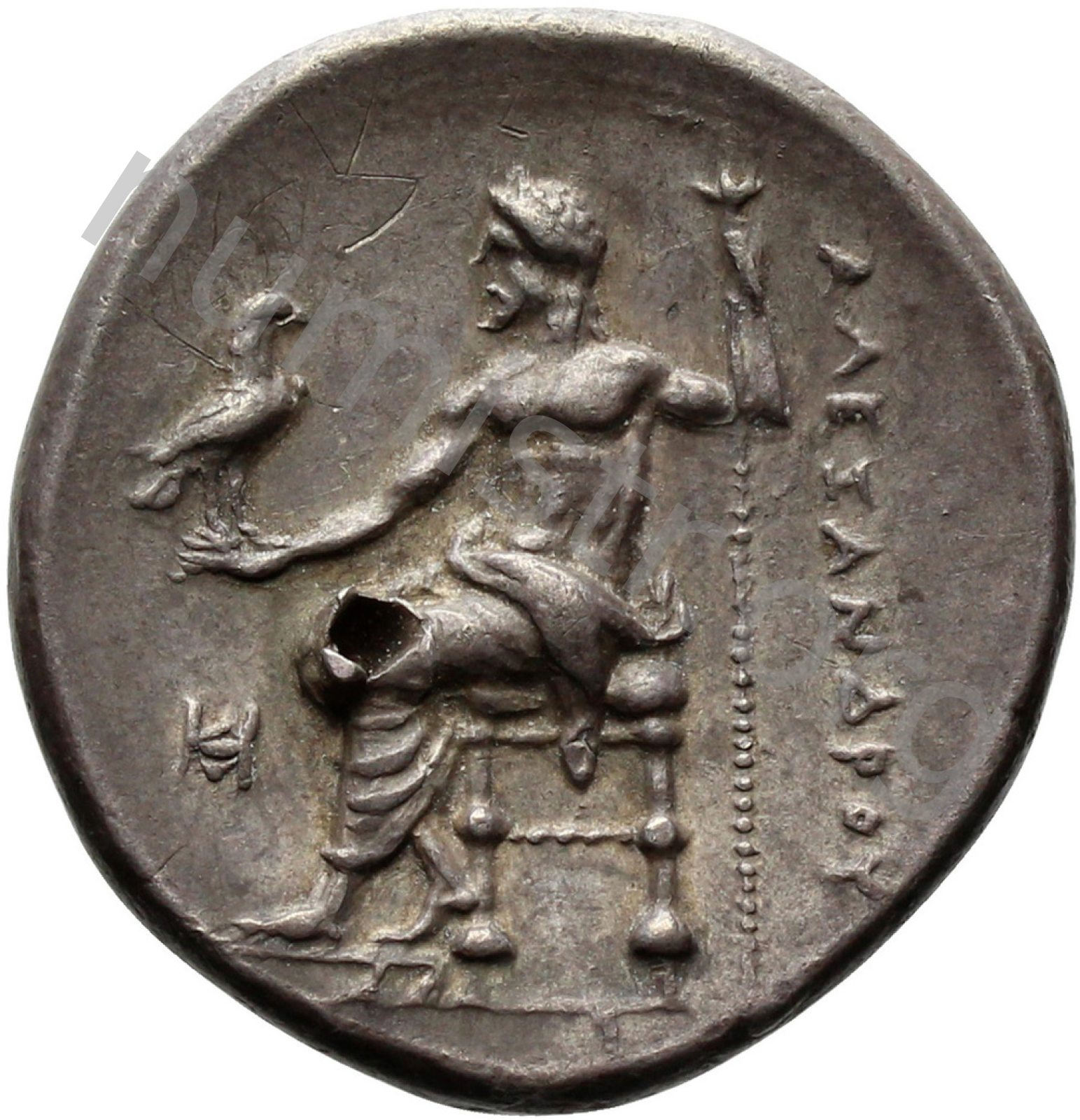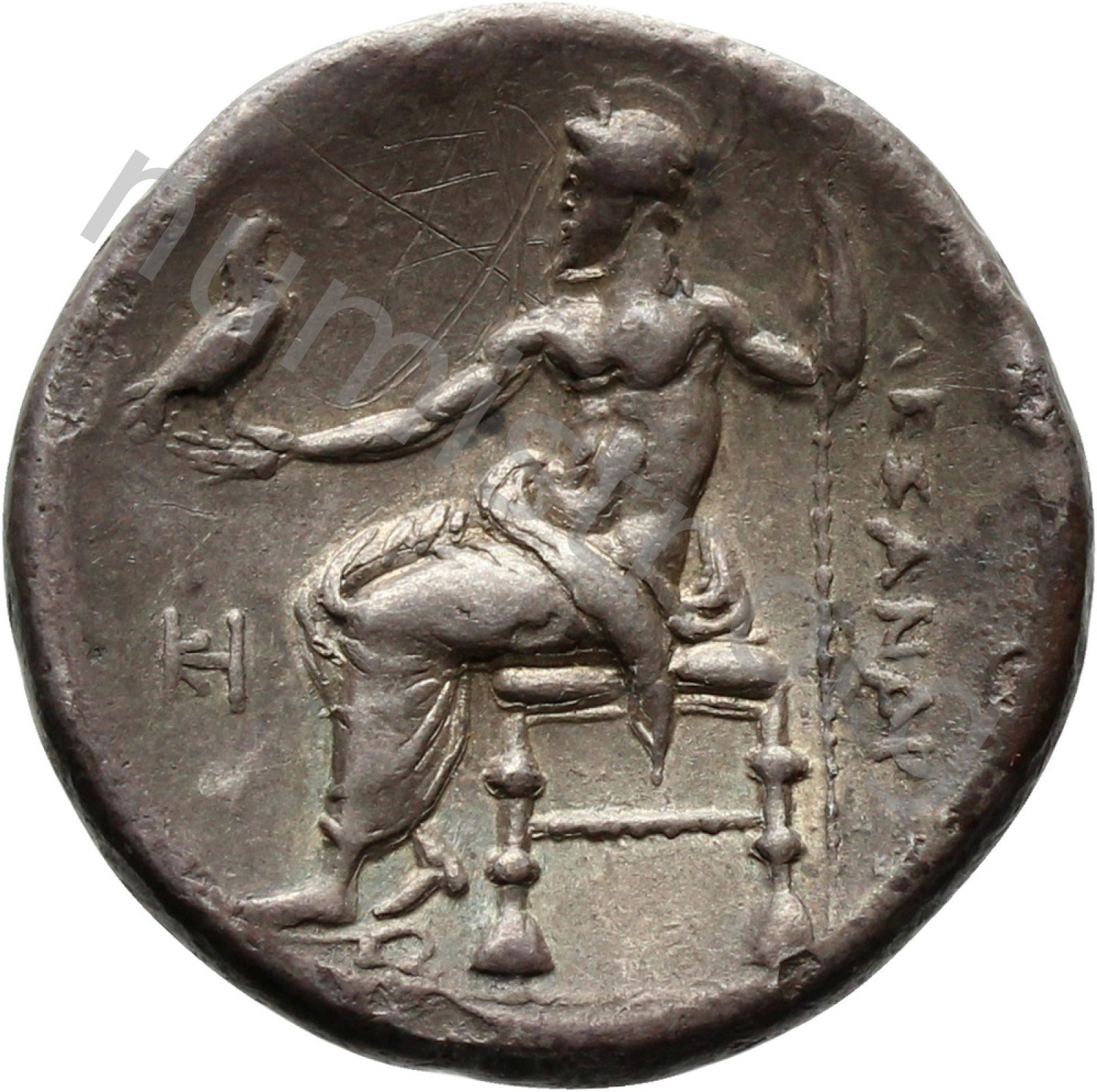 Zeus tabure-tahtta oturuyor sol elinde kartal sağ elinde asa var.