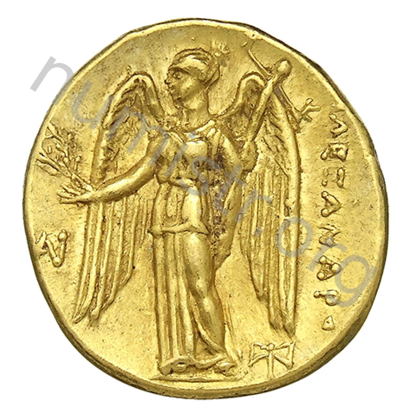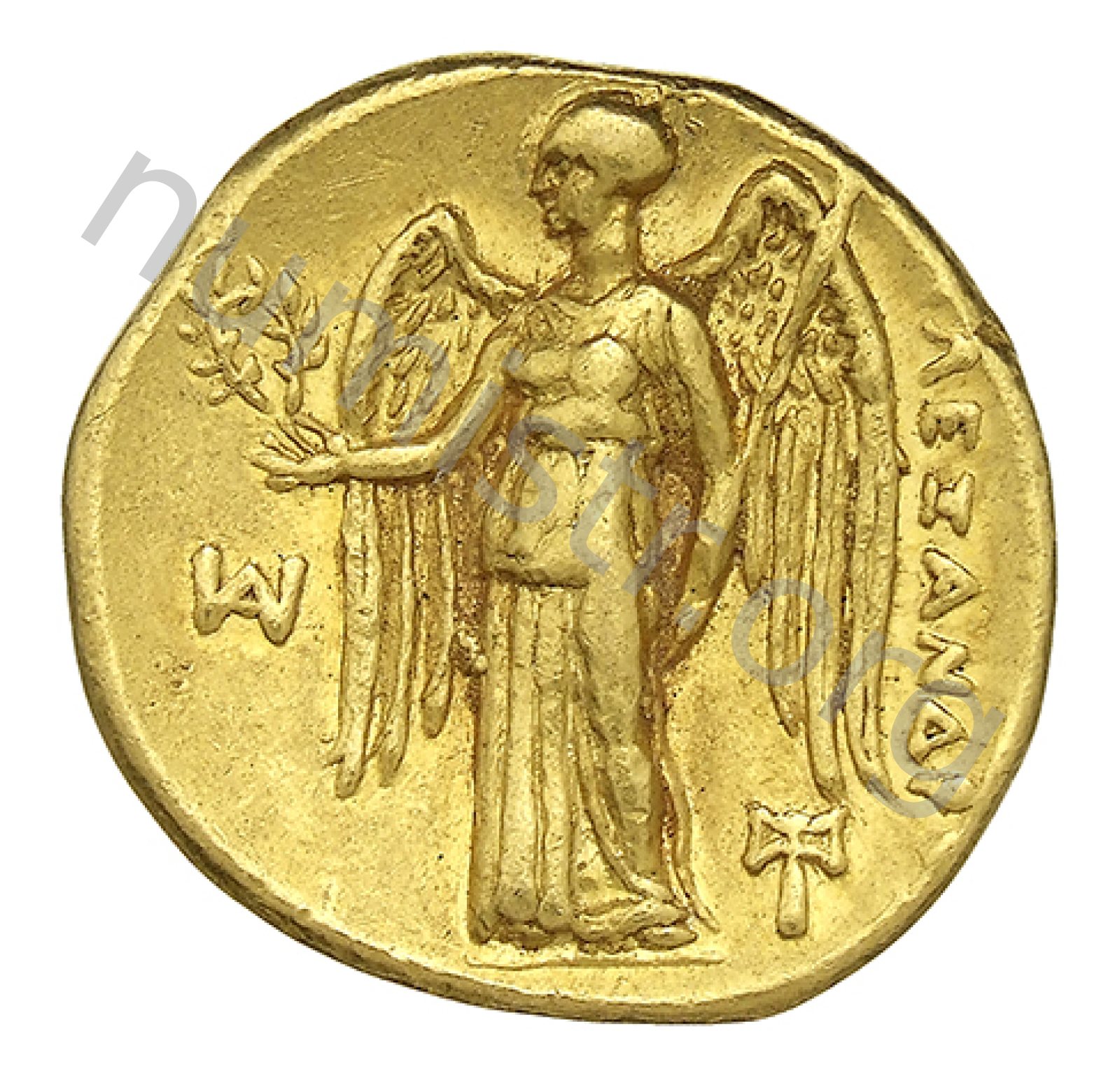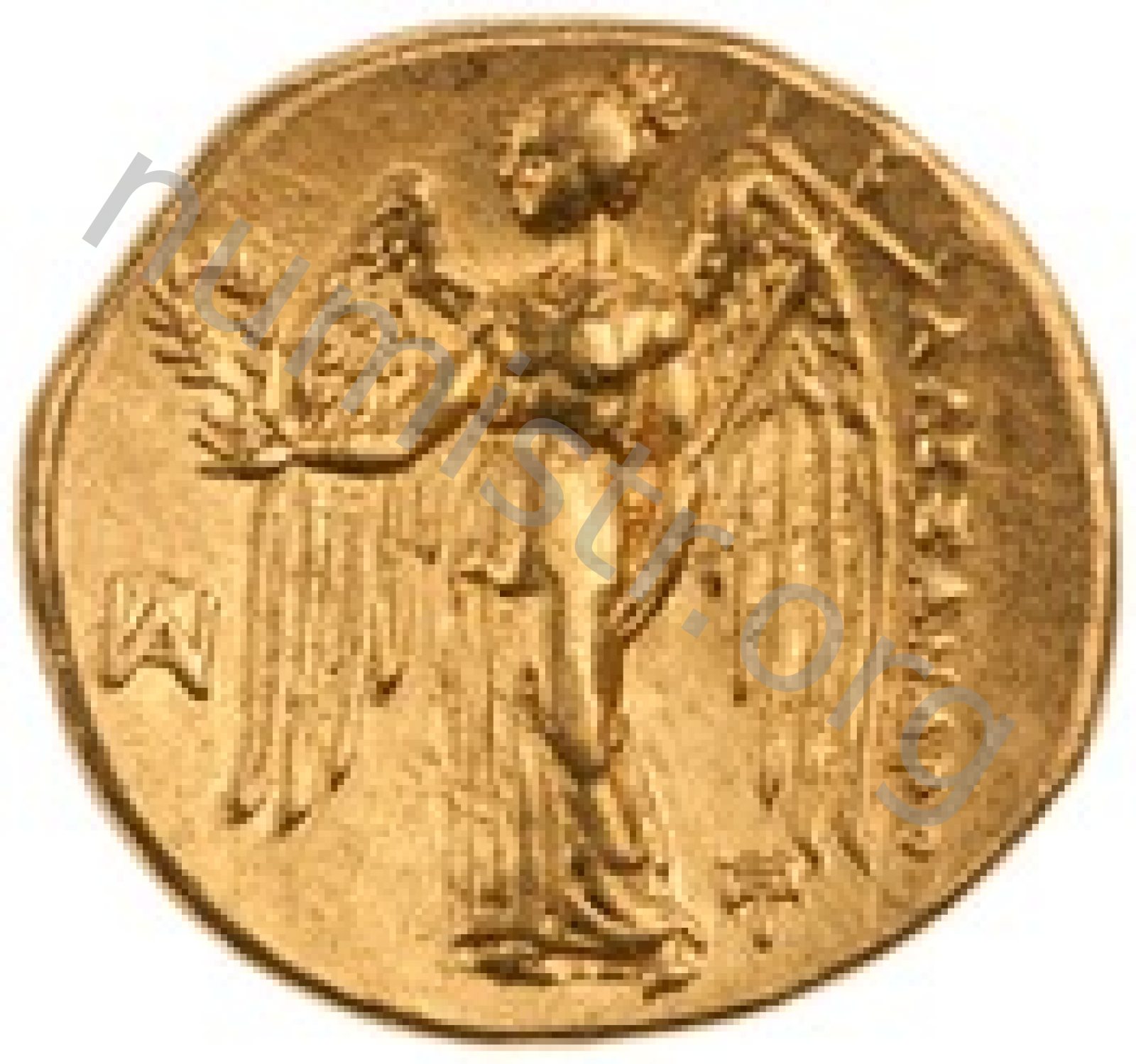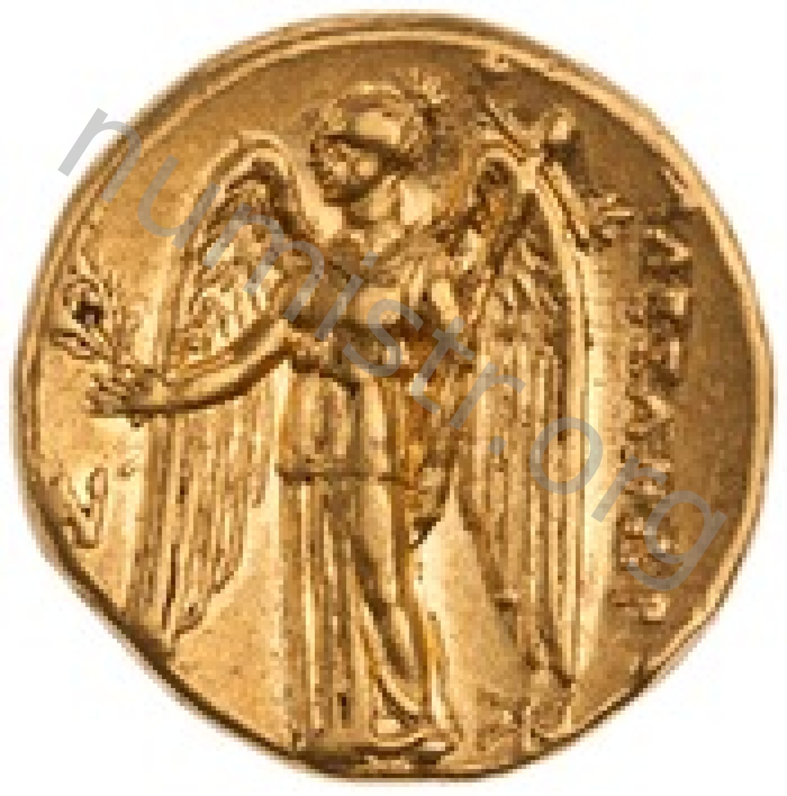 Nike standing left holding wreath in right hand and stylis in her left hand -[en]