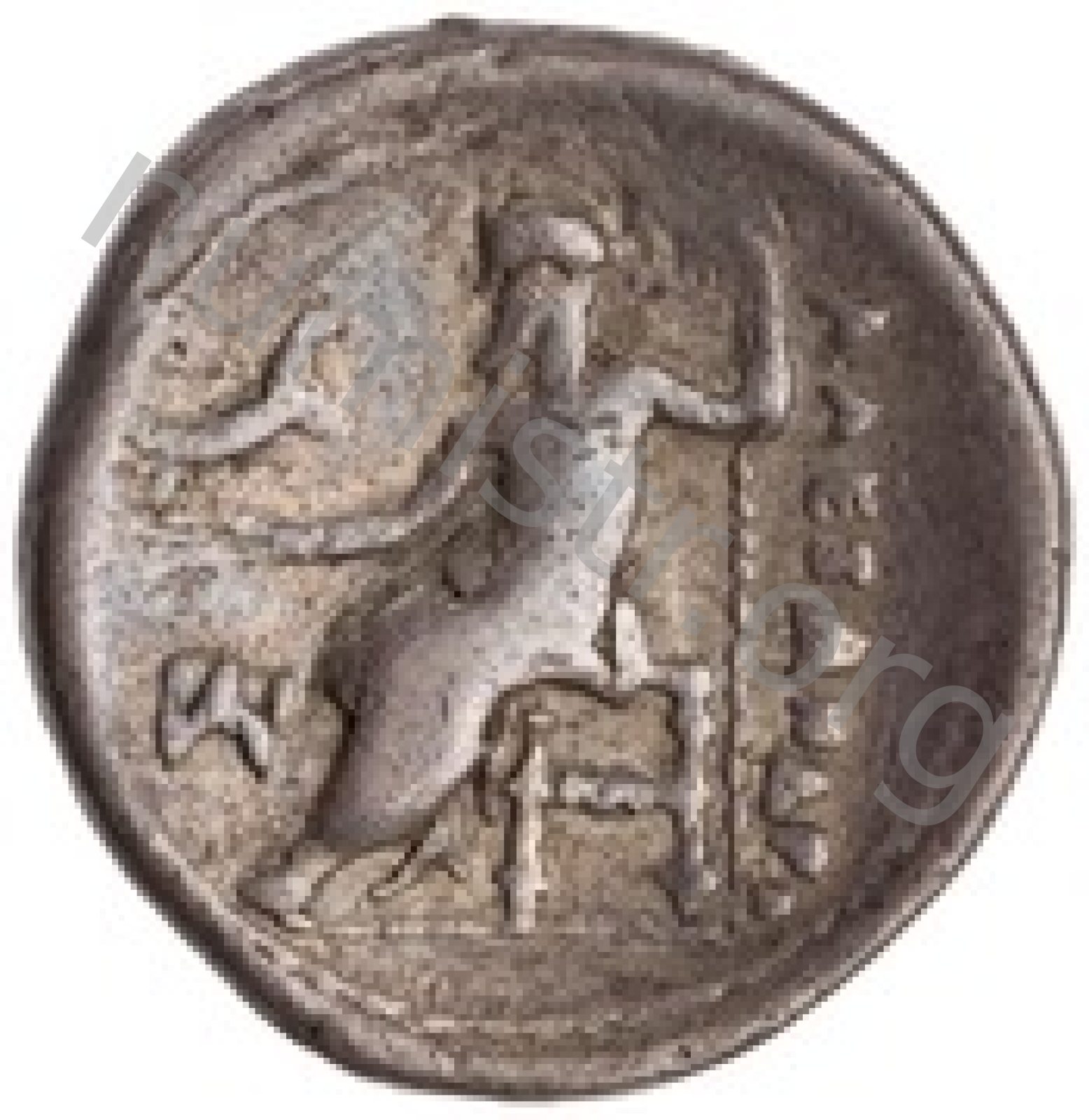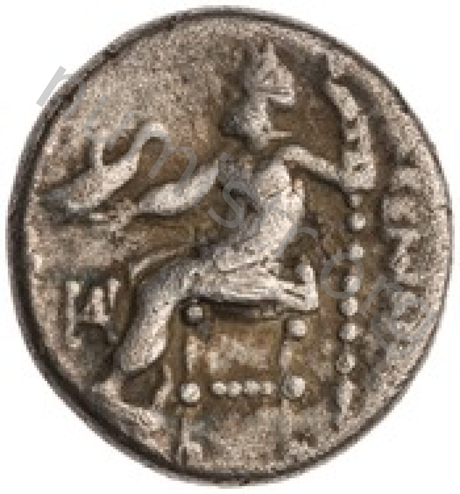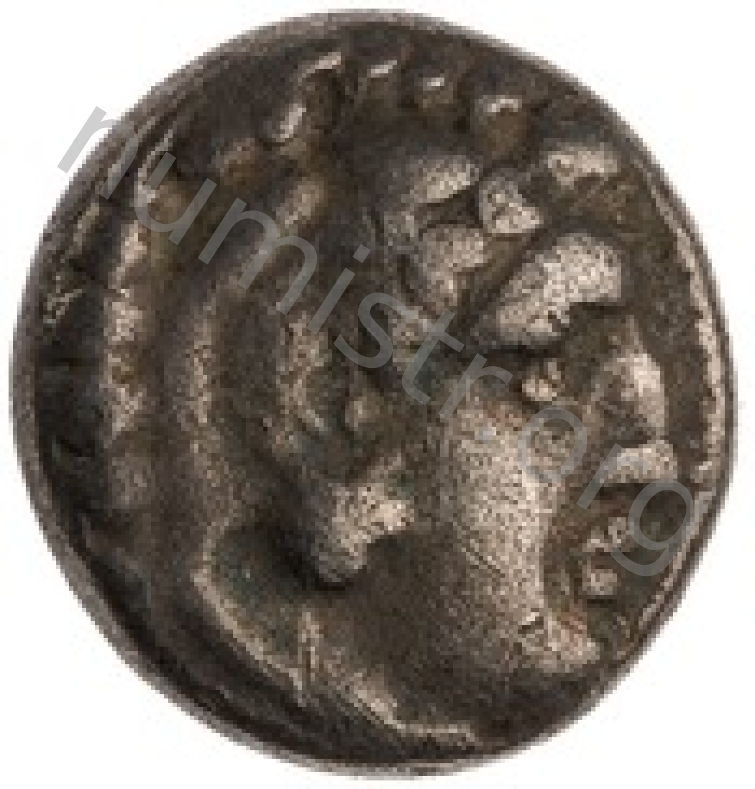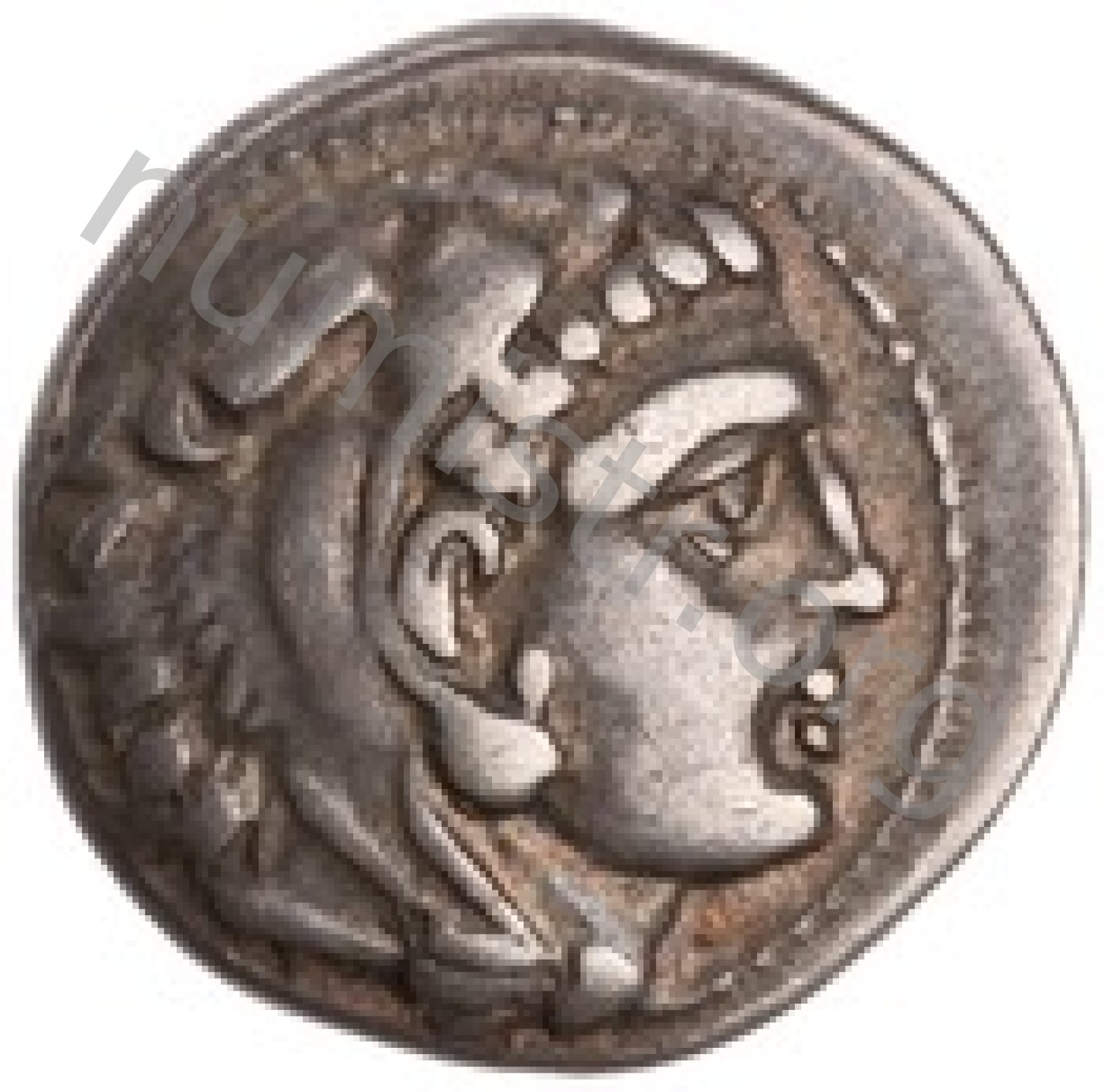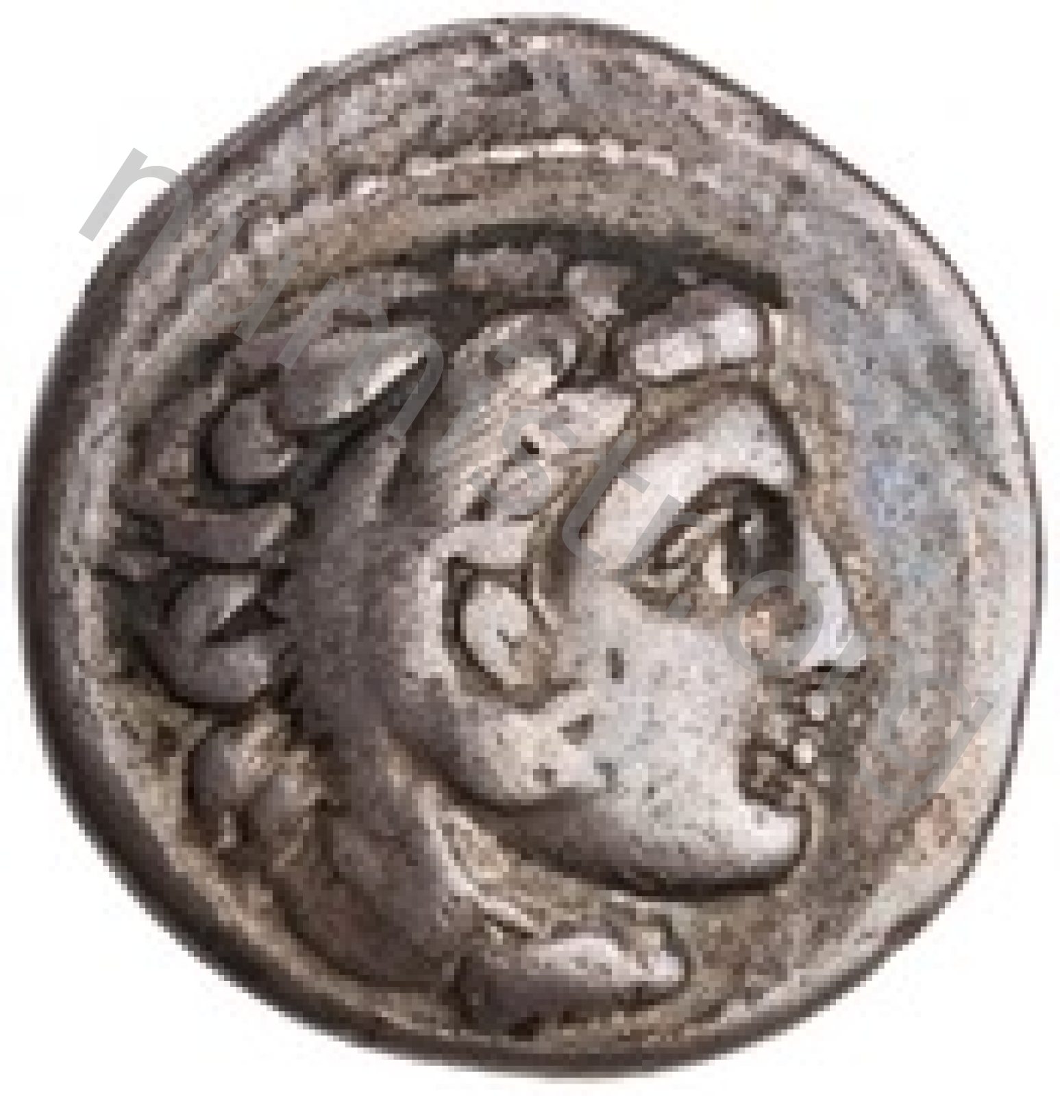 Head of beardless Heracles right wearing lion skin headdress -[en]