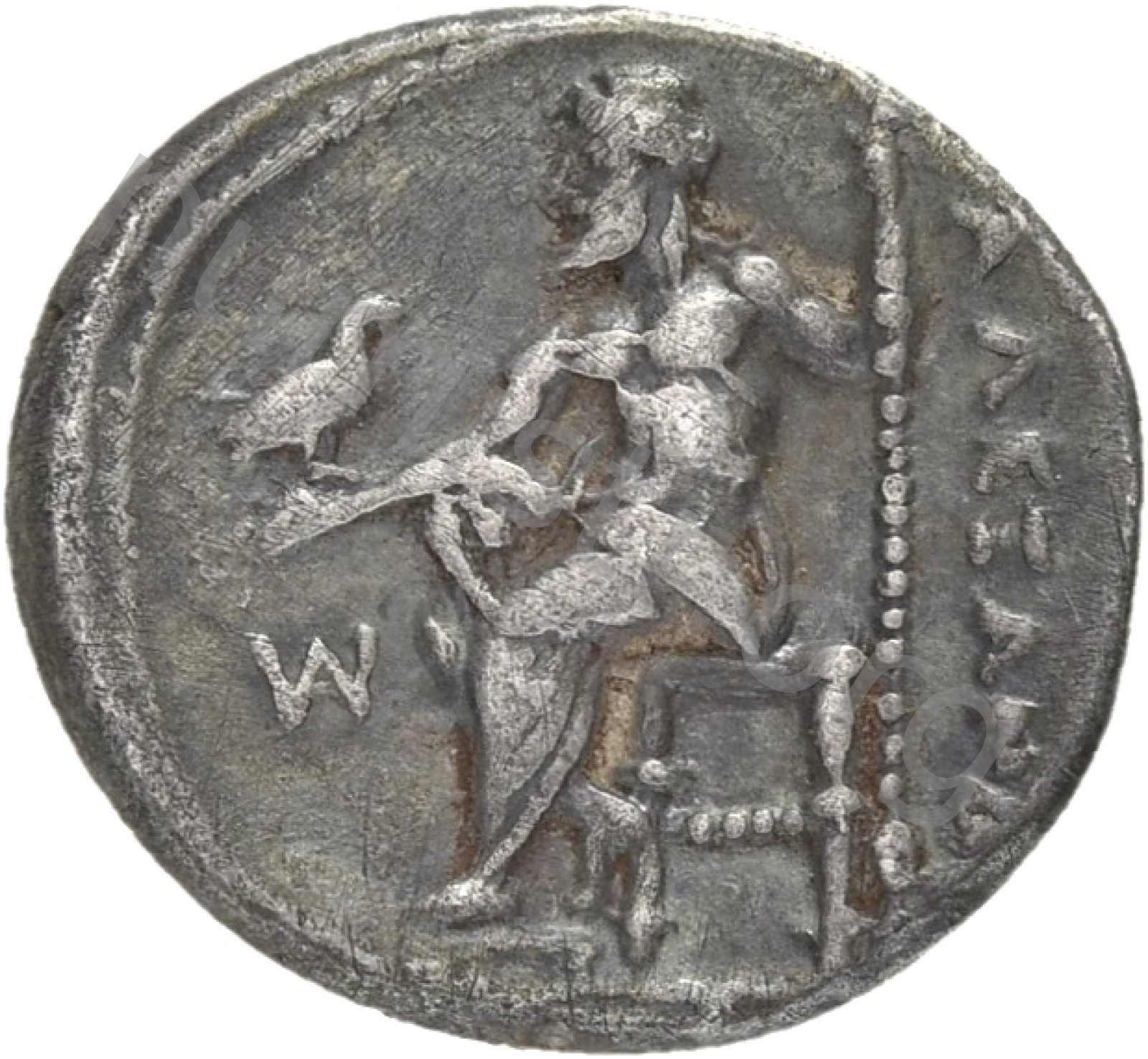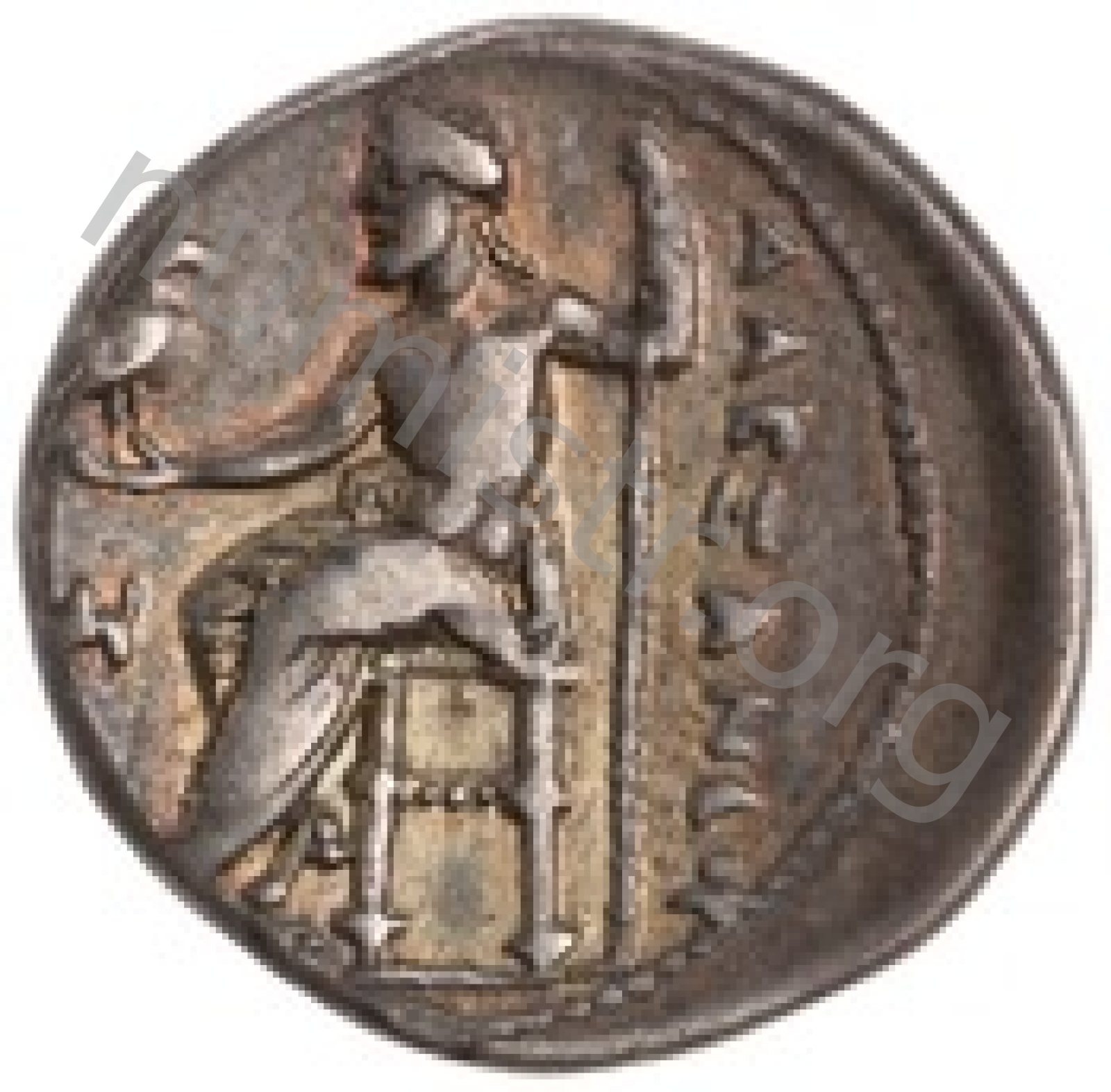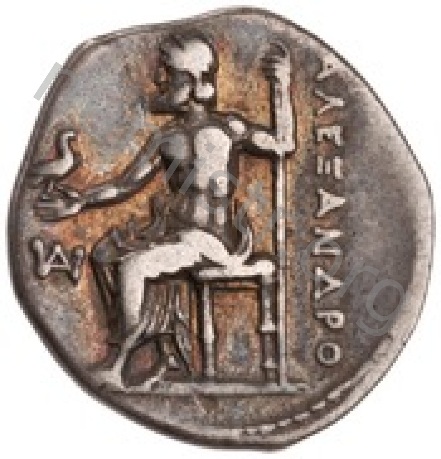 Zeus tabure-tahtta oturuyor sol elinde kartal sağ elinde asa var.