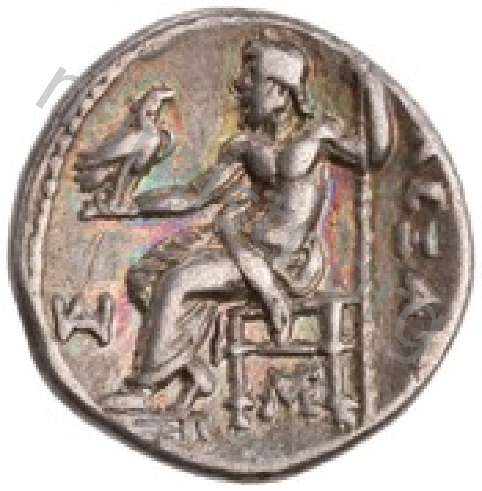 Zeus tabure-tahtta oturuyor sol elinde kartal sağ elinde asa var