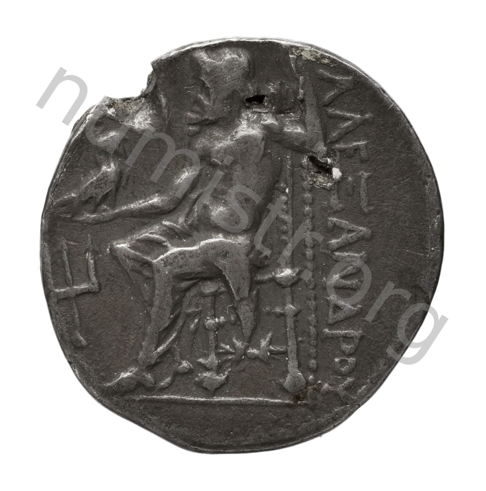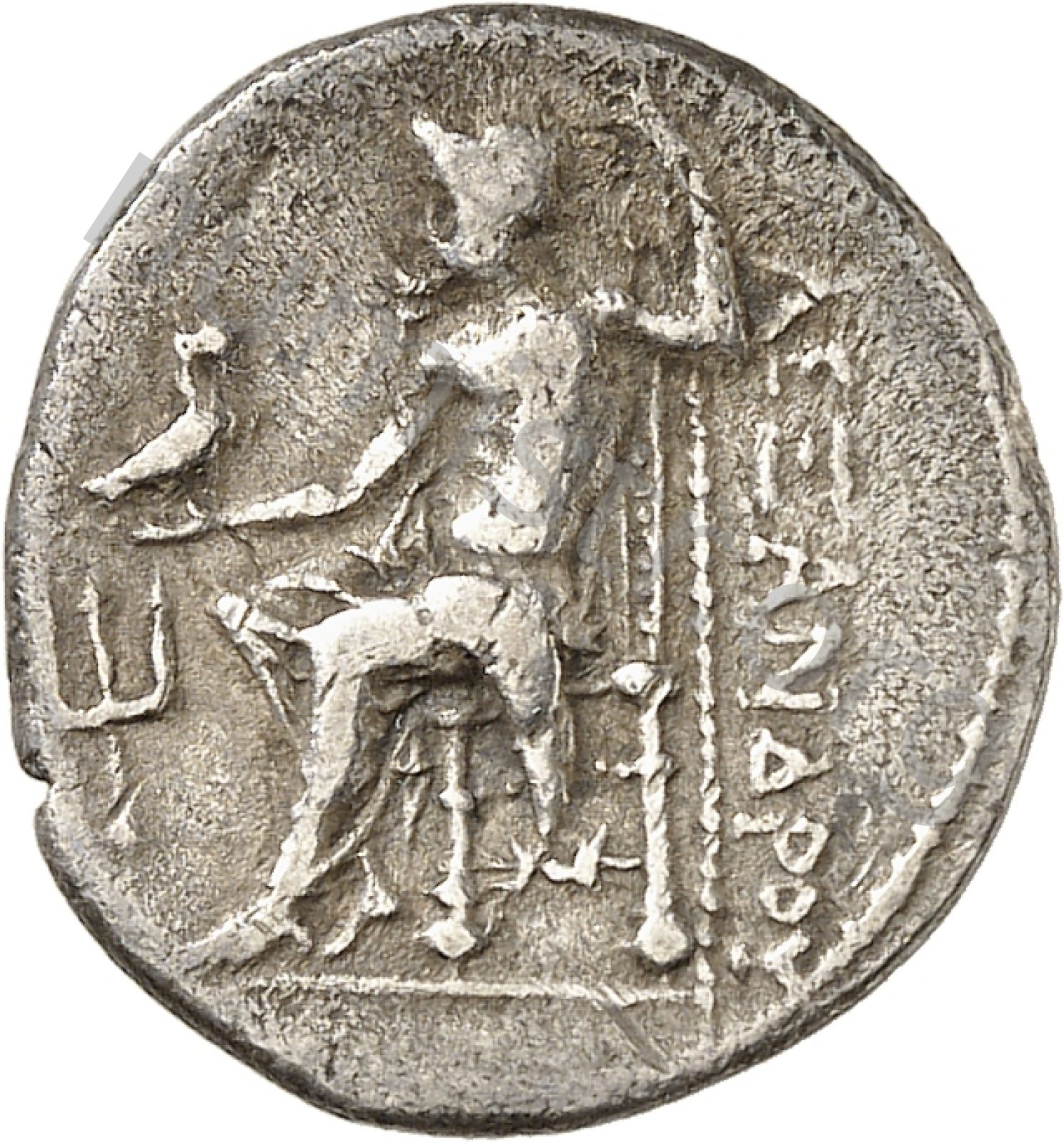 Zeus tabure-tahtta oturuyor sol elinde kartal sağ elinde asa var.