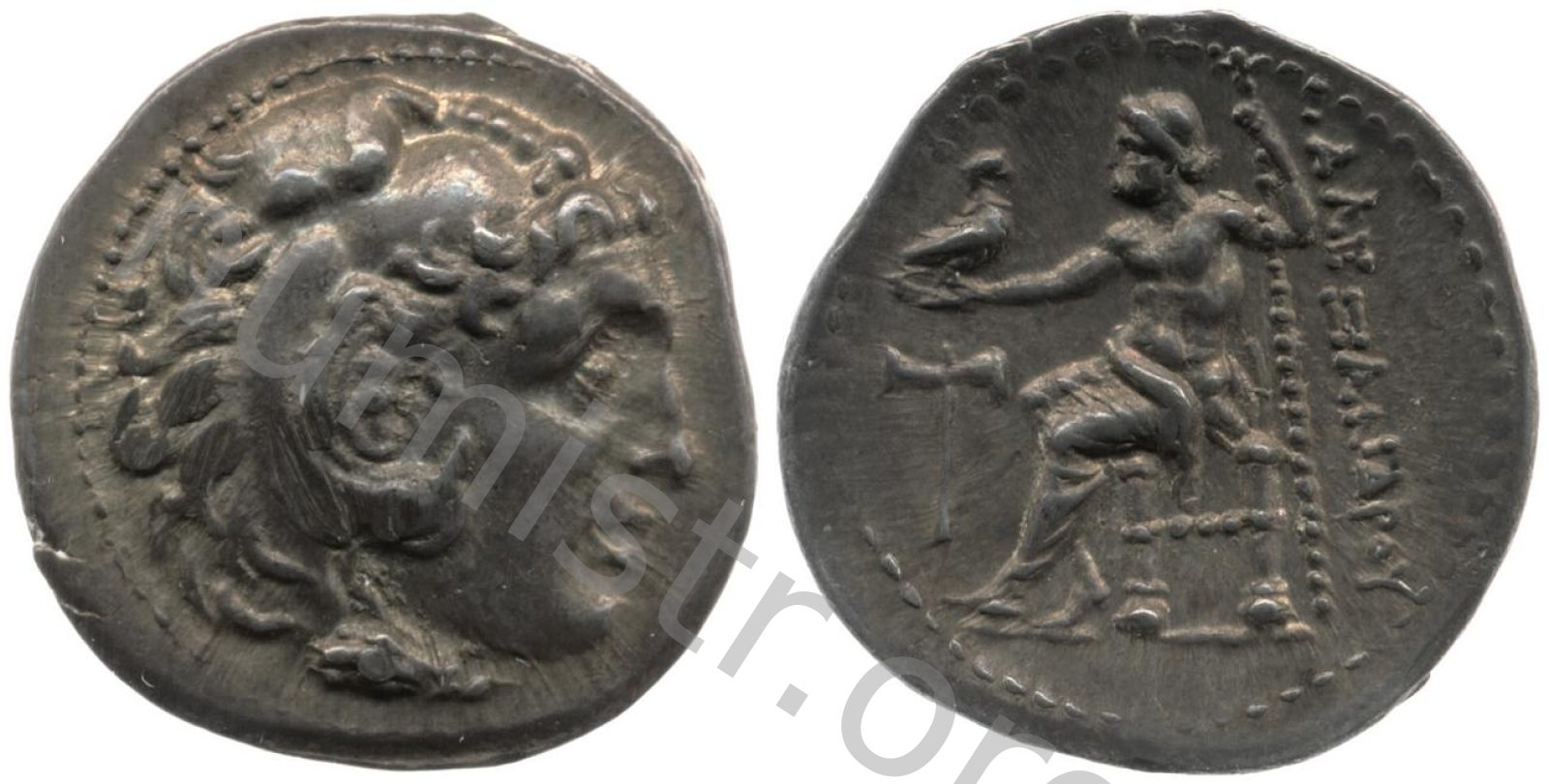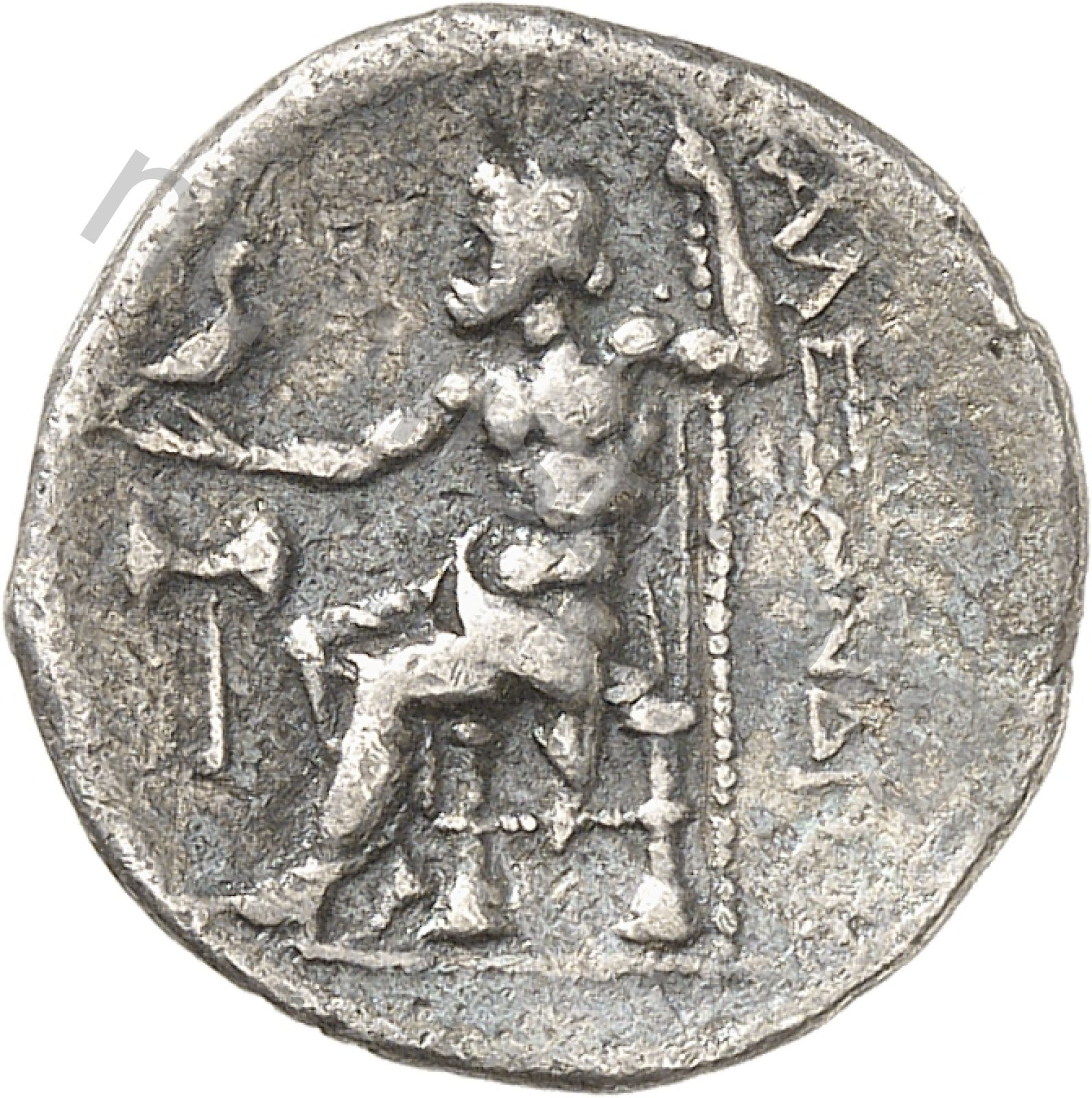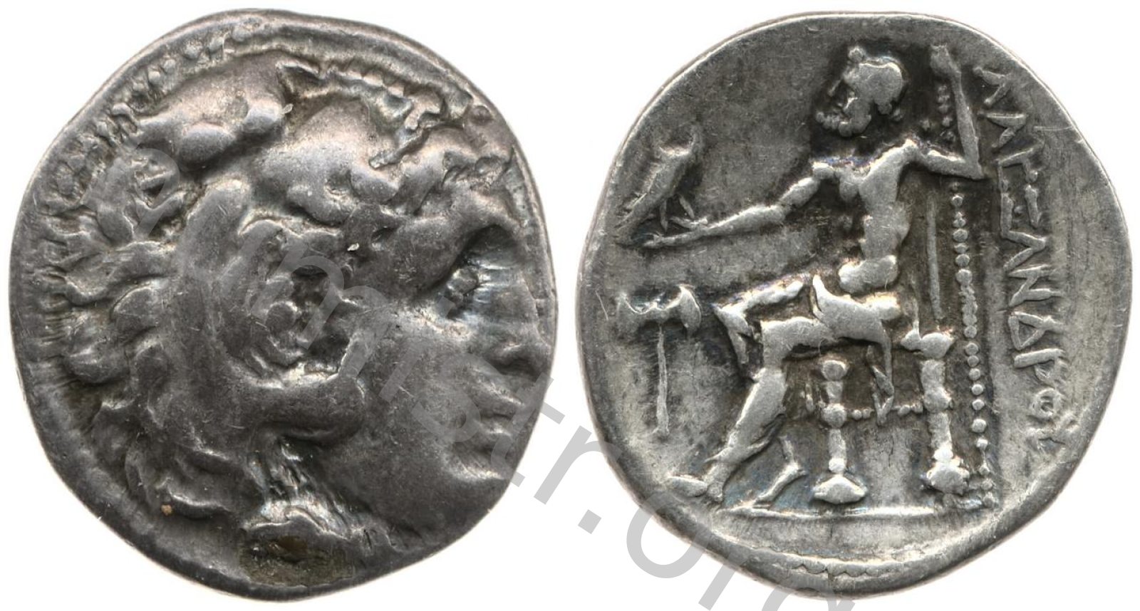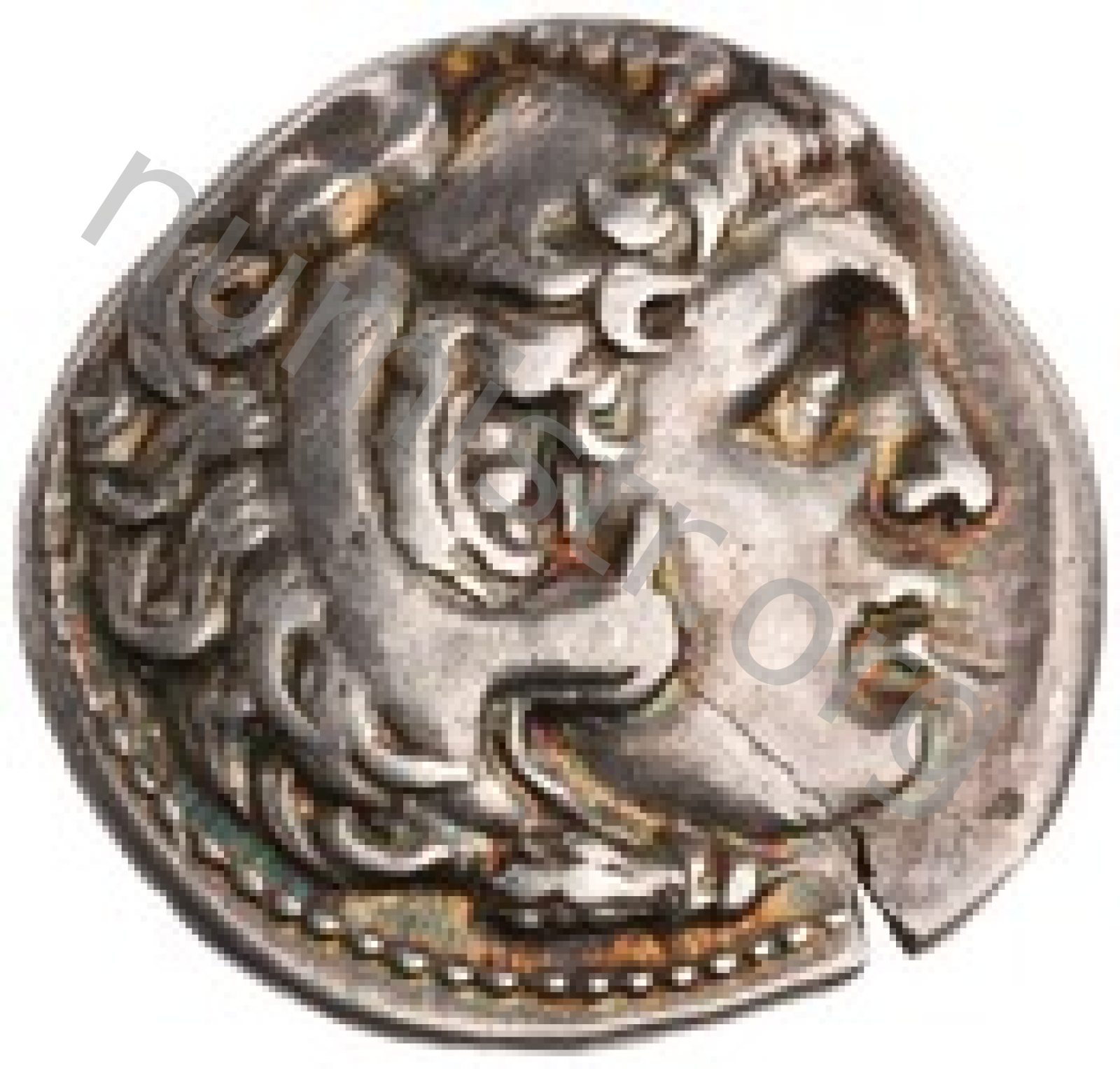 Head of beardless Heracles right wearing lion skin headdress -[en]