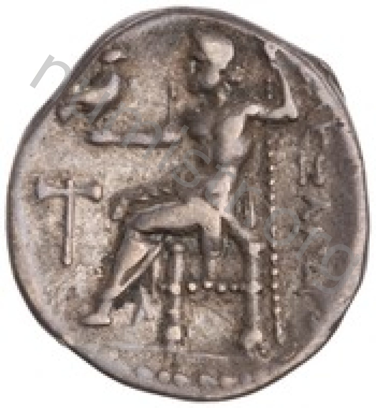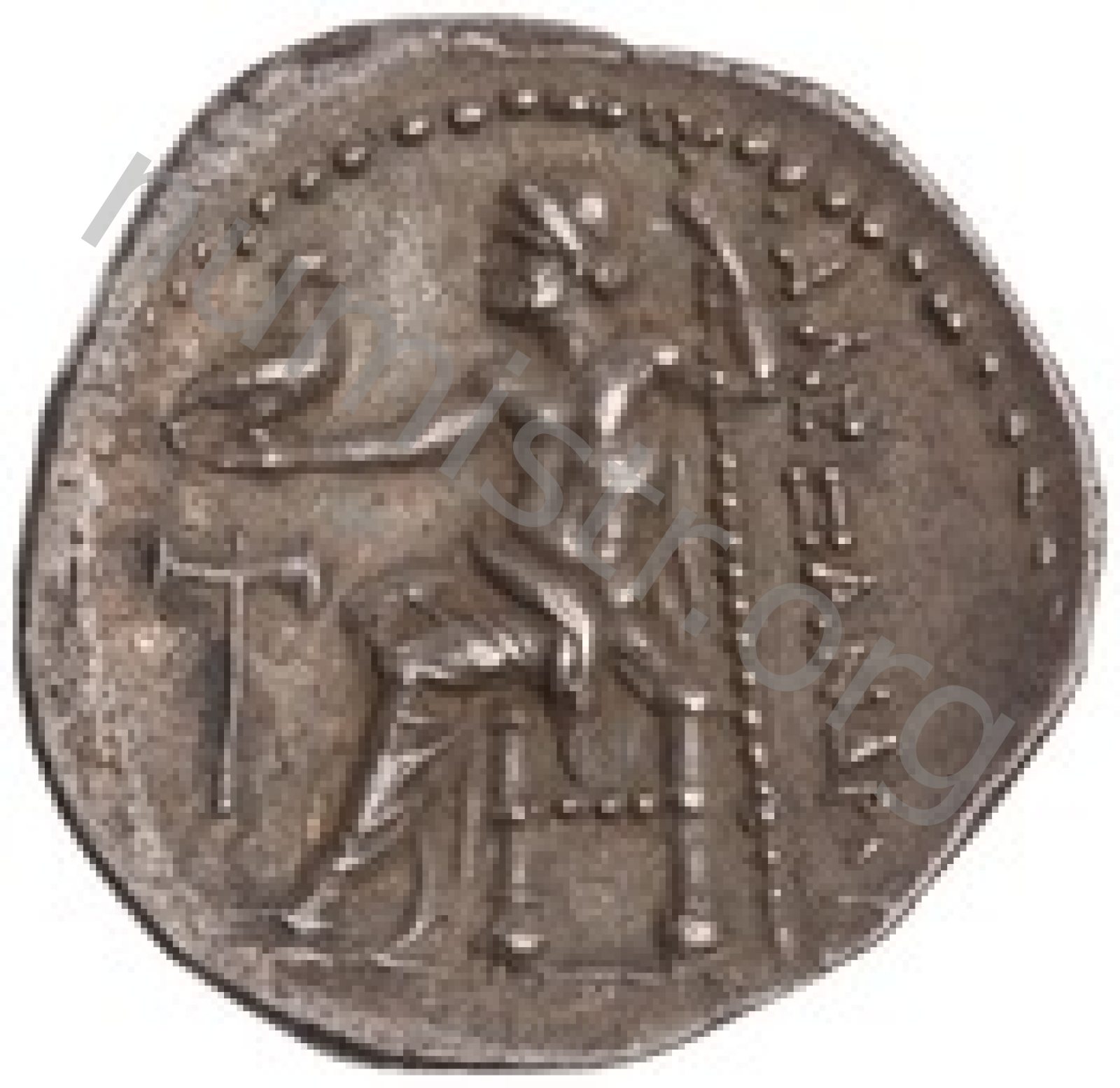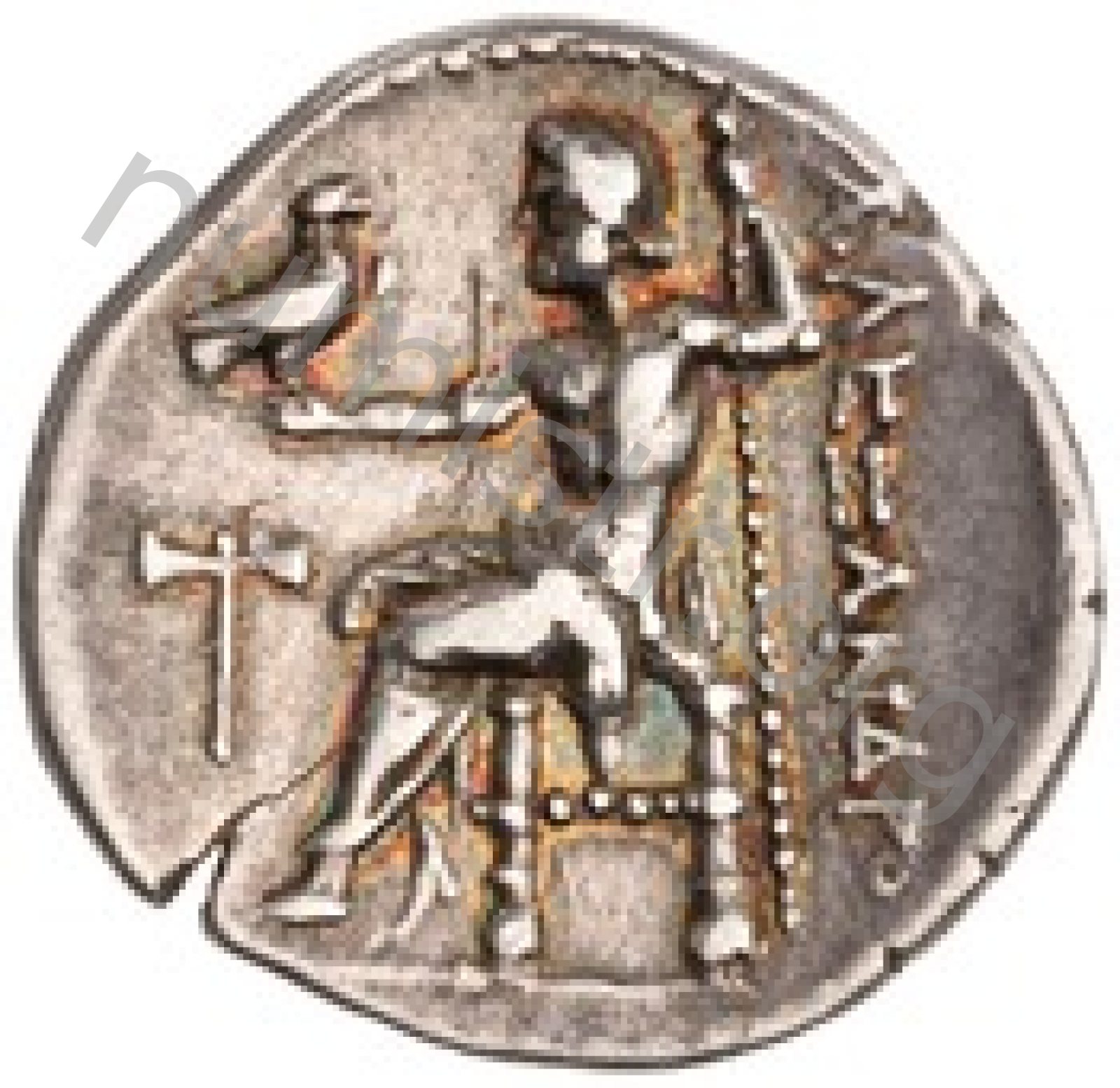 Zeus tabure-tahtta oturuyor sol elinde kartal sağ elinde asa var.
