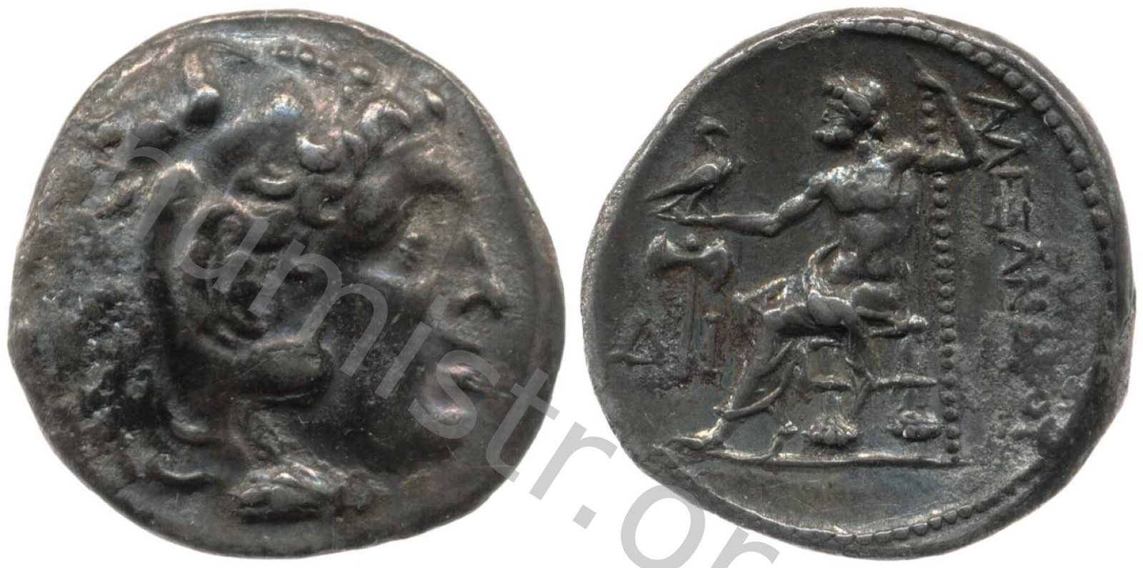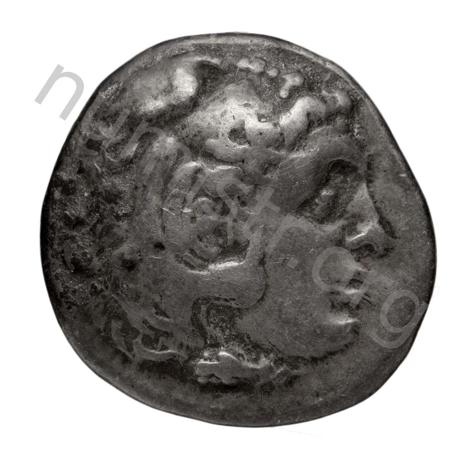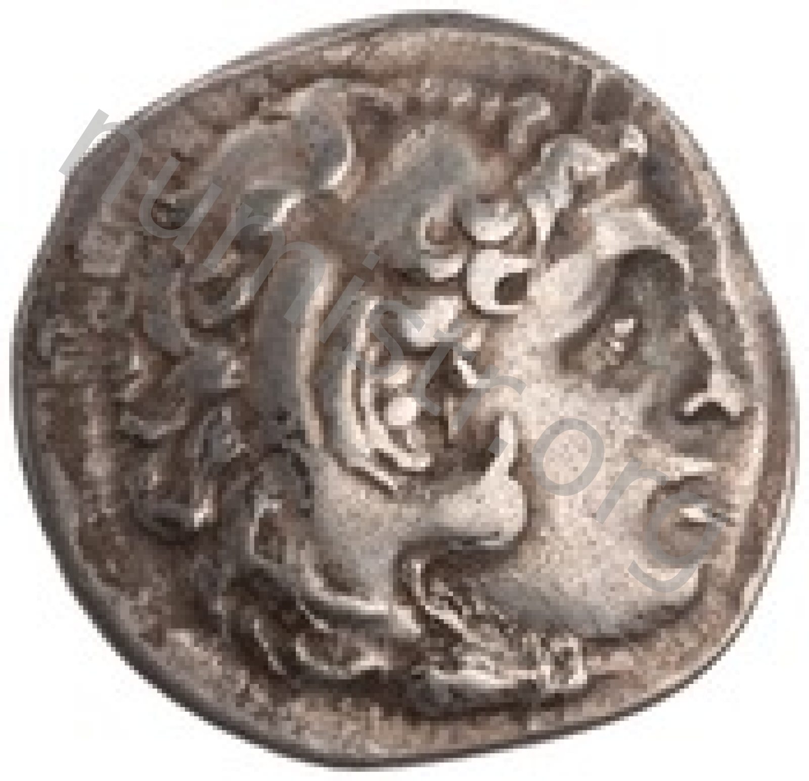 Head of beardless Heracles right wearing lion skin headdress -[en]
