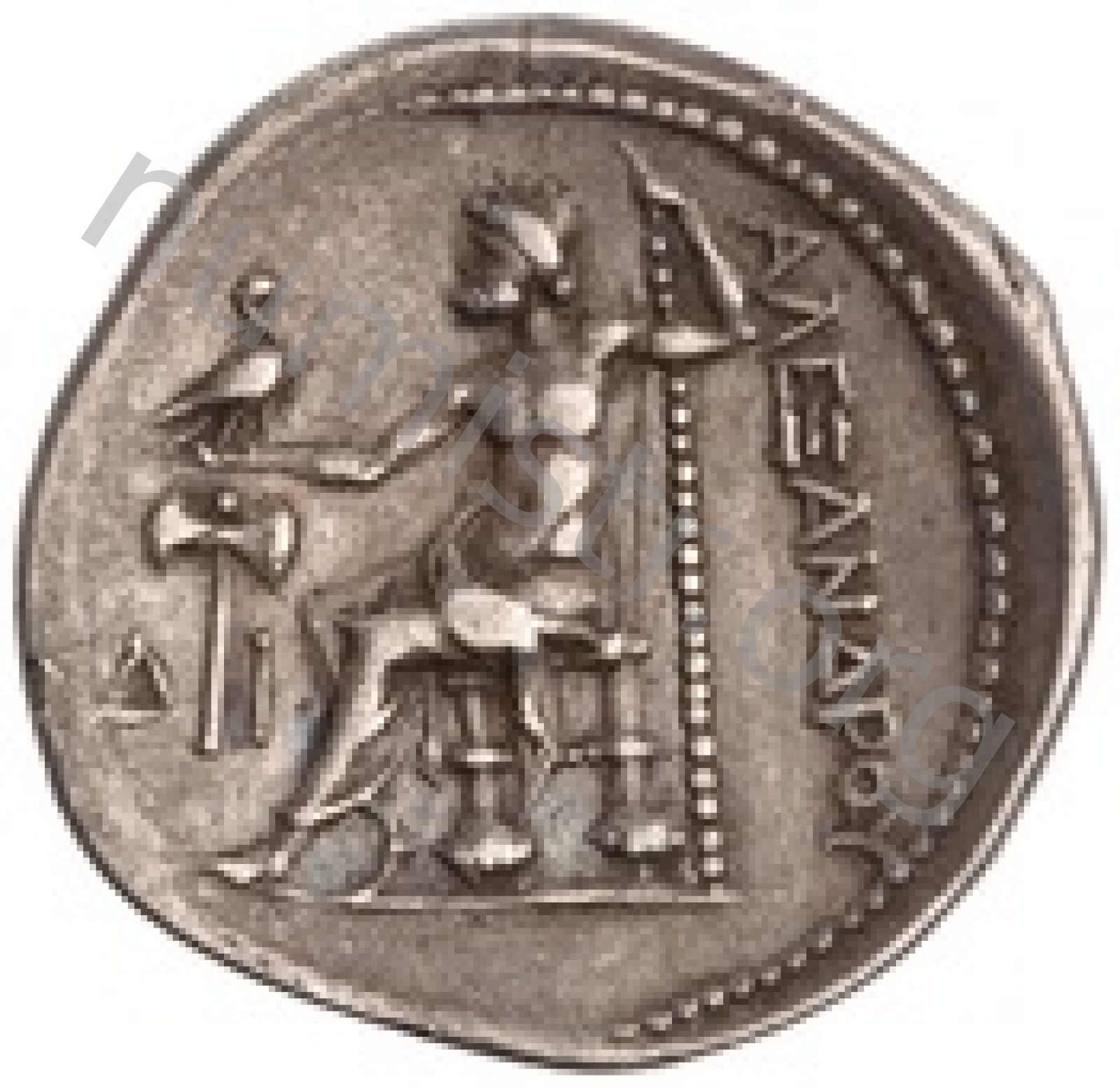 Zeus tabure-tahtta oturuyor sol elinde kartal sağ elinde asa var.