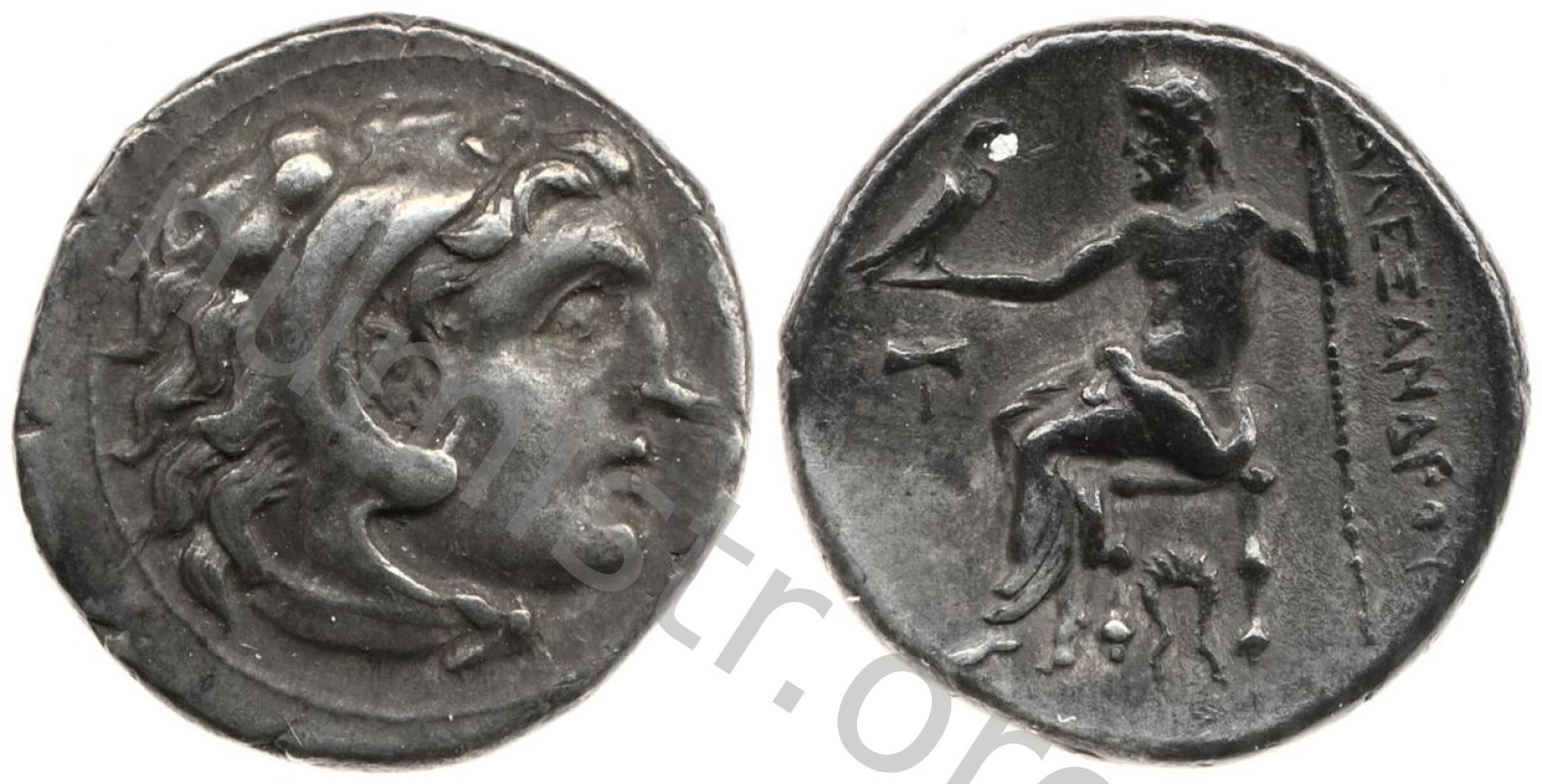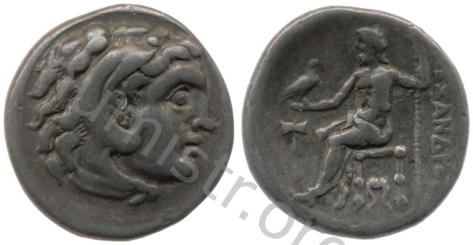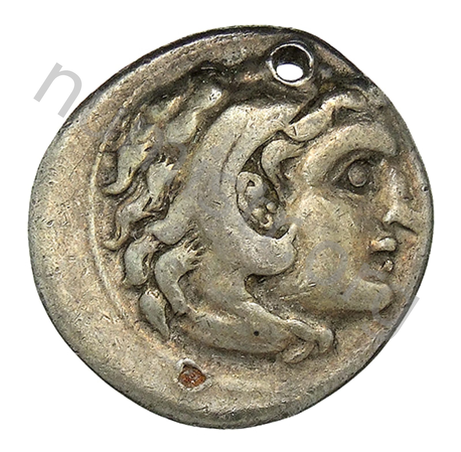 Head of beardless Heracles right wearing lion skin headdress -[en]