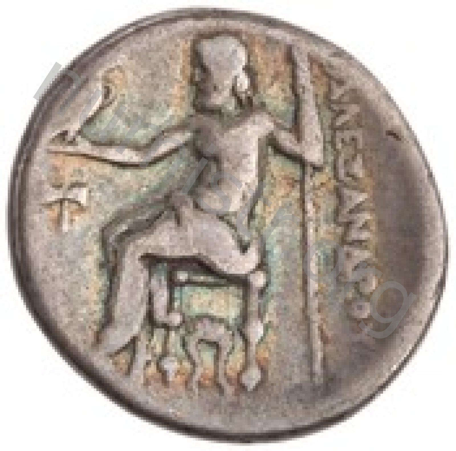 Zeus tabure-tahtta oturuyor sol elinde kartal sağ elinde asa var.