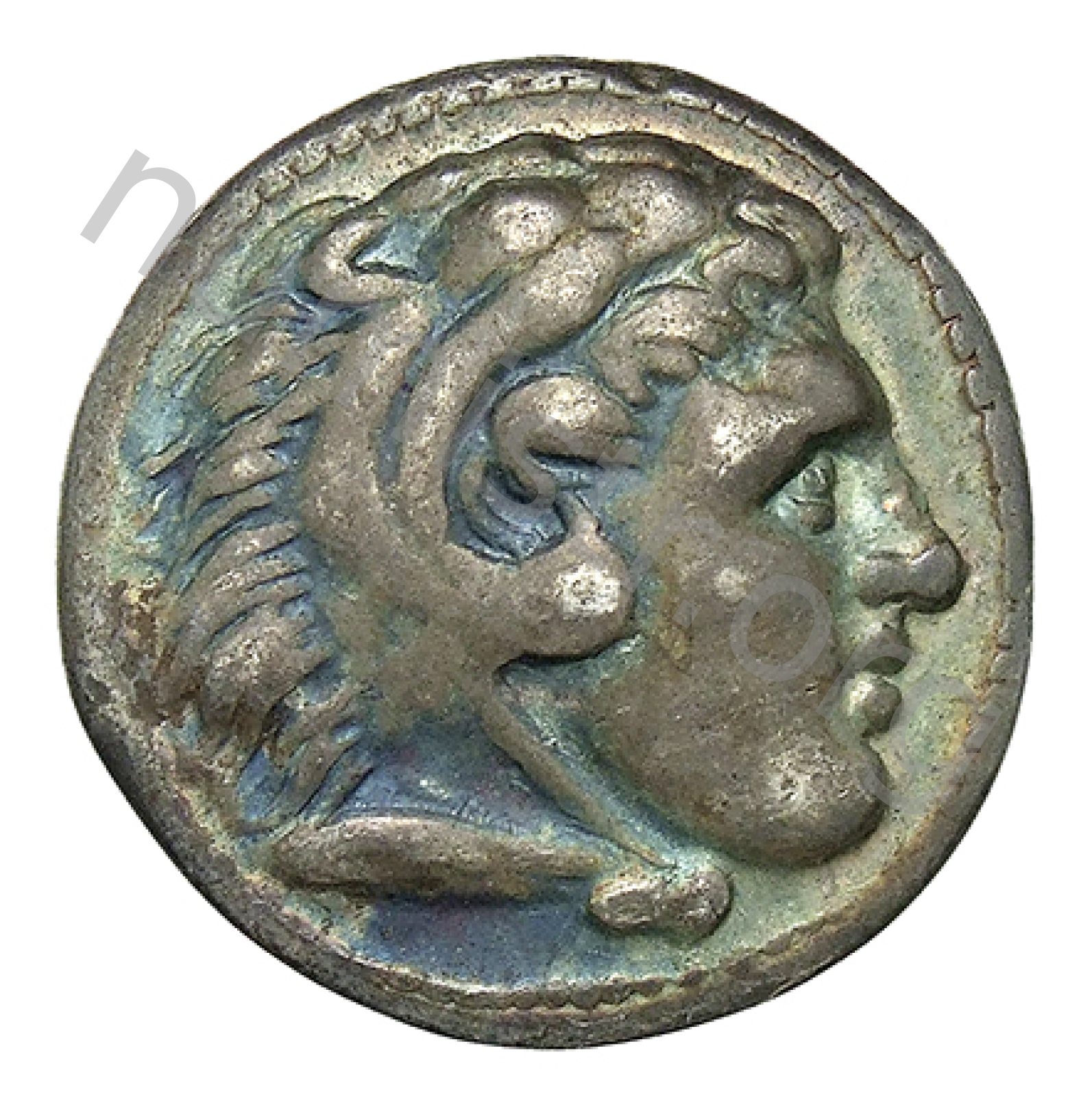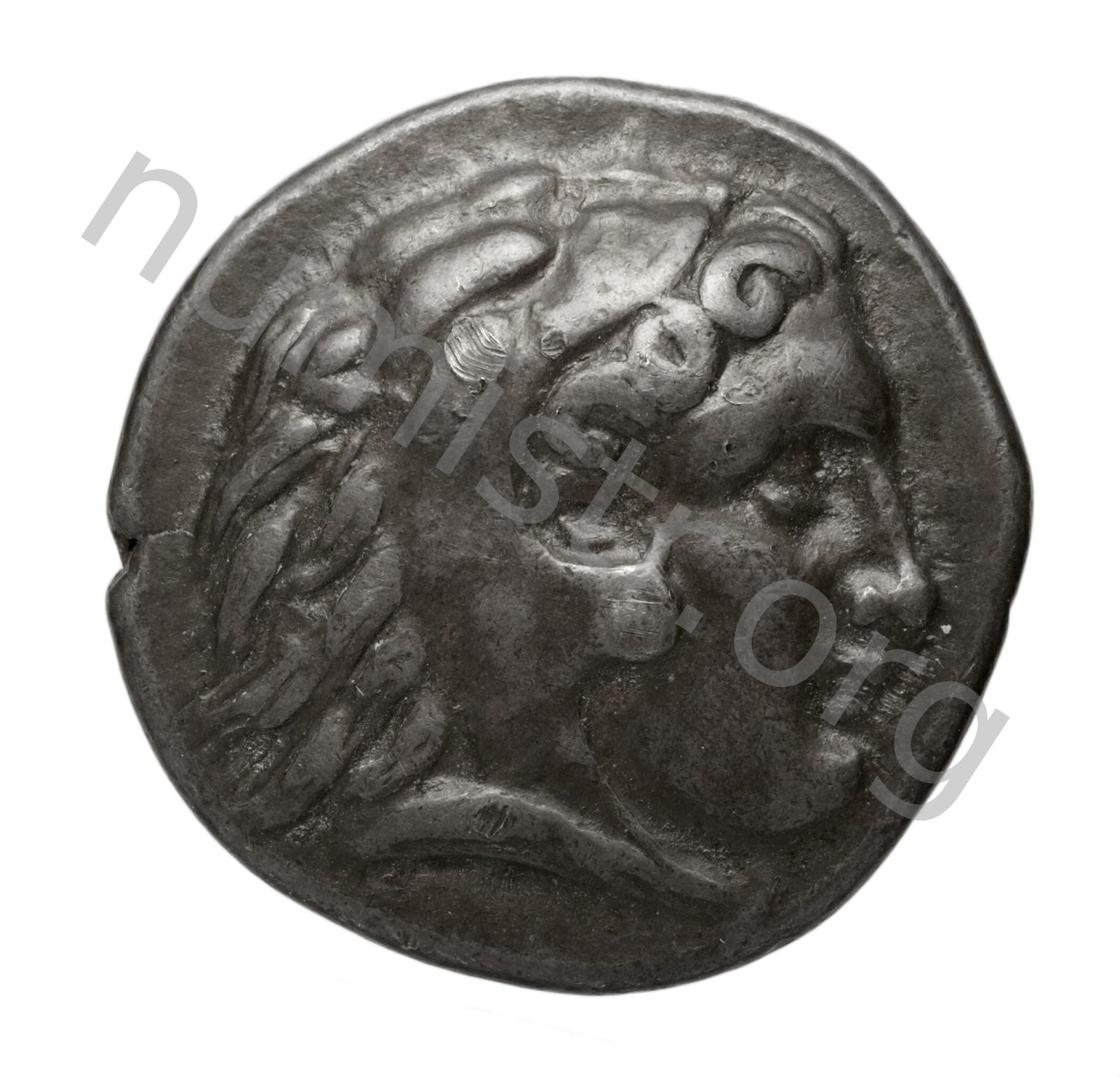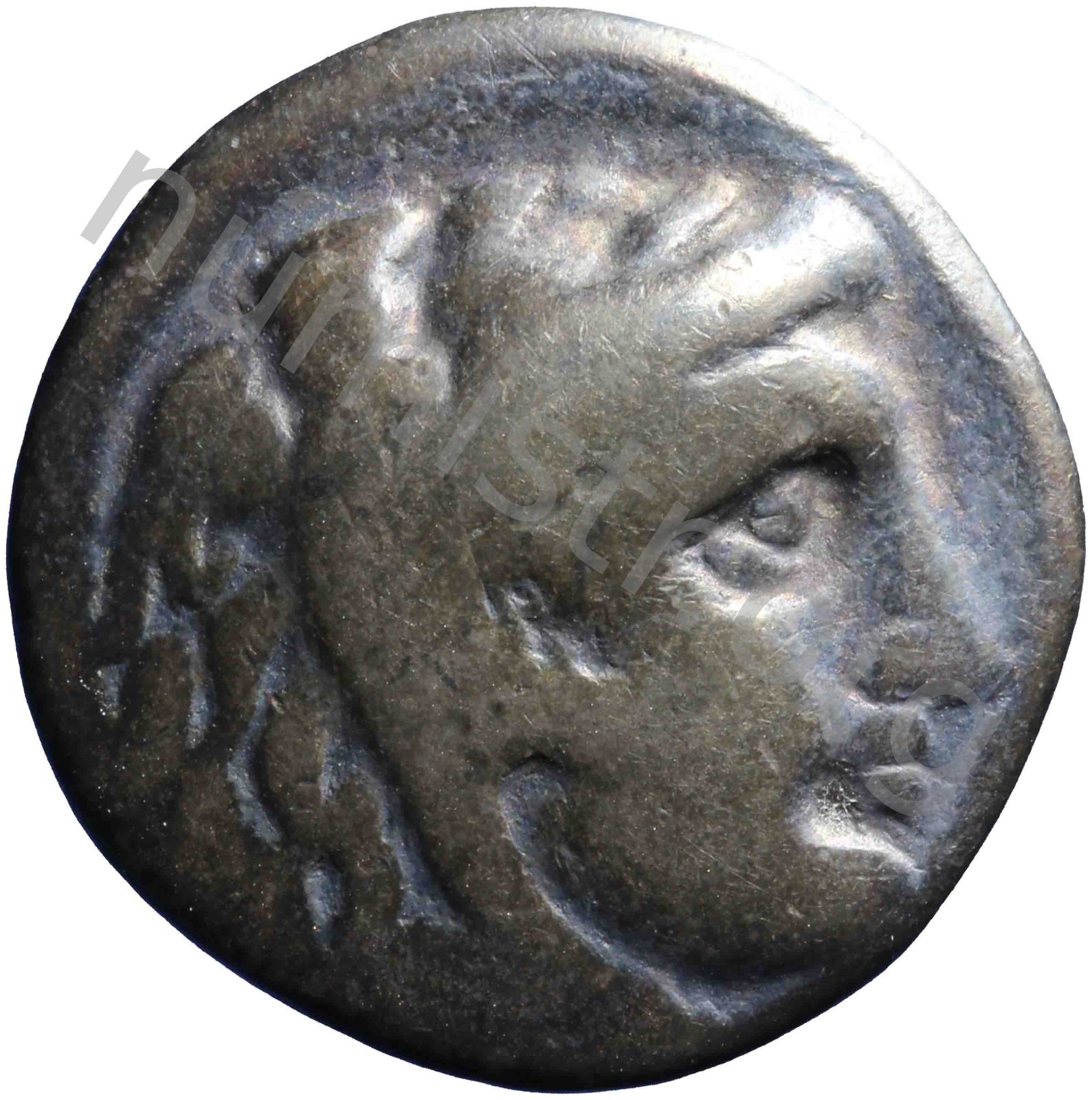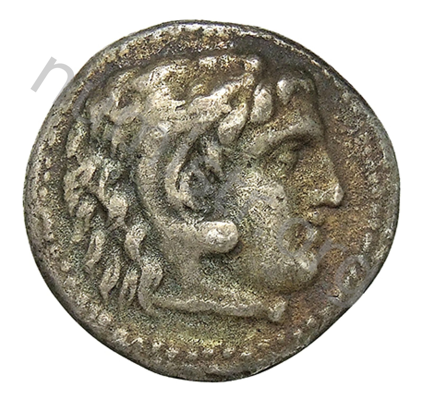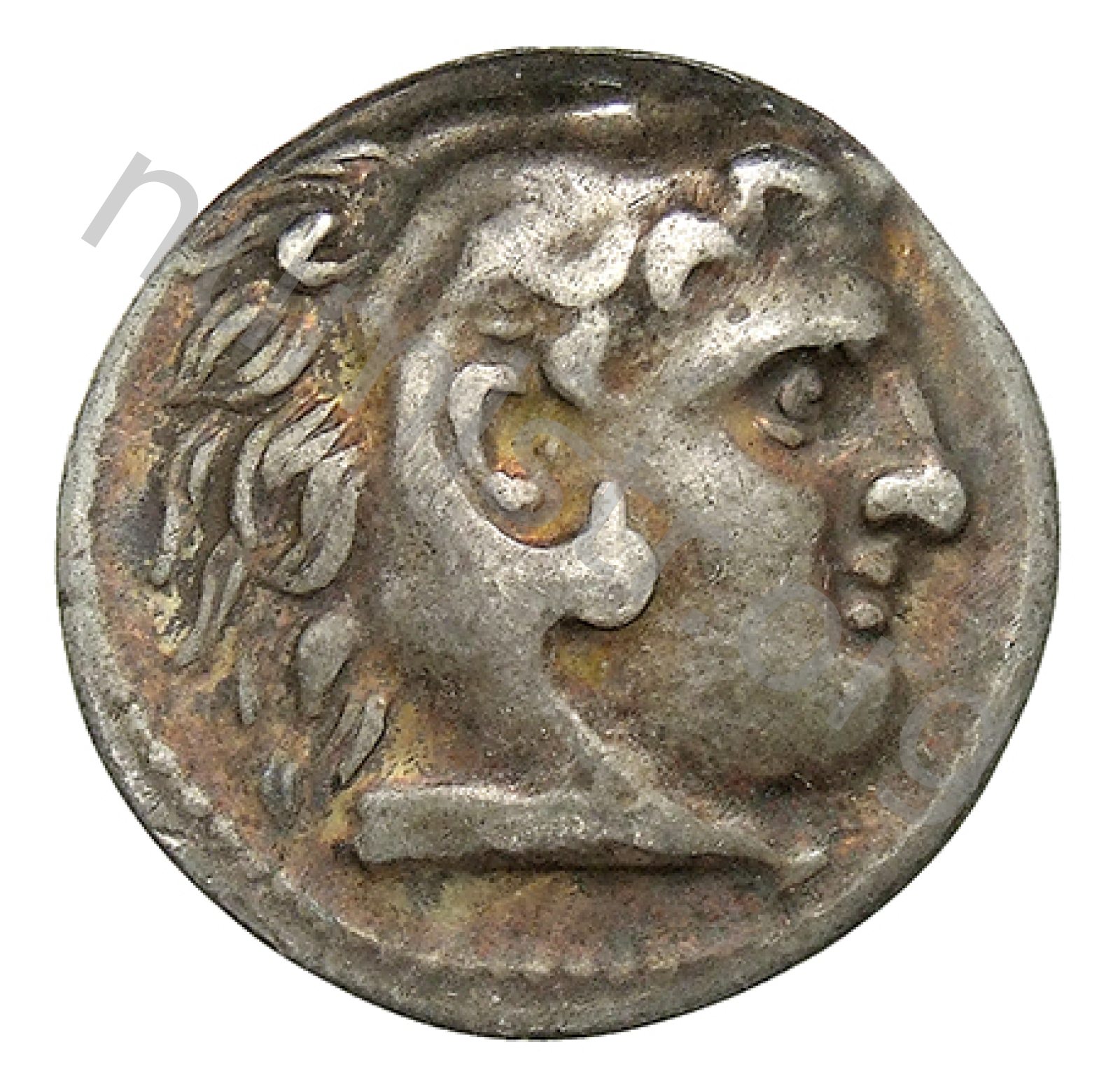 Head of beardless Heracles right wearing lion skin headdress -[en]