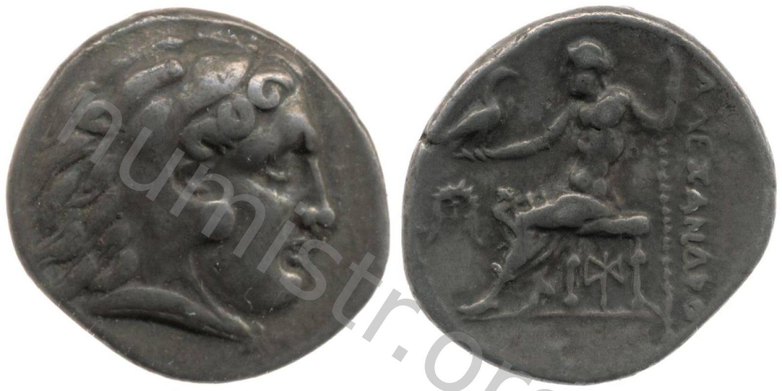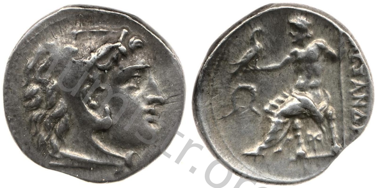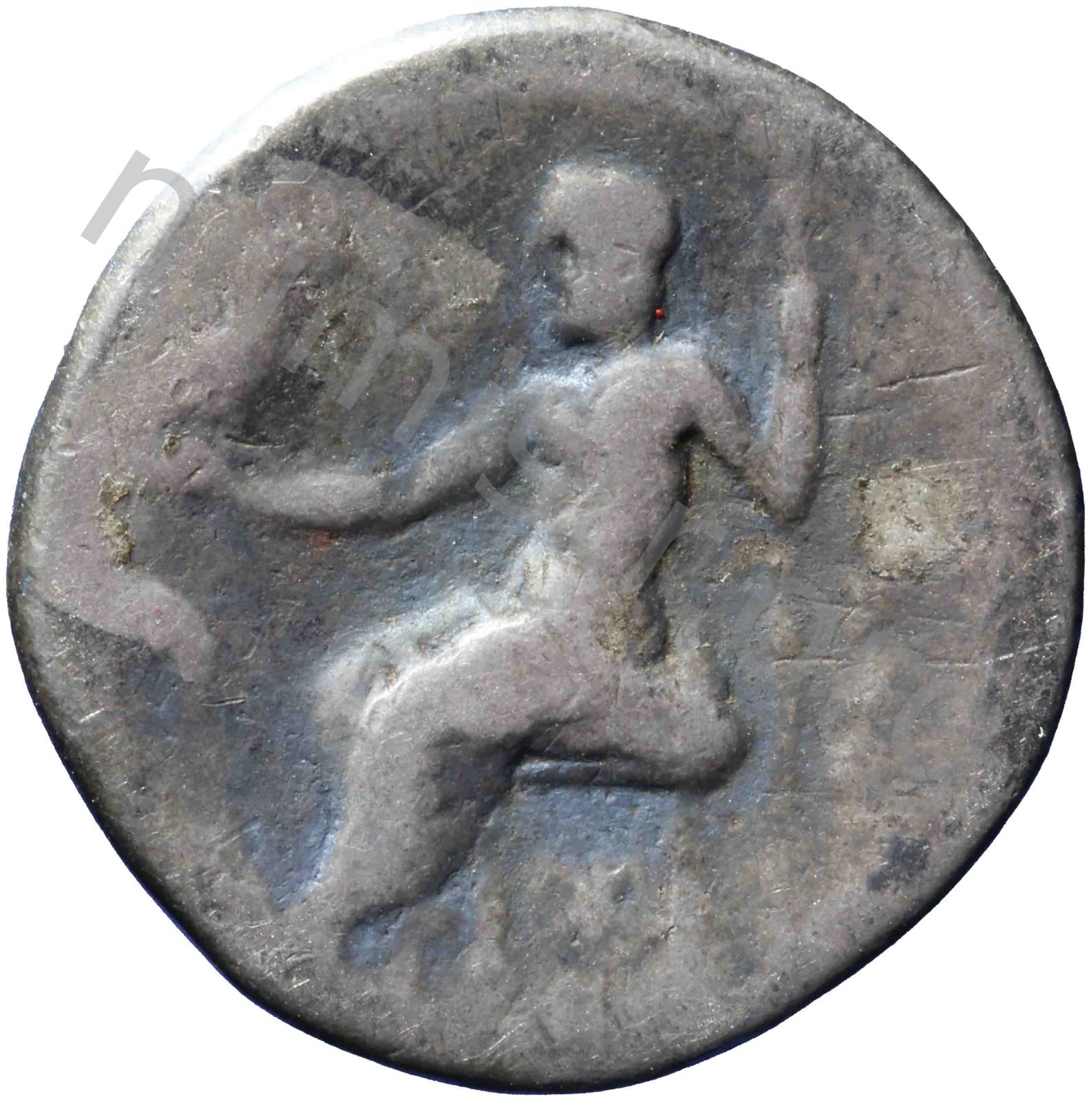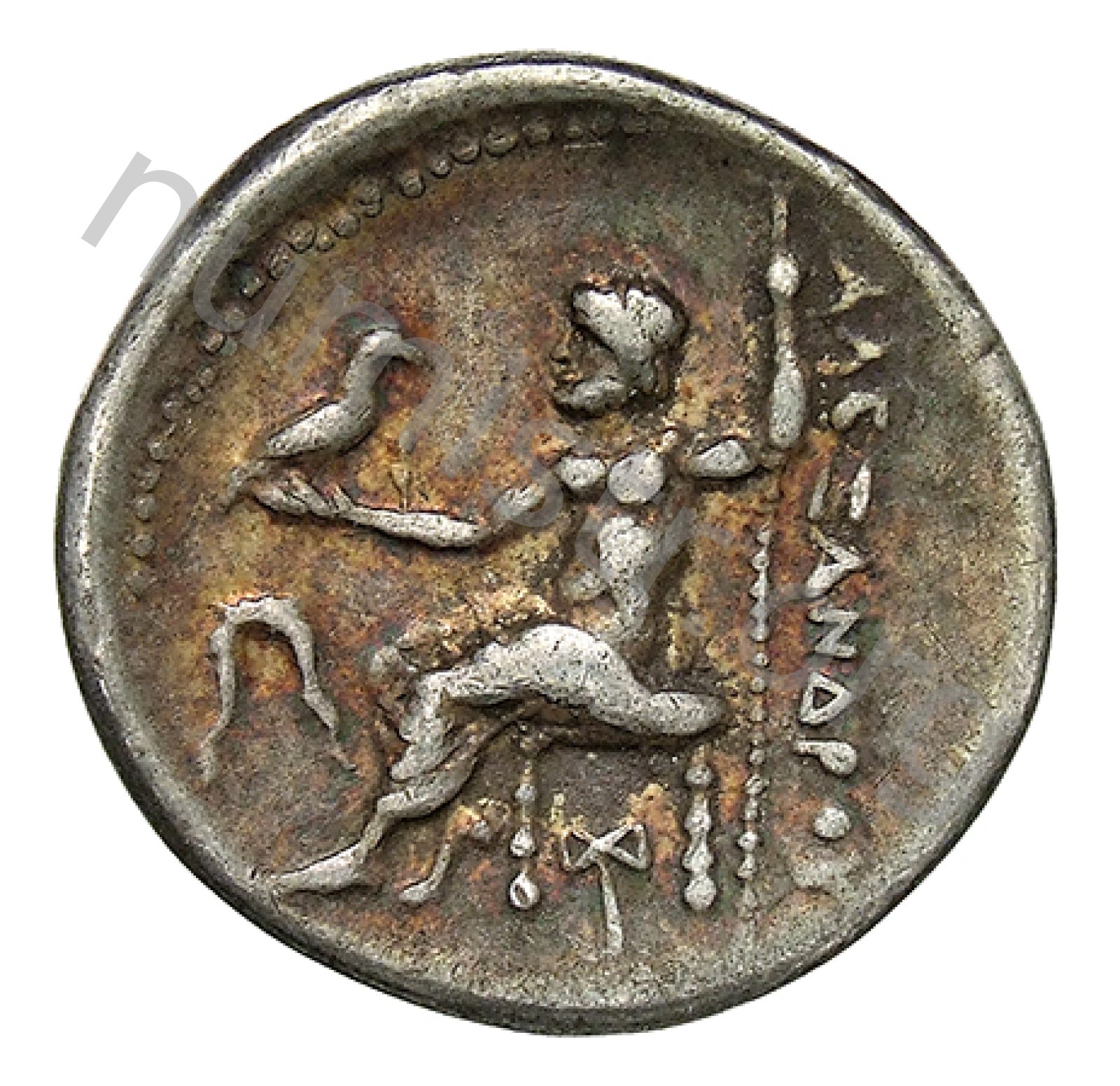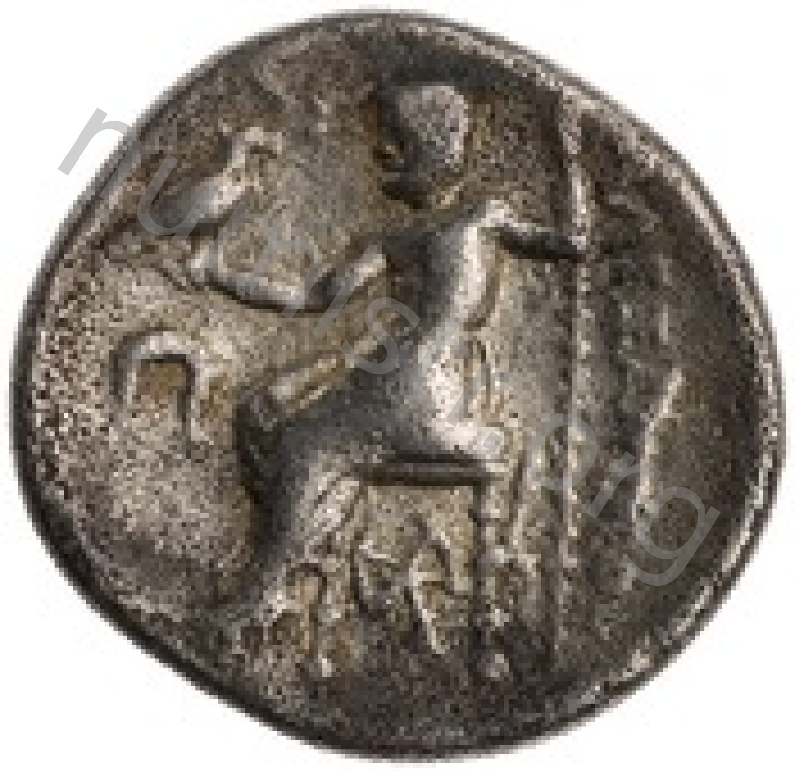 Head of beardless Heracles right wearing lion skin headdress -[en]